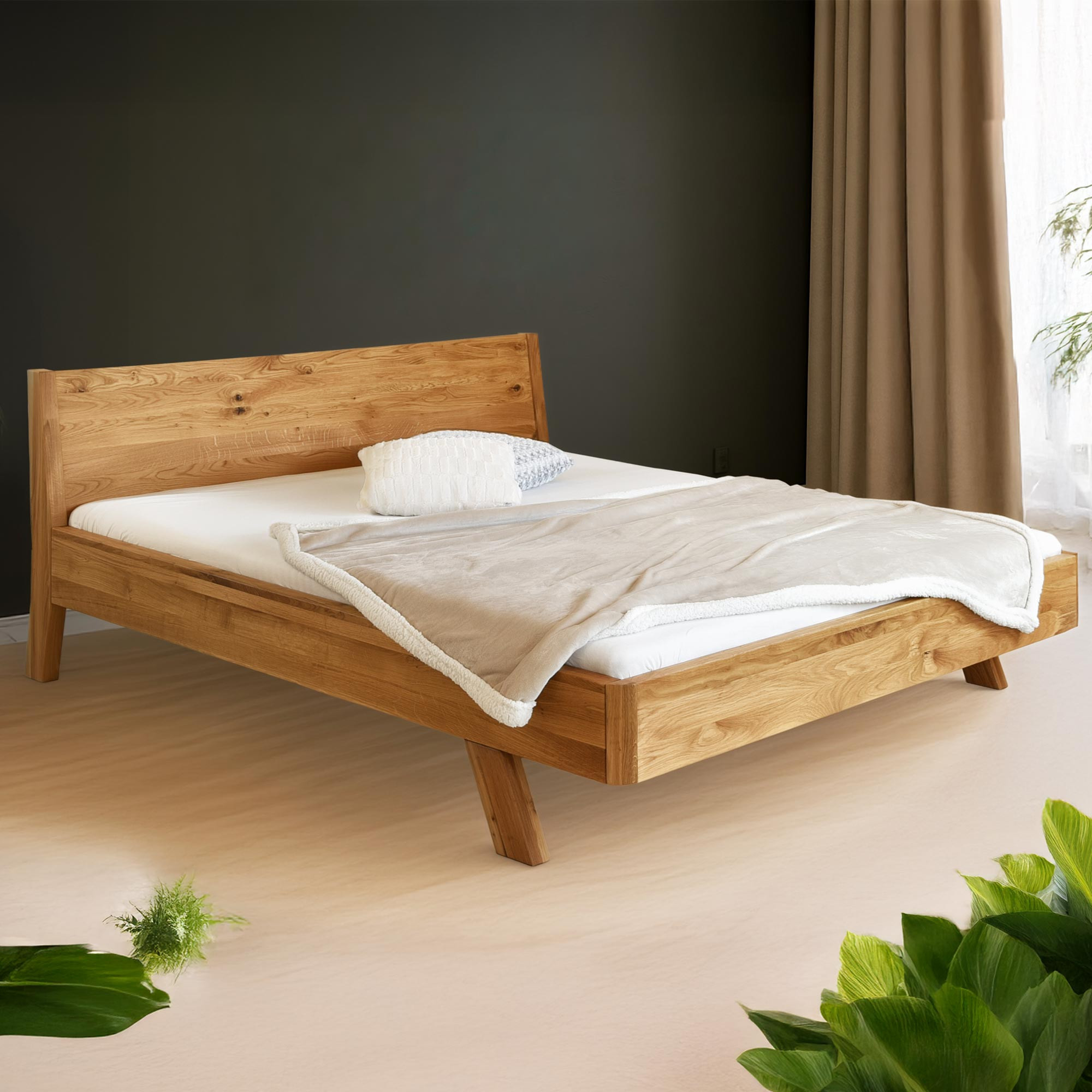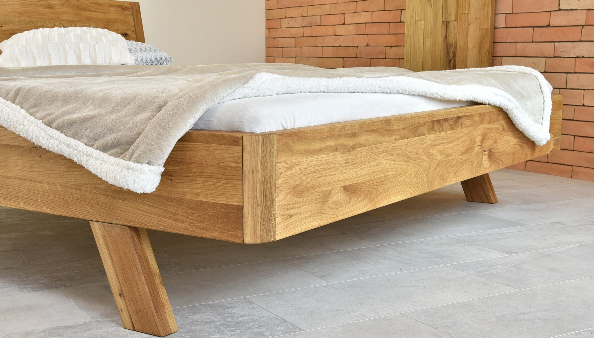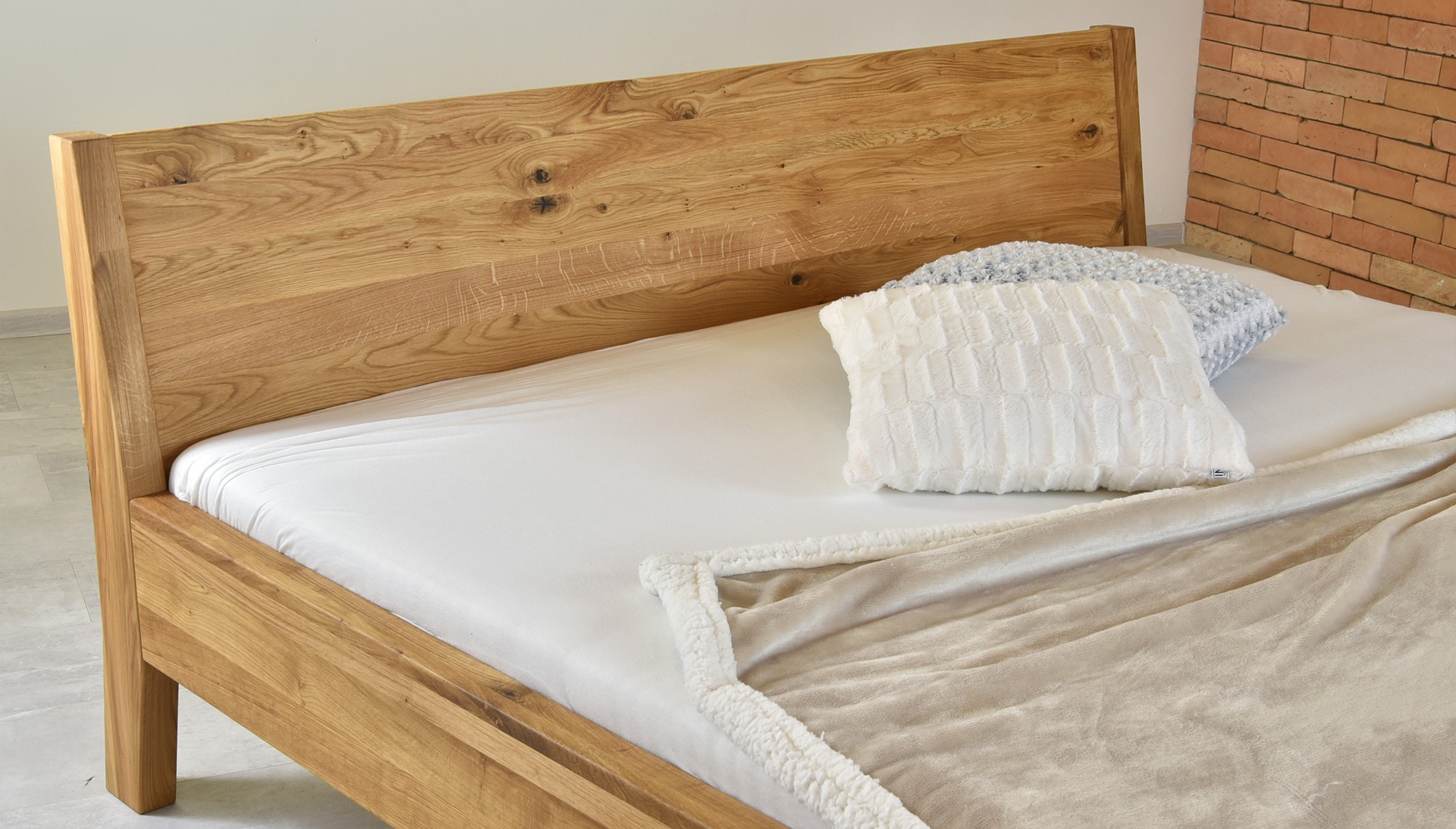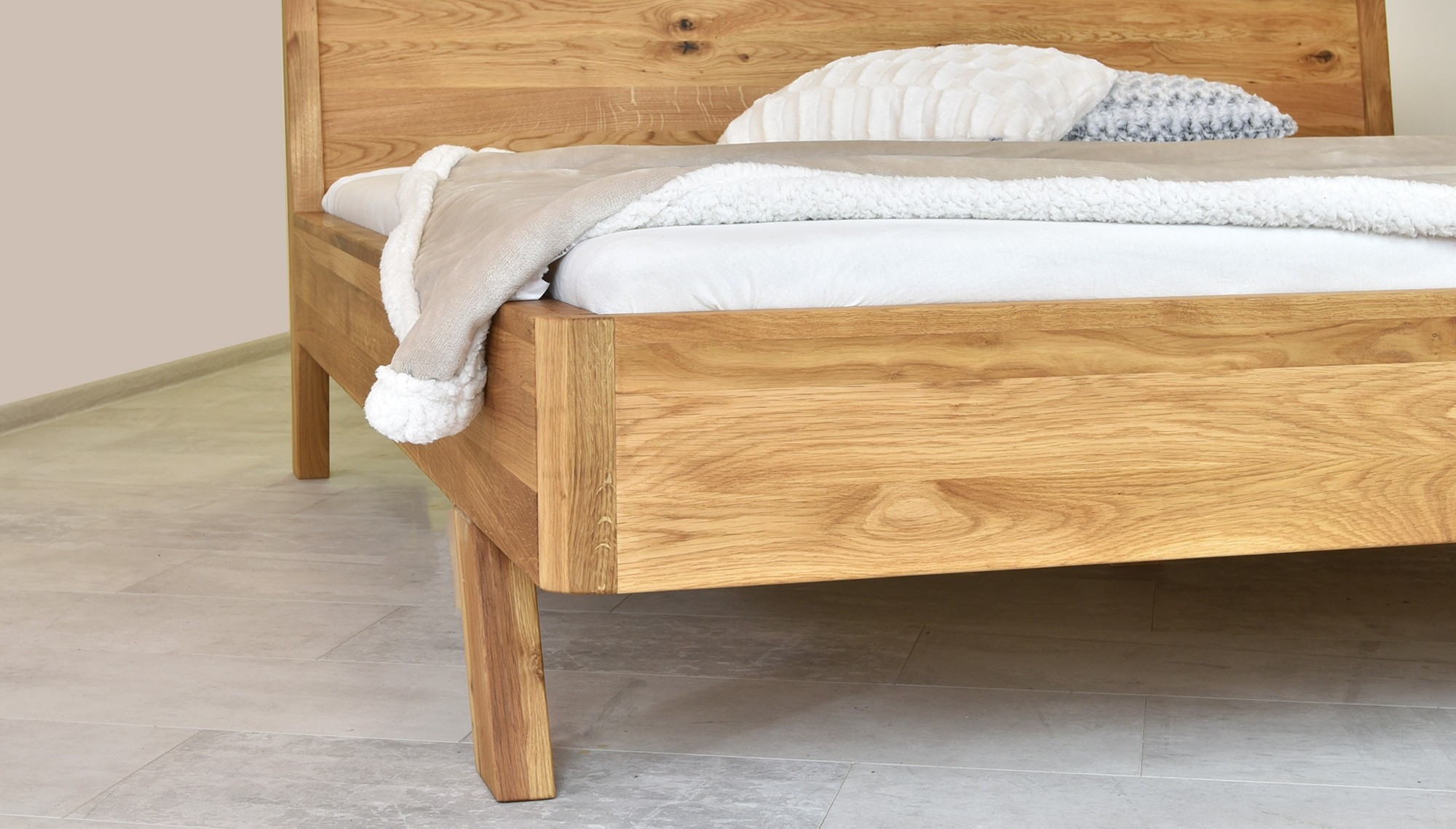 Tömör tölgyfa franciaágy 180x200 cm, természetes olajozott felület