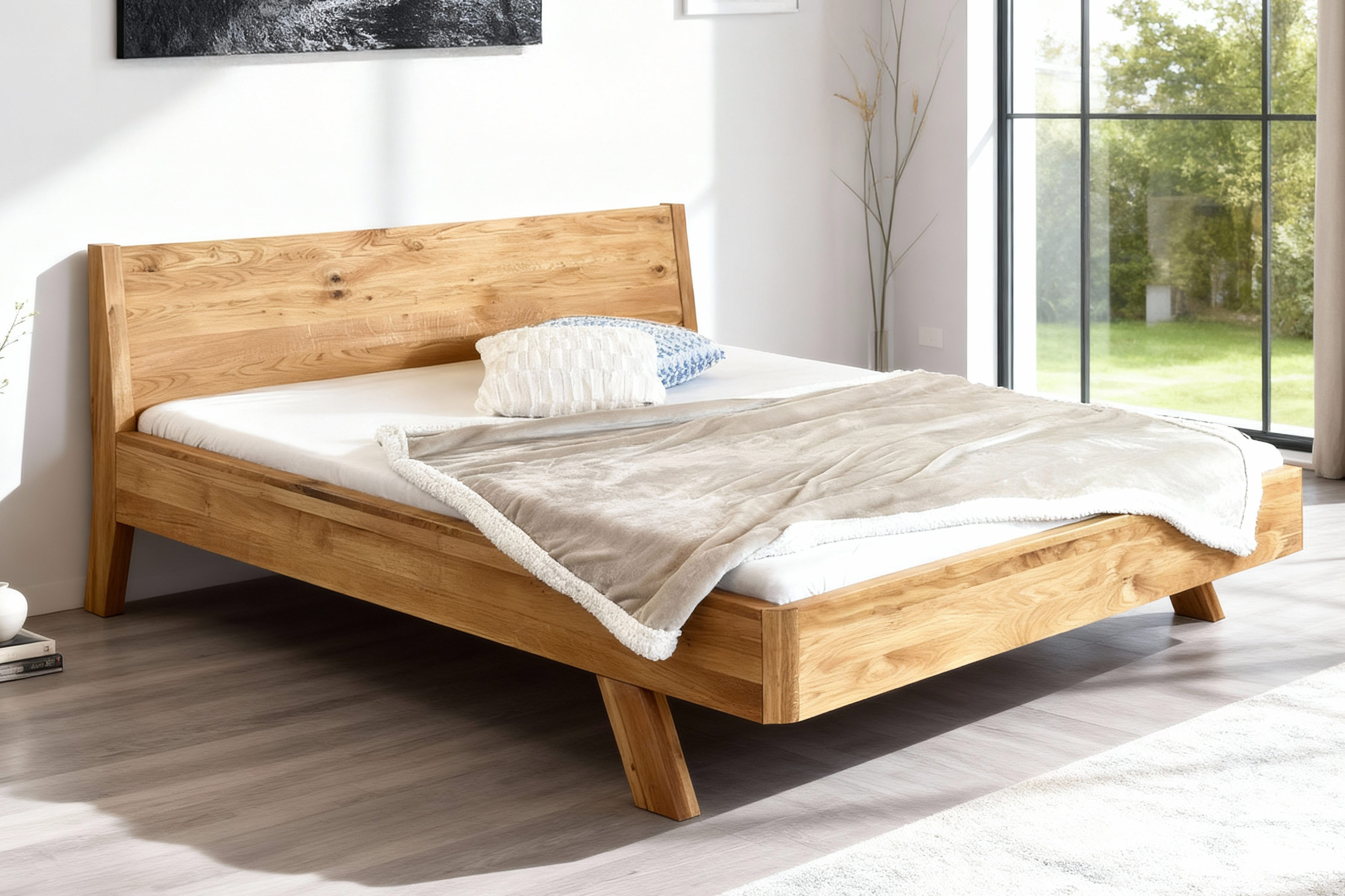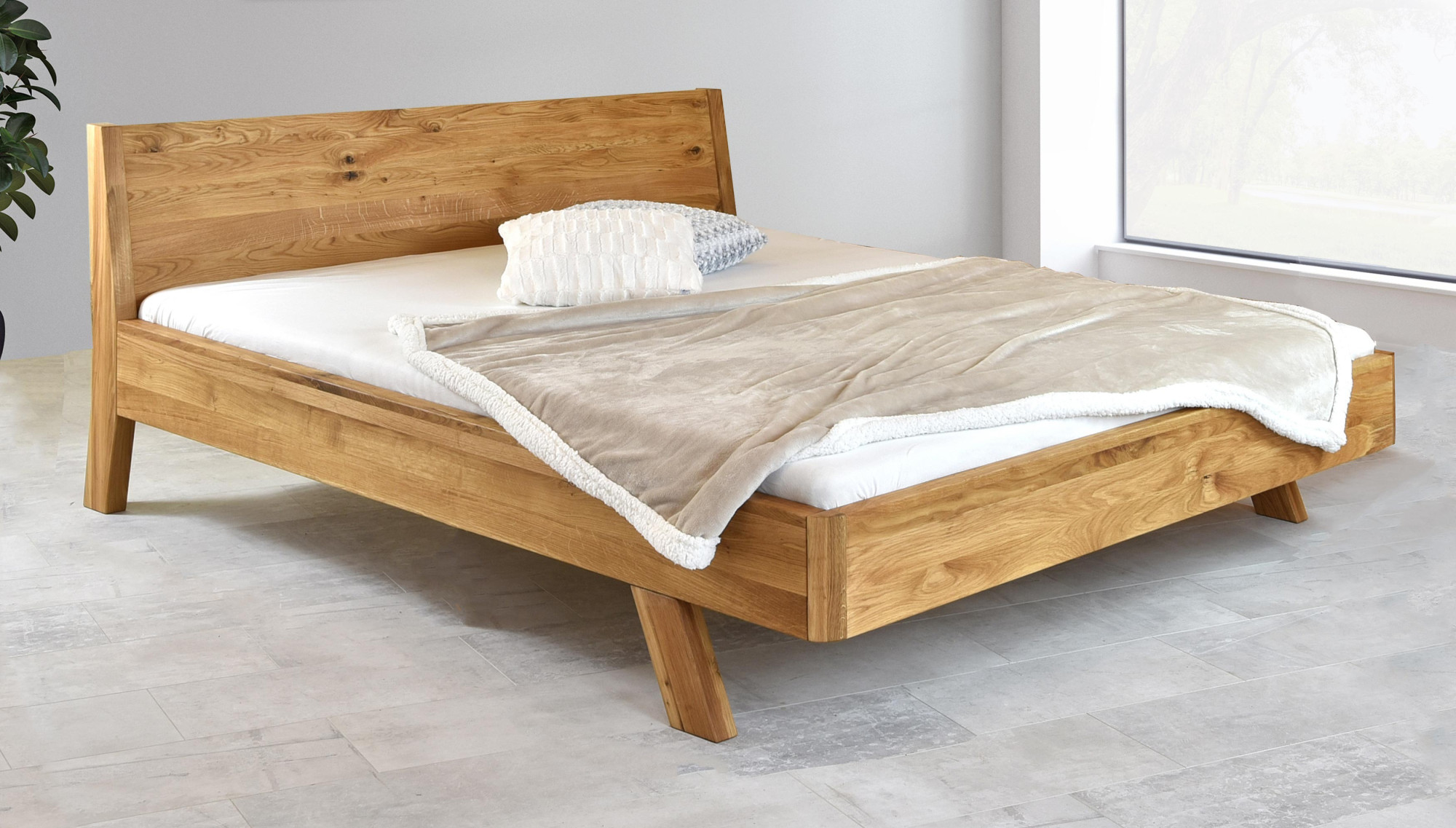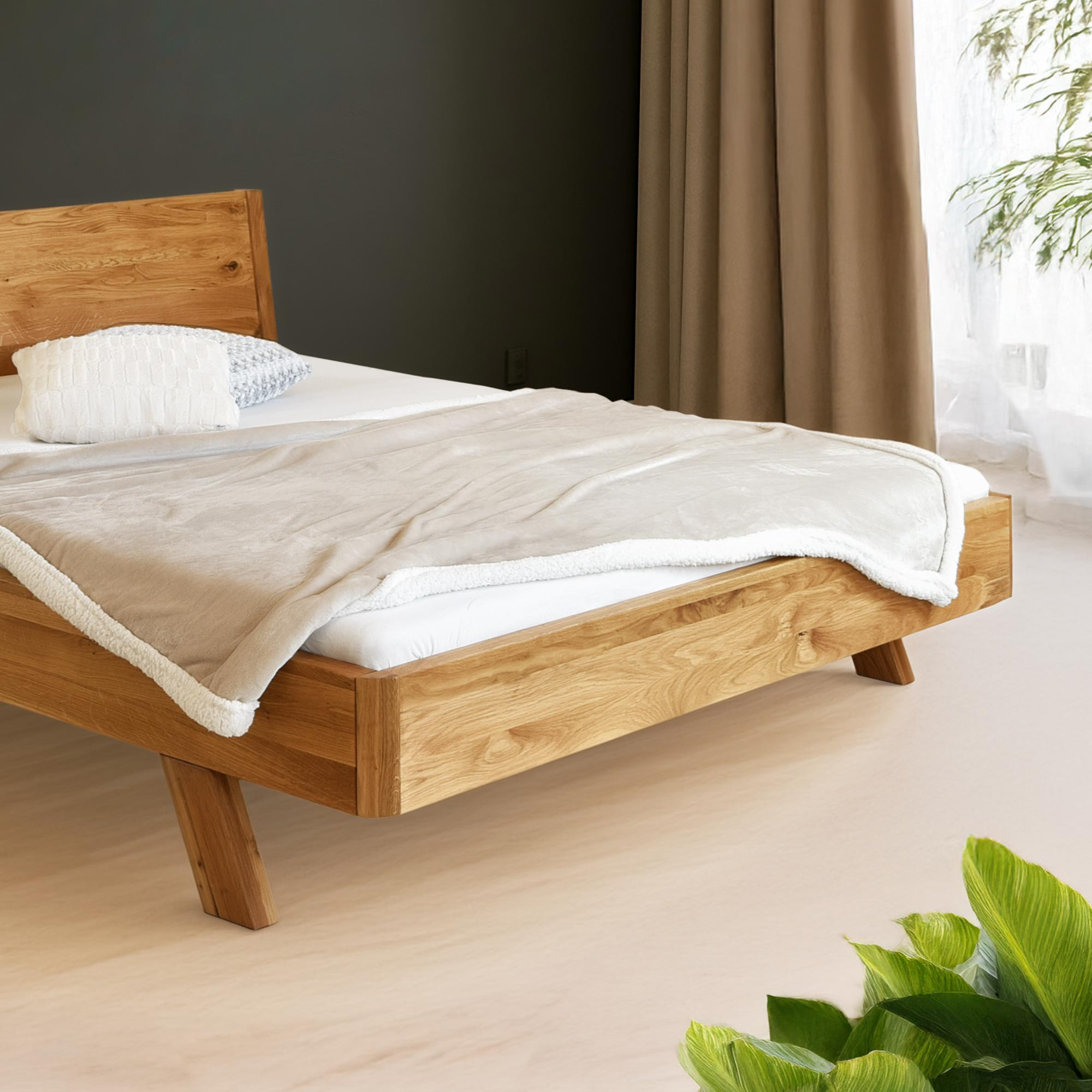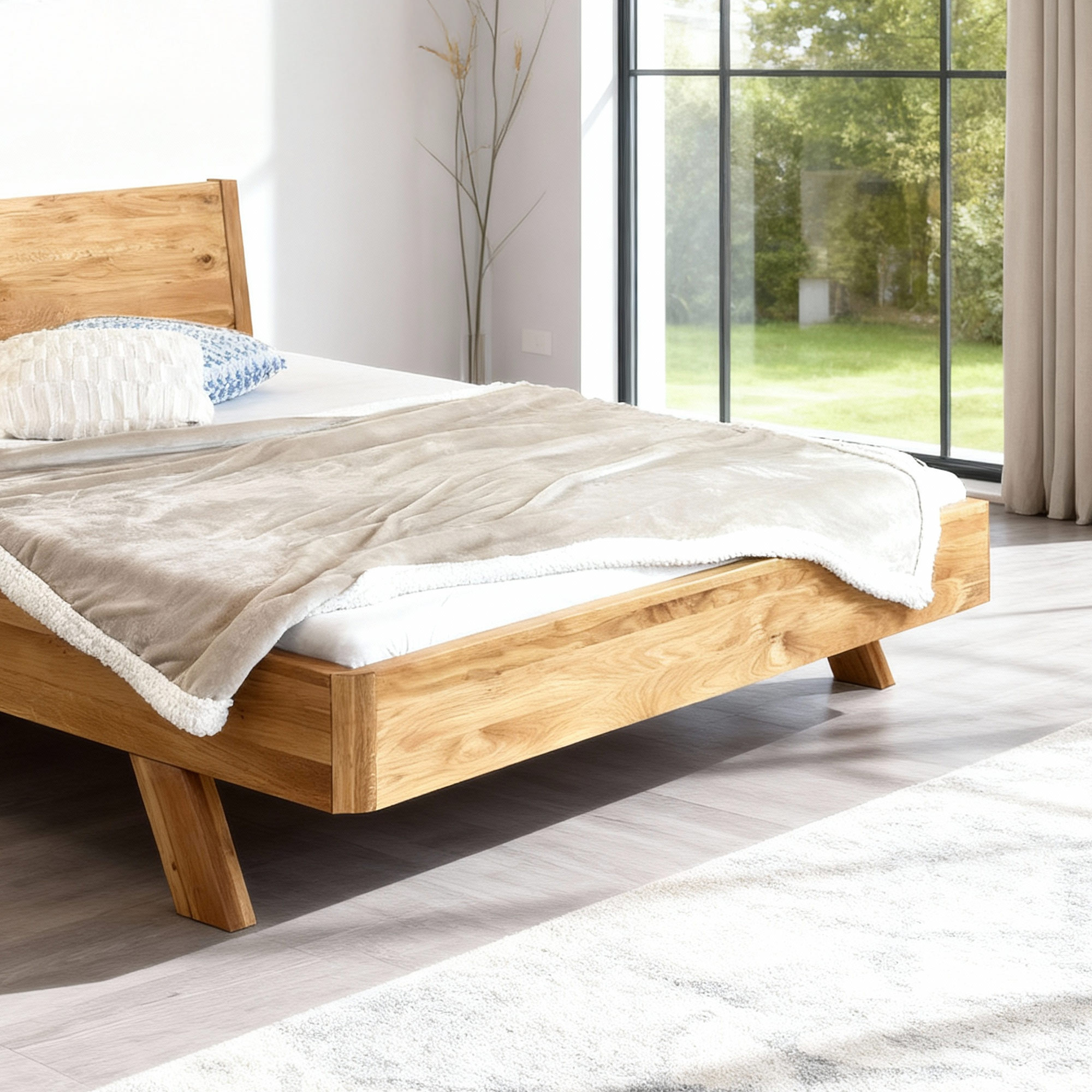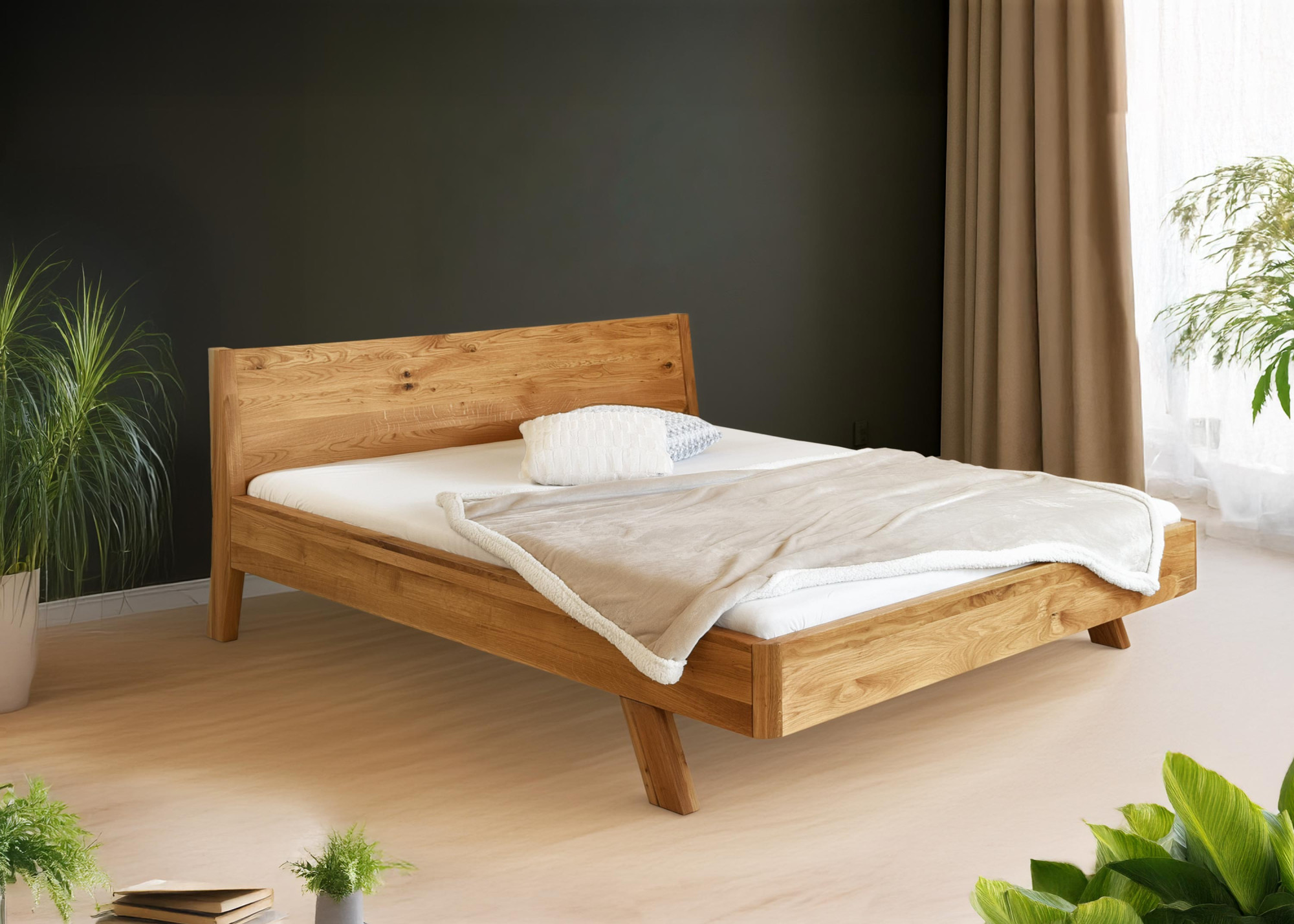 Tömör tölgyfa franciaágy 180x200 cm, természetes olajozott felület