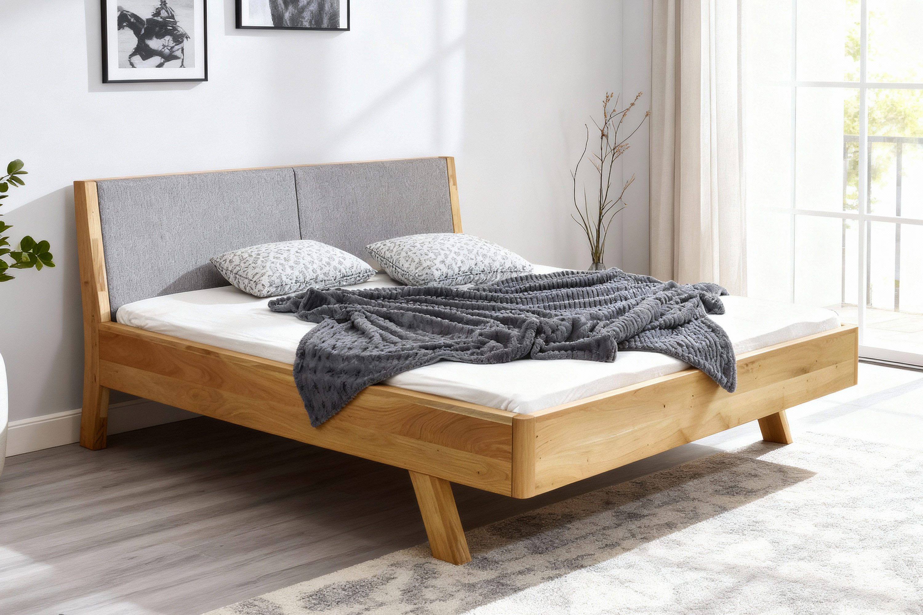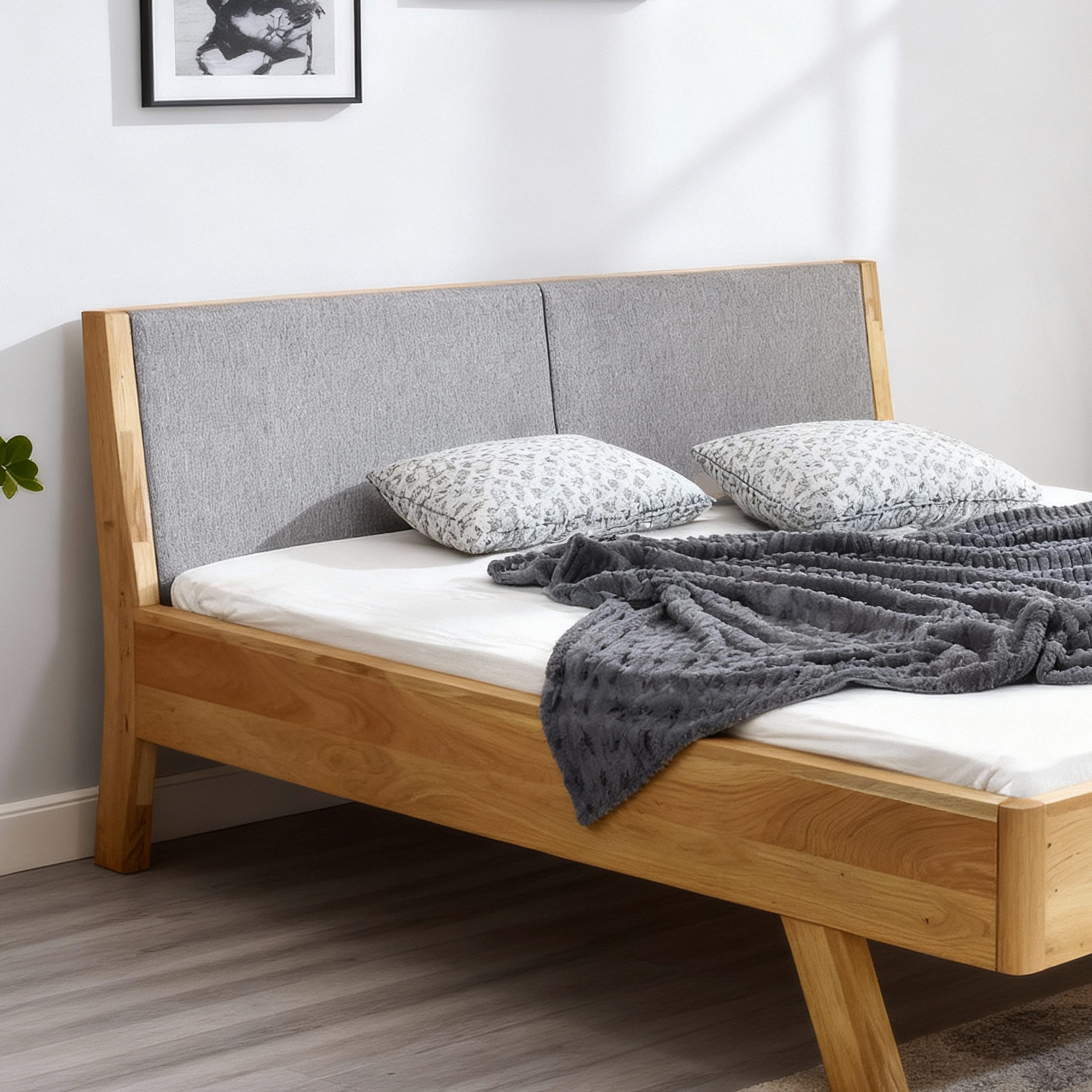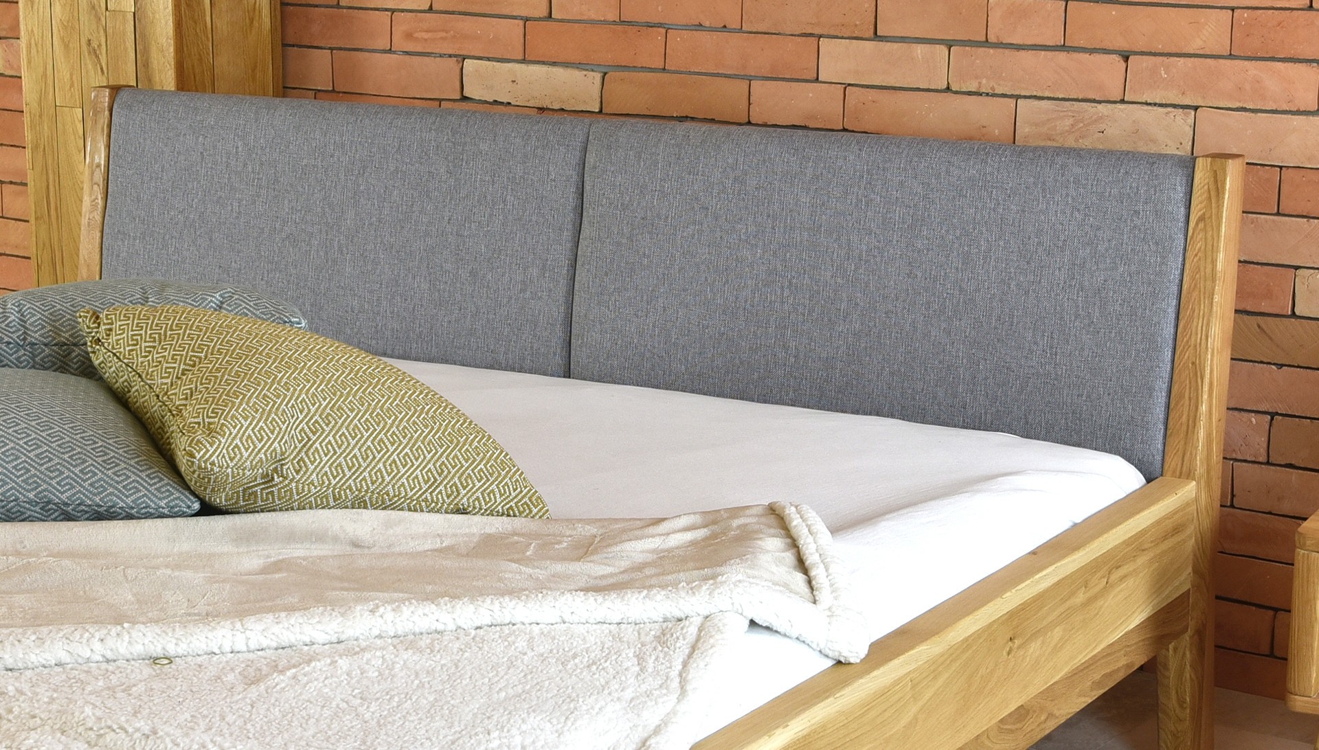 Tömör tölgy ágy, szürke kárpitozott fejvég - Marina 180 x 200 cm