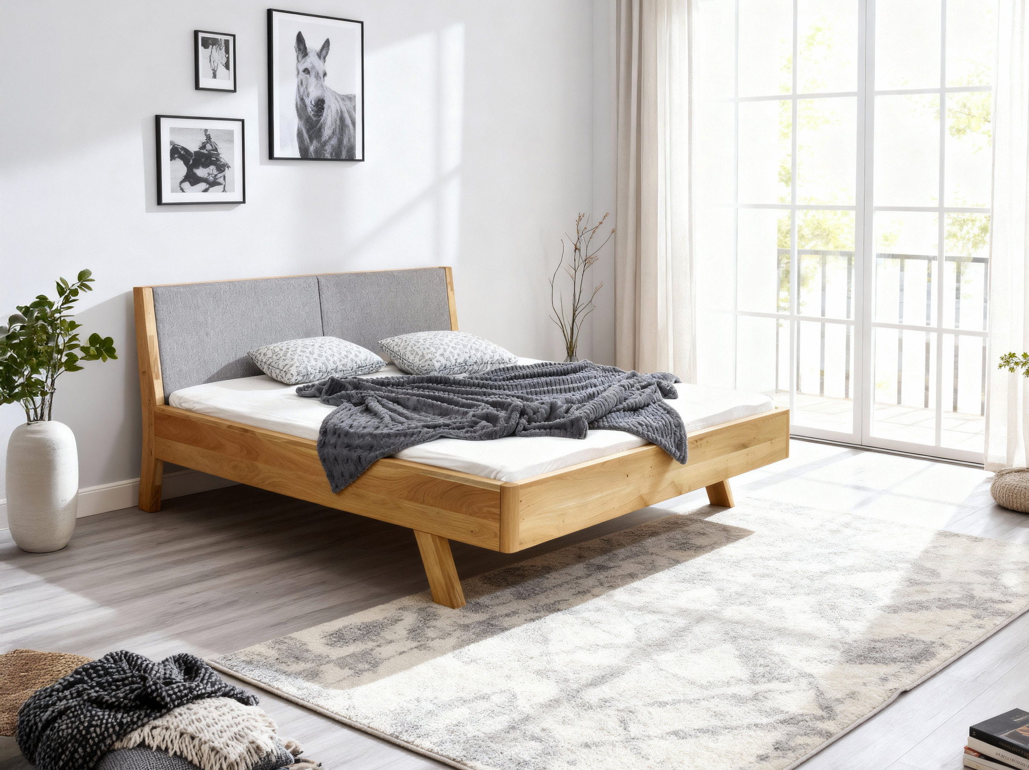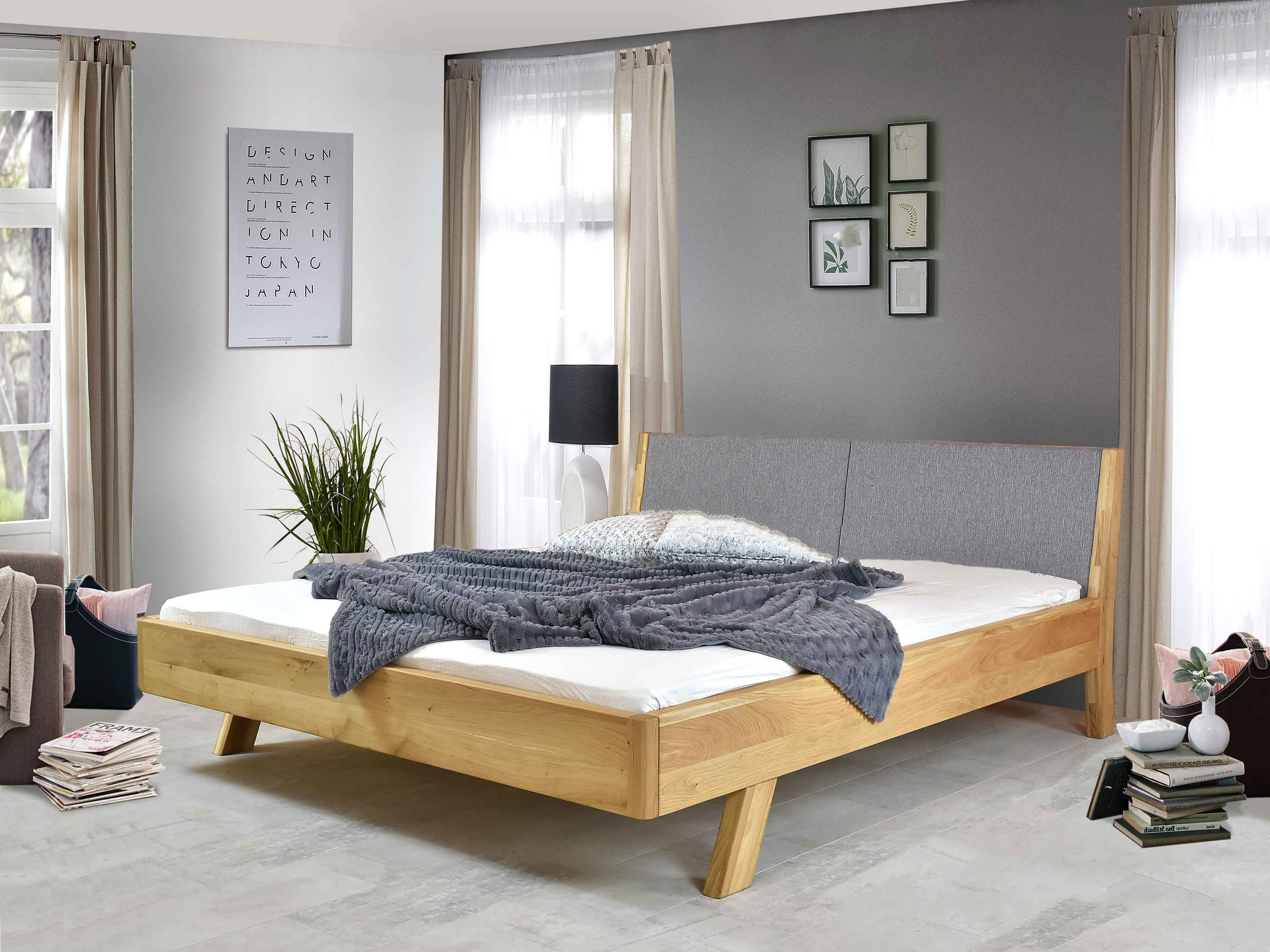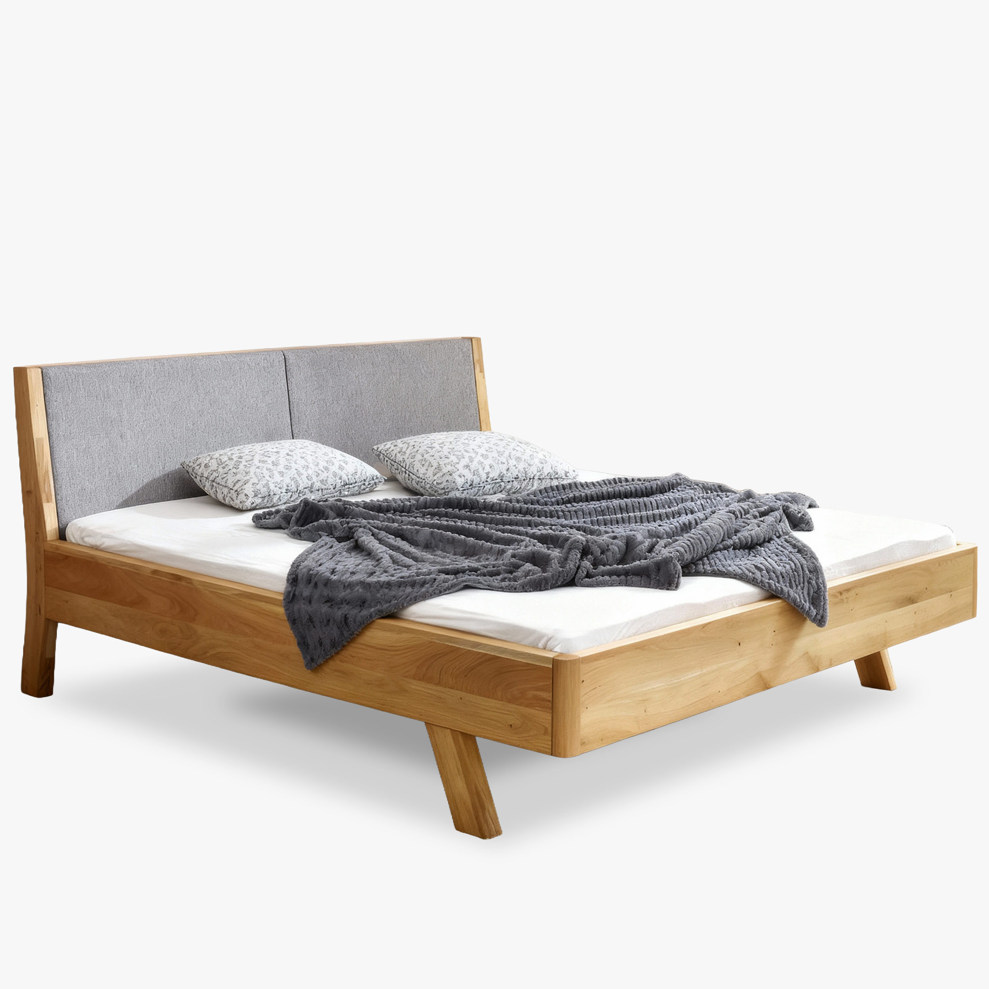 Tömör tölgy ágy, szürke kárpitozott fejvég - Marina 180 x 200 cm