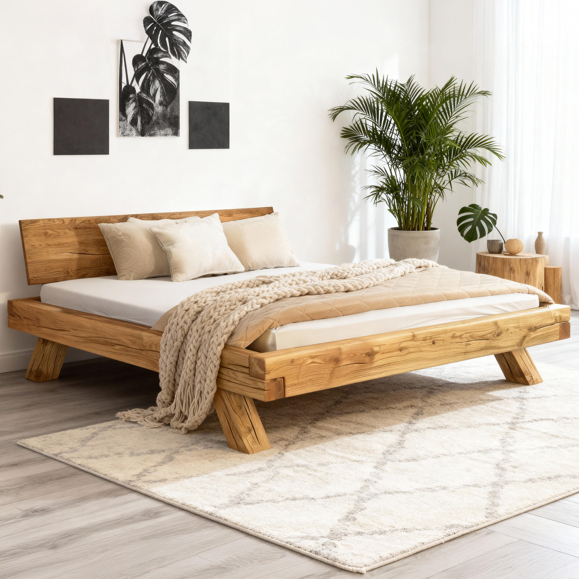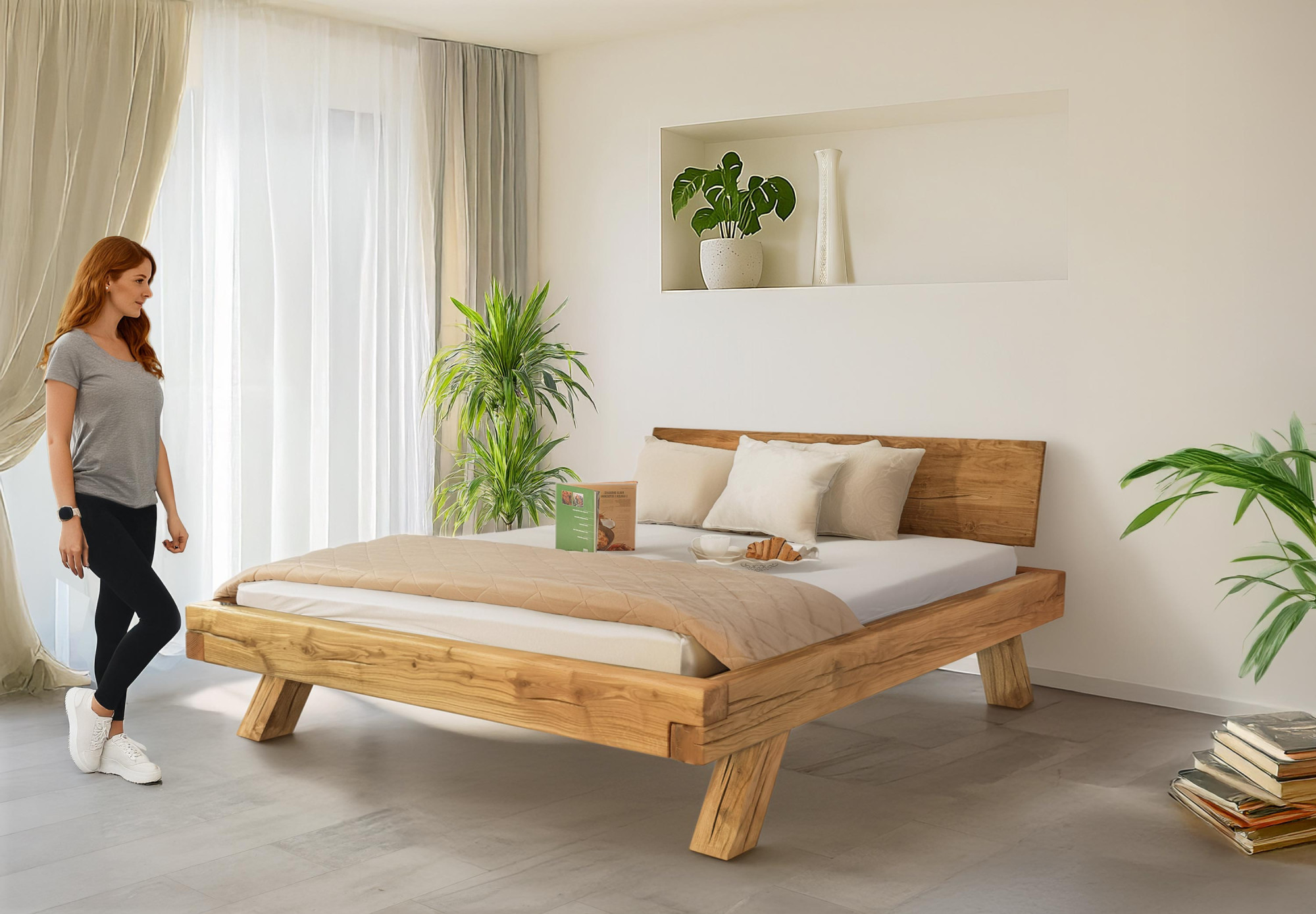 Masszív tölgyfa kétszemélyes ágy 180x200 cm, természetes olajozott