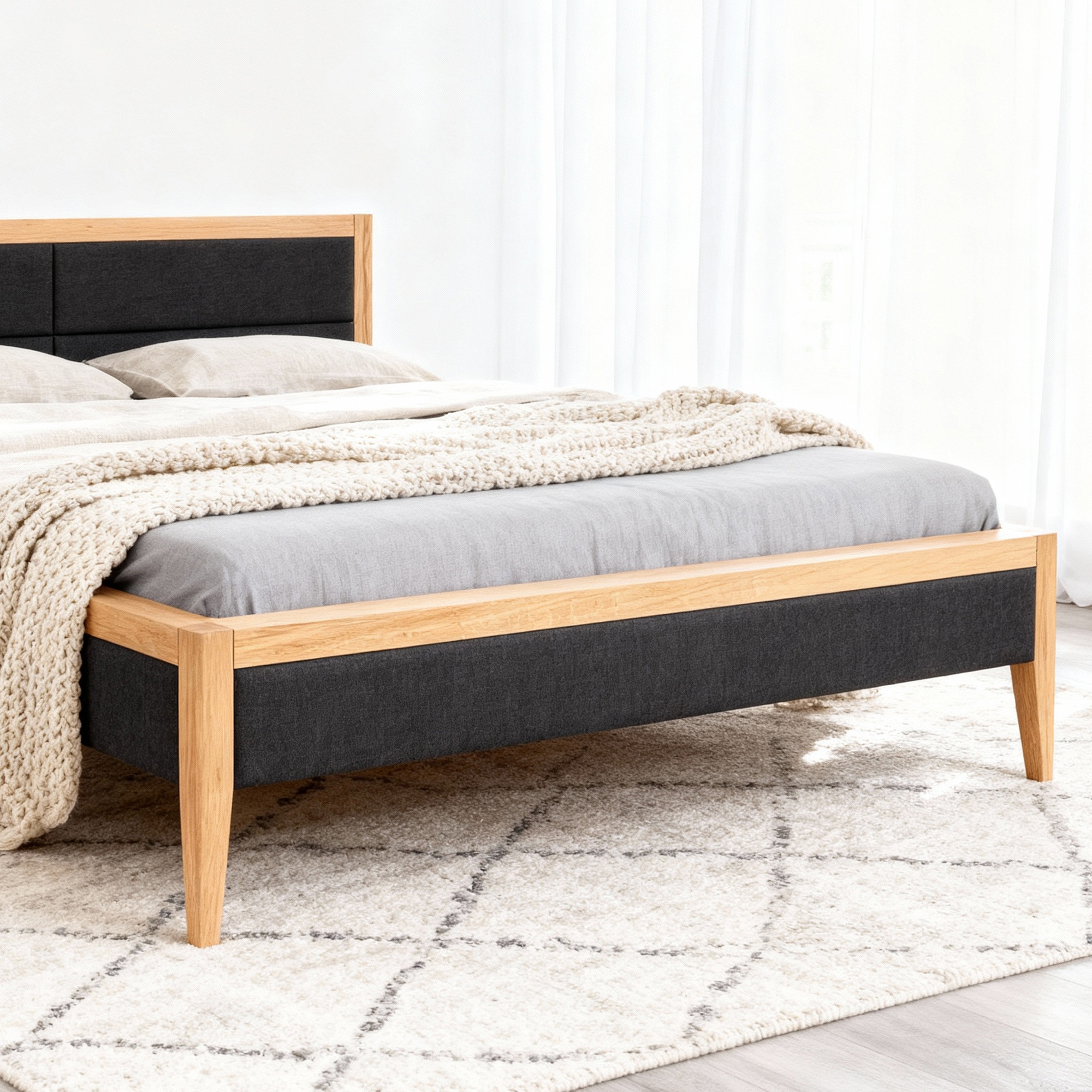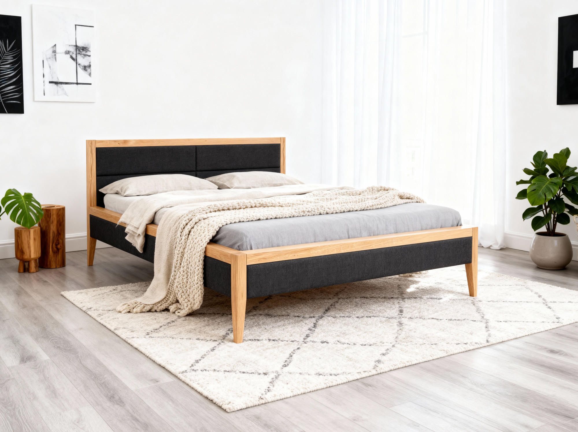 Tölgyfa ágy textillel kombinálva – Luna franciaágy 180 x 200 cm