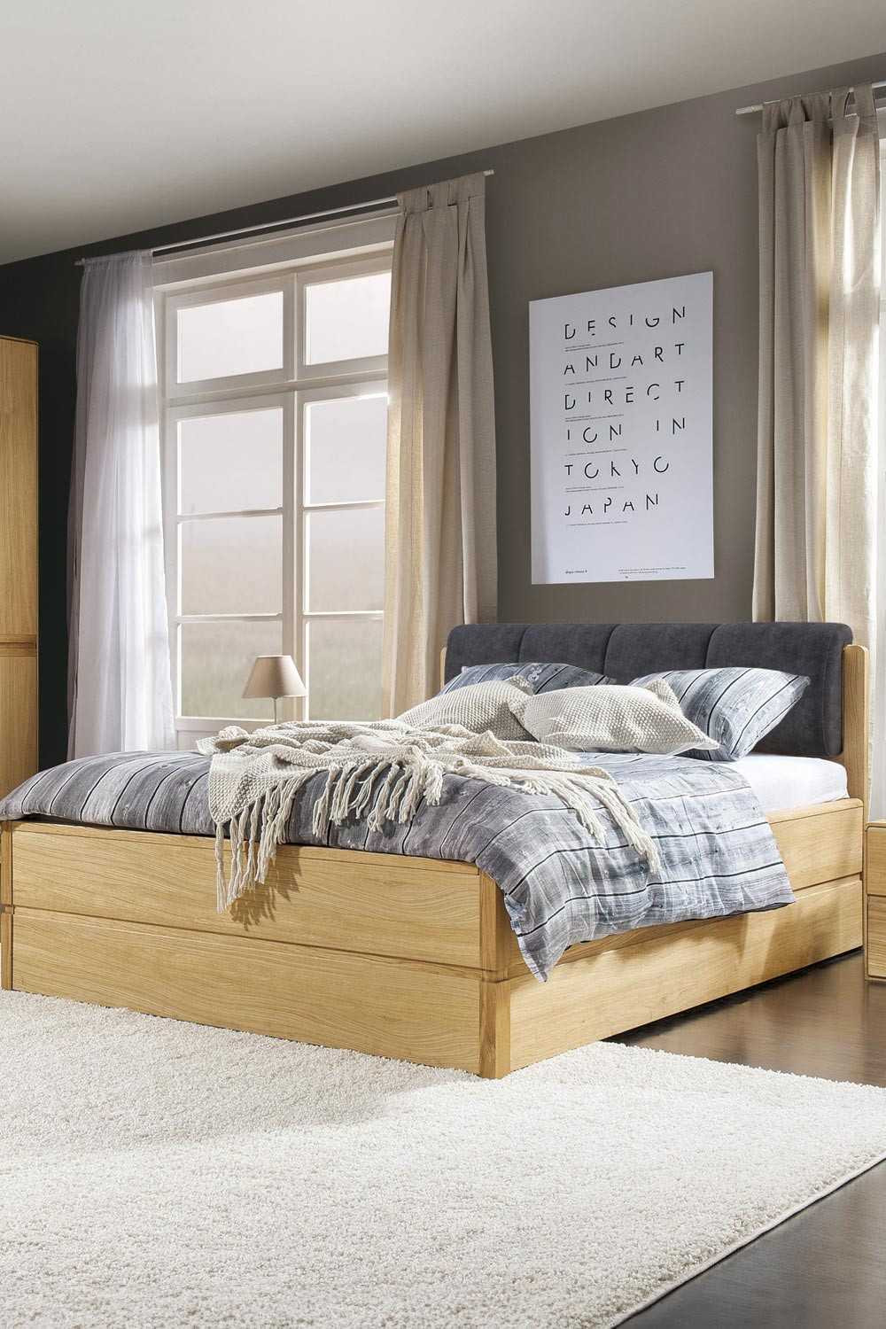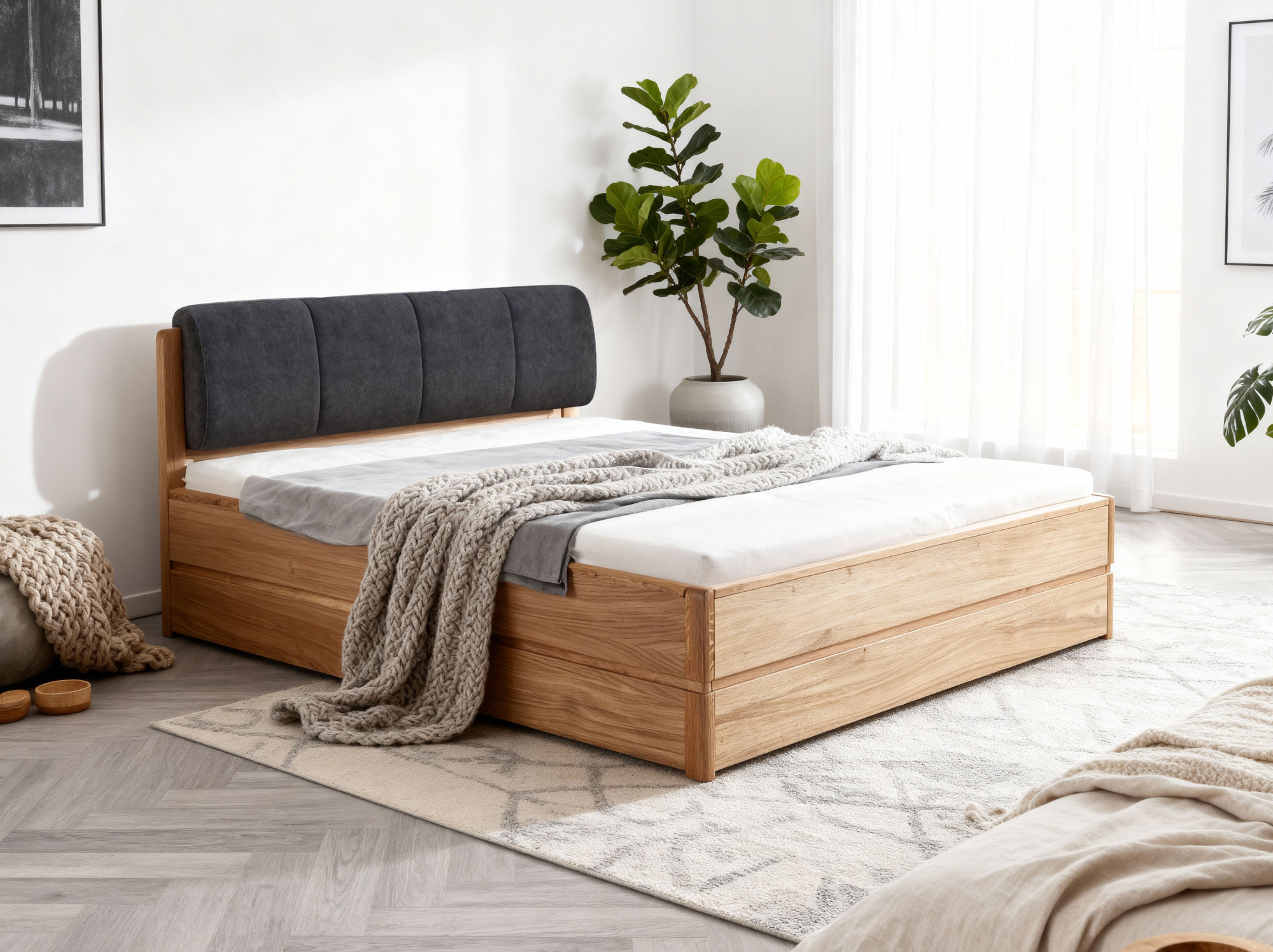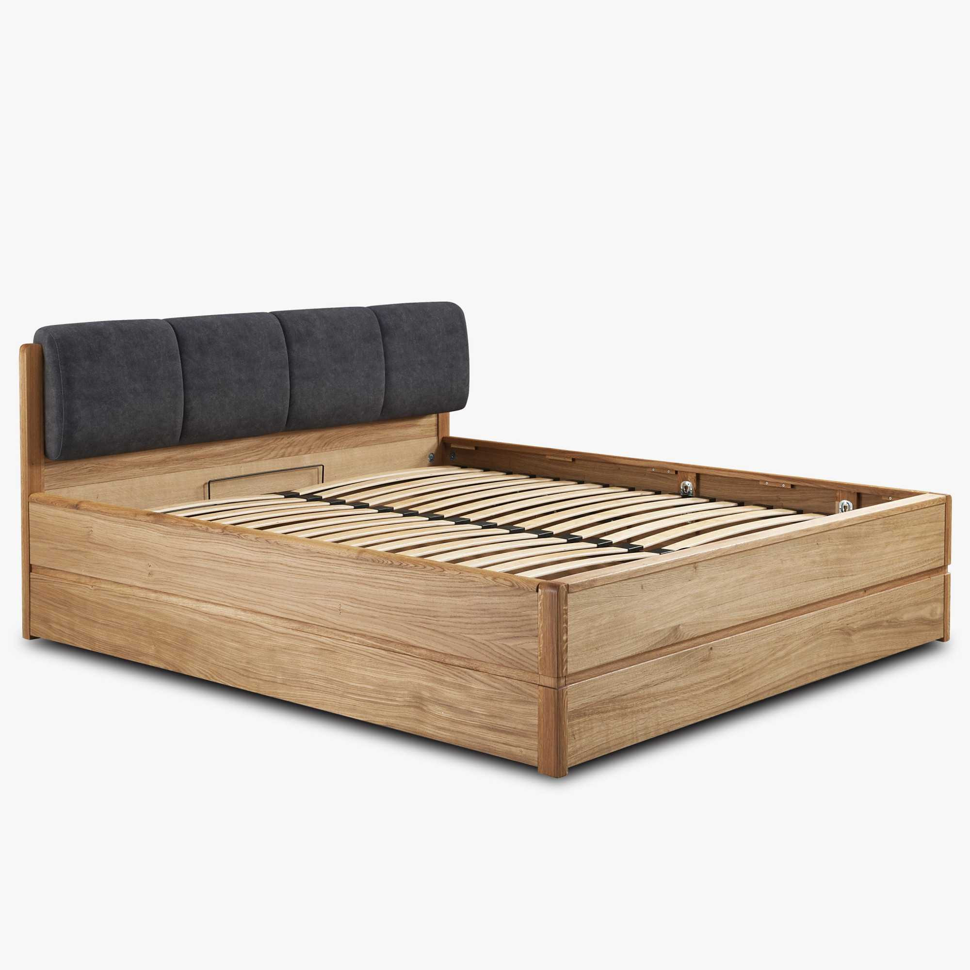 Franciaágy 180x200 natúr tölgy tárolóval, kárpitozott fejvég