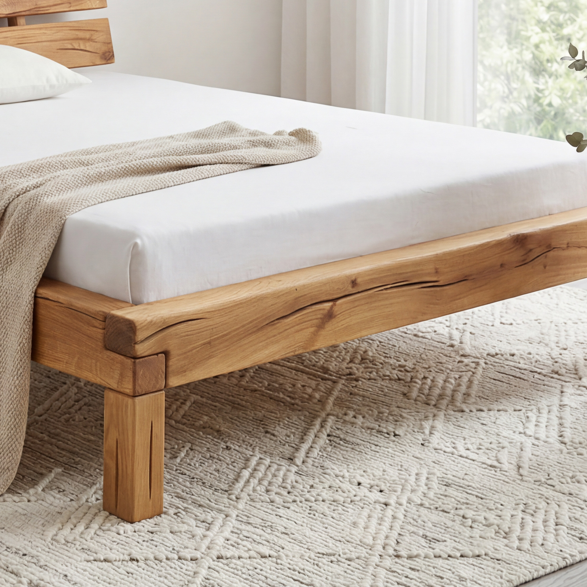 Az ágy szerkezete kimagasló szilárdságra és robusztusságra lett tervezve, 15 x 9 cm-es tölgy gerendák felhasználásával. Befektetés az Ernad ágyba egyben befektetés az Ön egészségébe és életminőségébe. A tölgyfa használatának köszönhetően, mely ismert tömörségéről és keménységéről, olyan ágyat kínálunk, amely kiállja az idő próbáját és évekig hű társ lesz. A fa természetes repedései és hasadékai az autenticitás és a természetes szépség jelei.