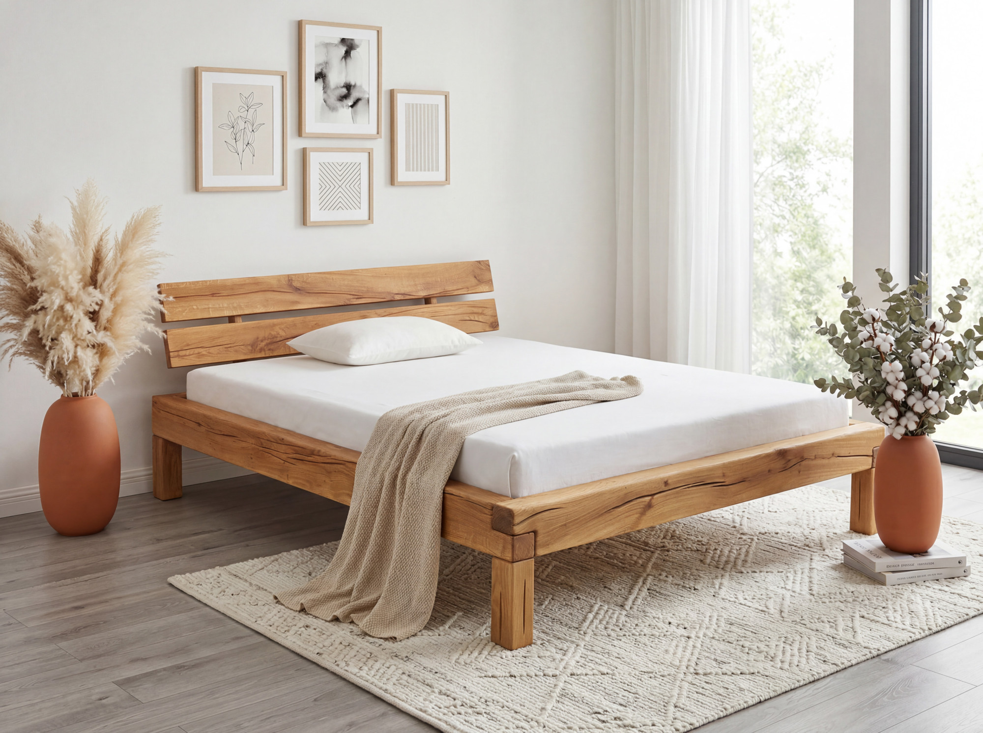 Tömör tölgy ágy 180 x 200 cm tölgy gerendákból, Ernad III