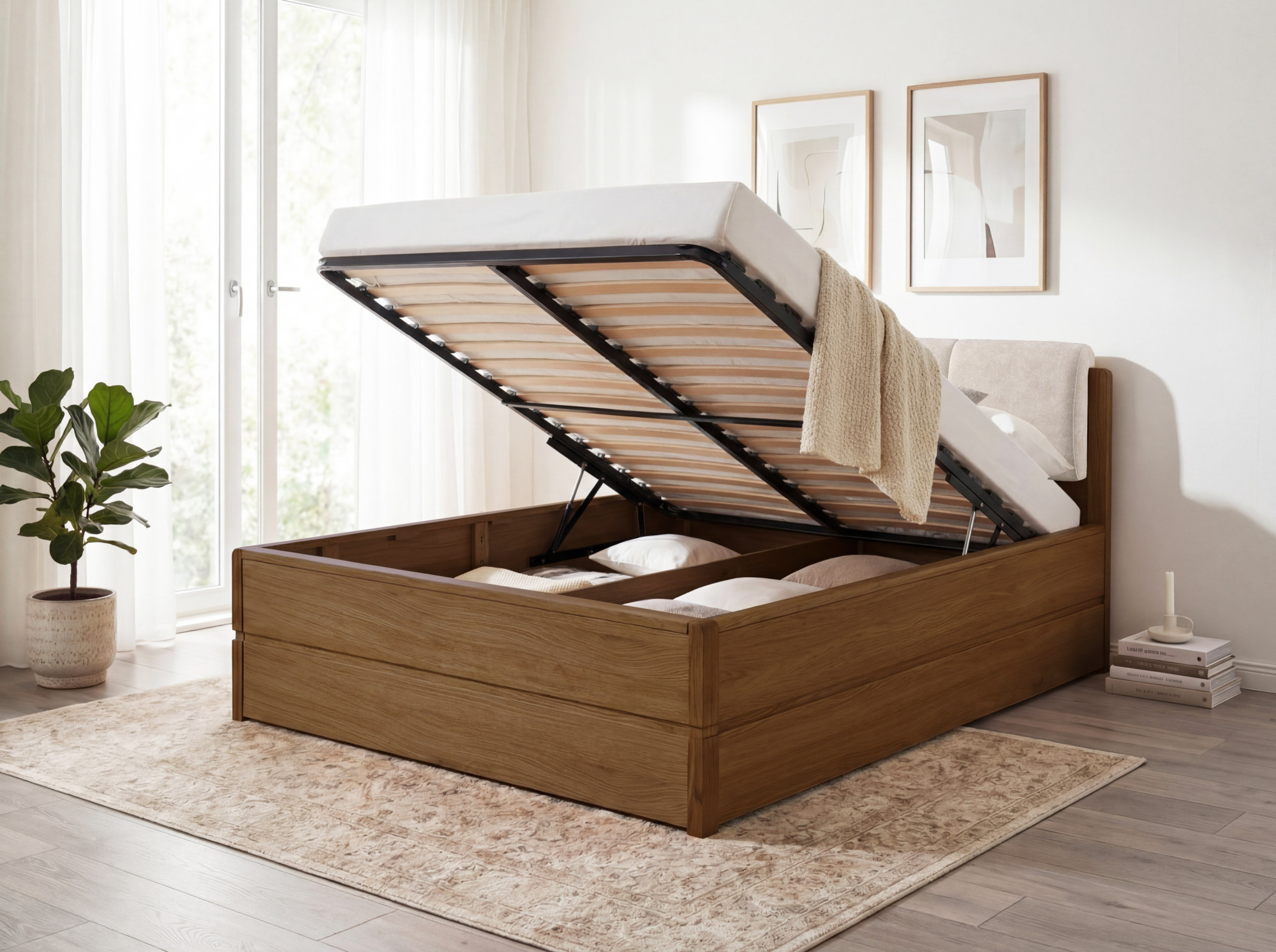 A csomagban benne van egy minőségi lamellás ágybetét. A matracot igény szerint külön tudja megvásárolni. - Hogyan működik a tárolóhely?