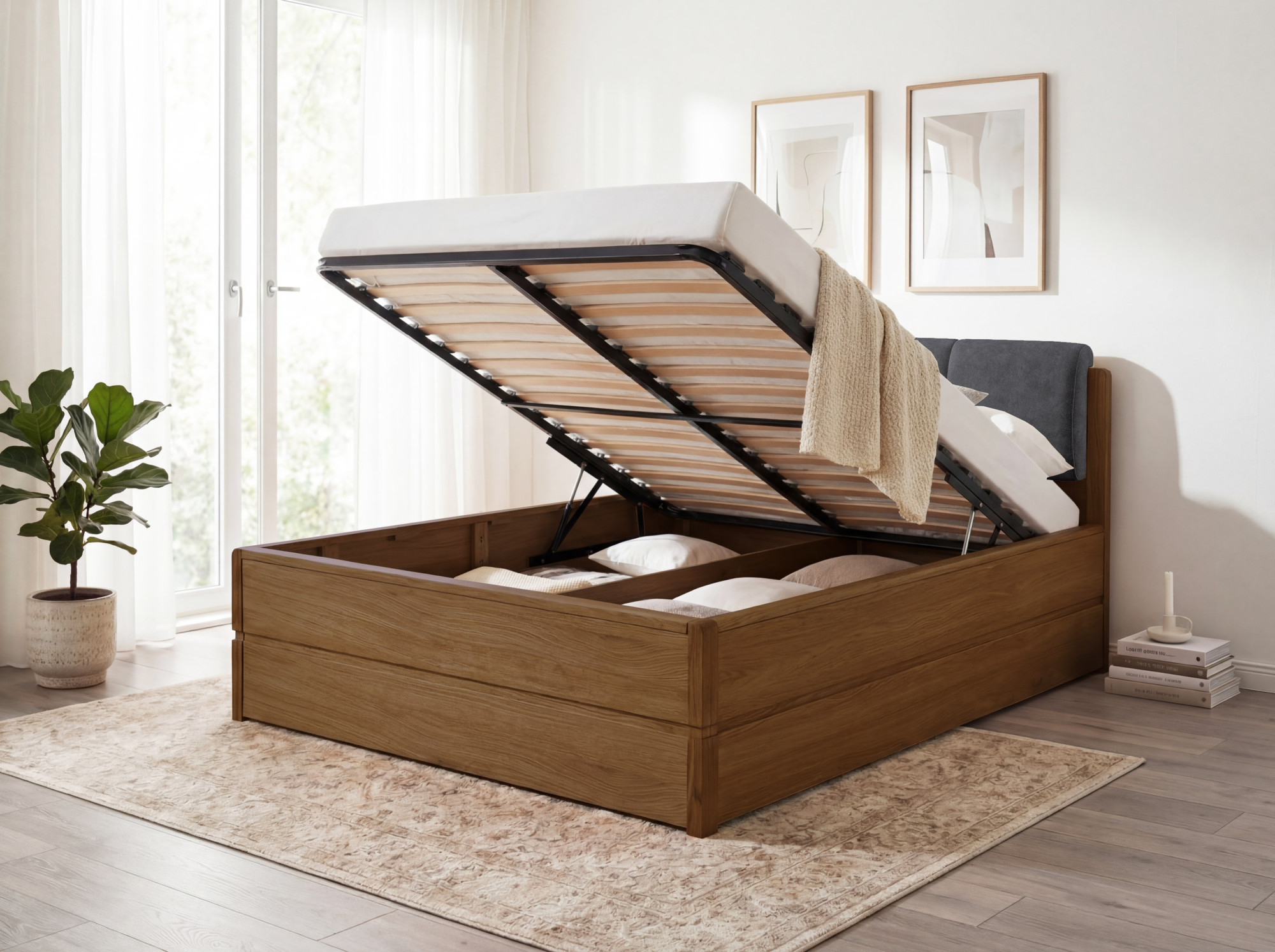 Szállítási csomag része a minőségi lamellás ágyrács. A matracot külön vásárolhatja meg igényei szerint. - Hogyan működik a tárolóhely?