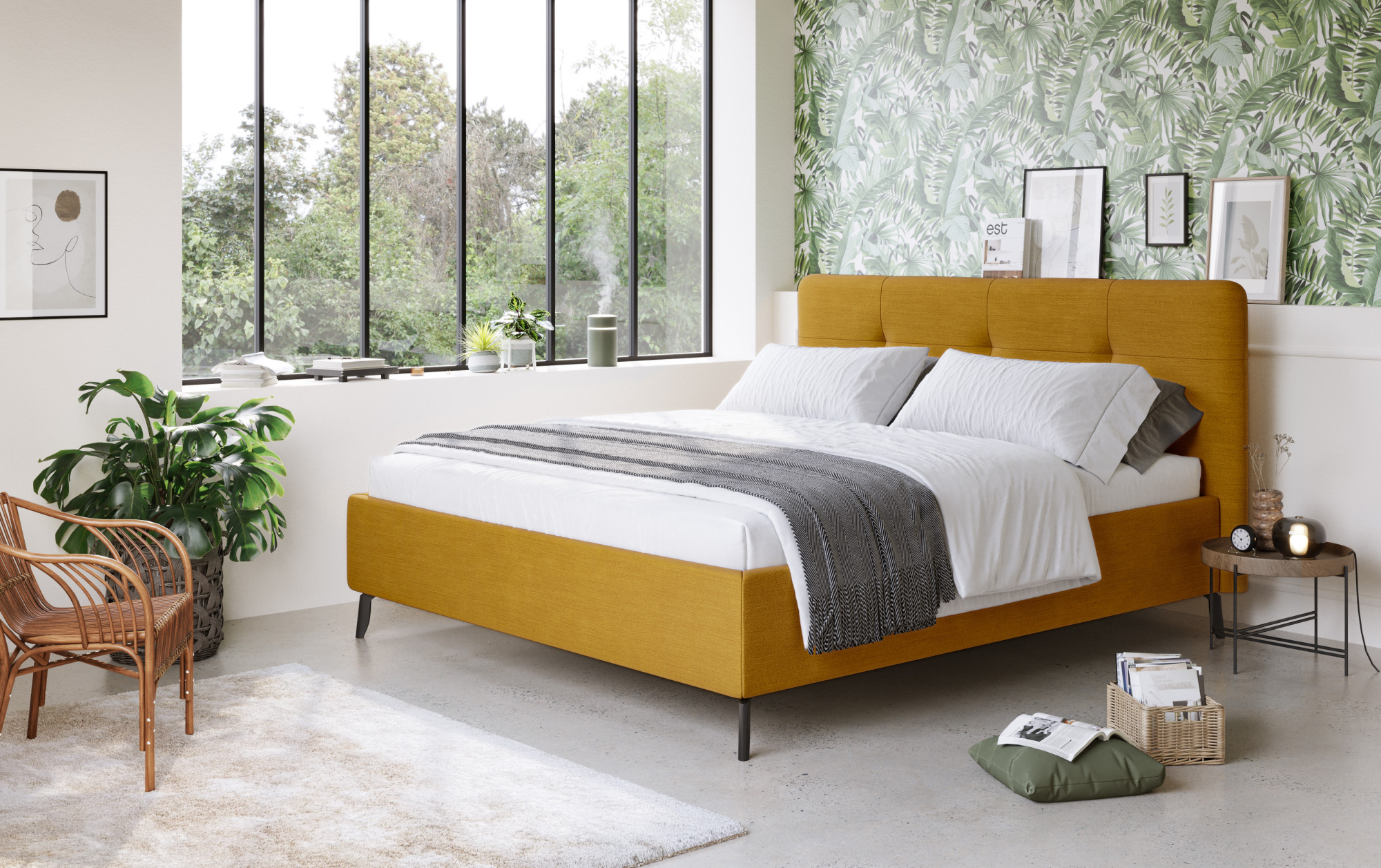 Ágy FINE FLATWEAVE anyagban – sárga