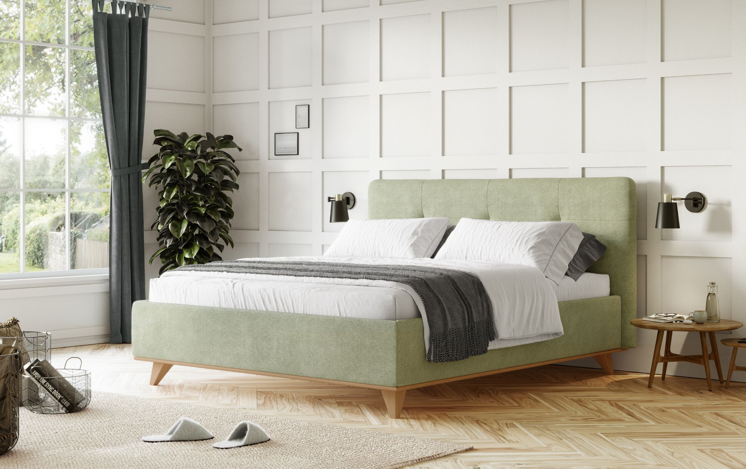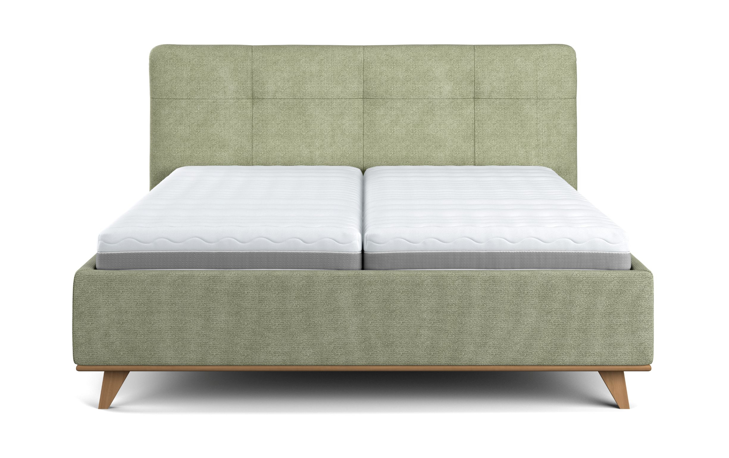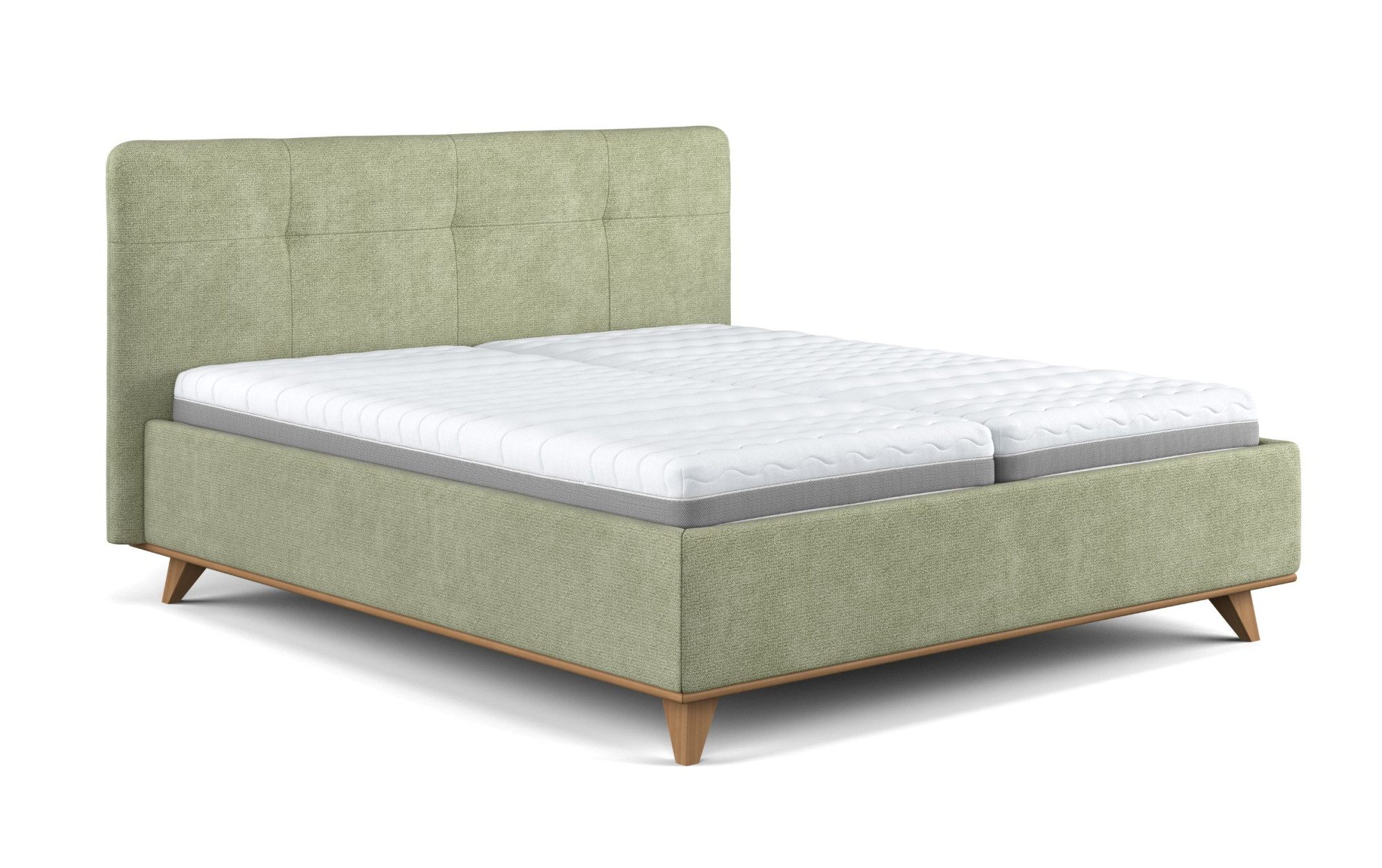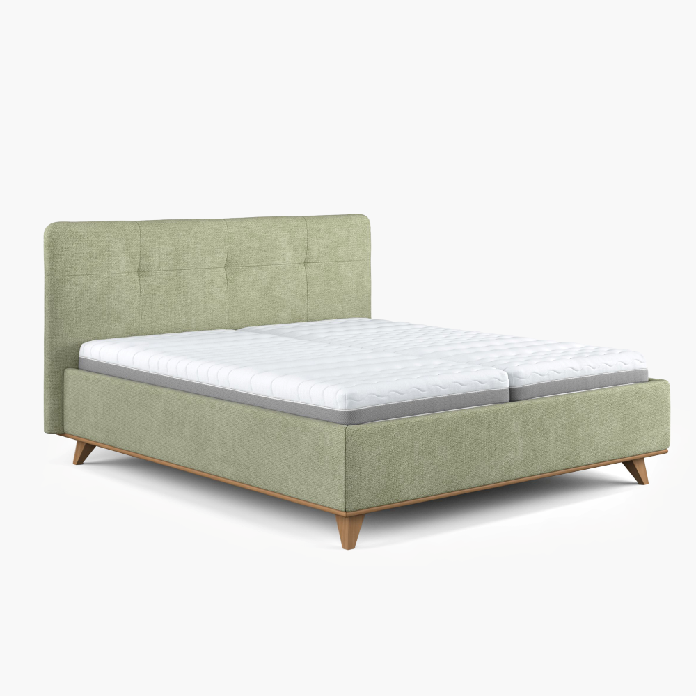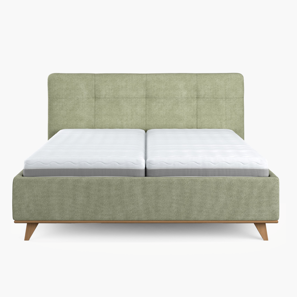Az ágy kiváló minőségű szövettel van bevonva elegáns zöld színben, amely kellemes tapintású és természetes, otthonos hatást kelt. Tisztításához javasoljuk gyengéd gyermekszappant. Az anyag kivételes ellenállósággal rendelkezik – akár 100 000 Martindale-ciklus, így tökéletes megjelenését évekig megőrzi.