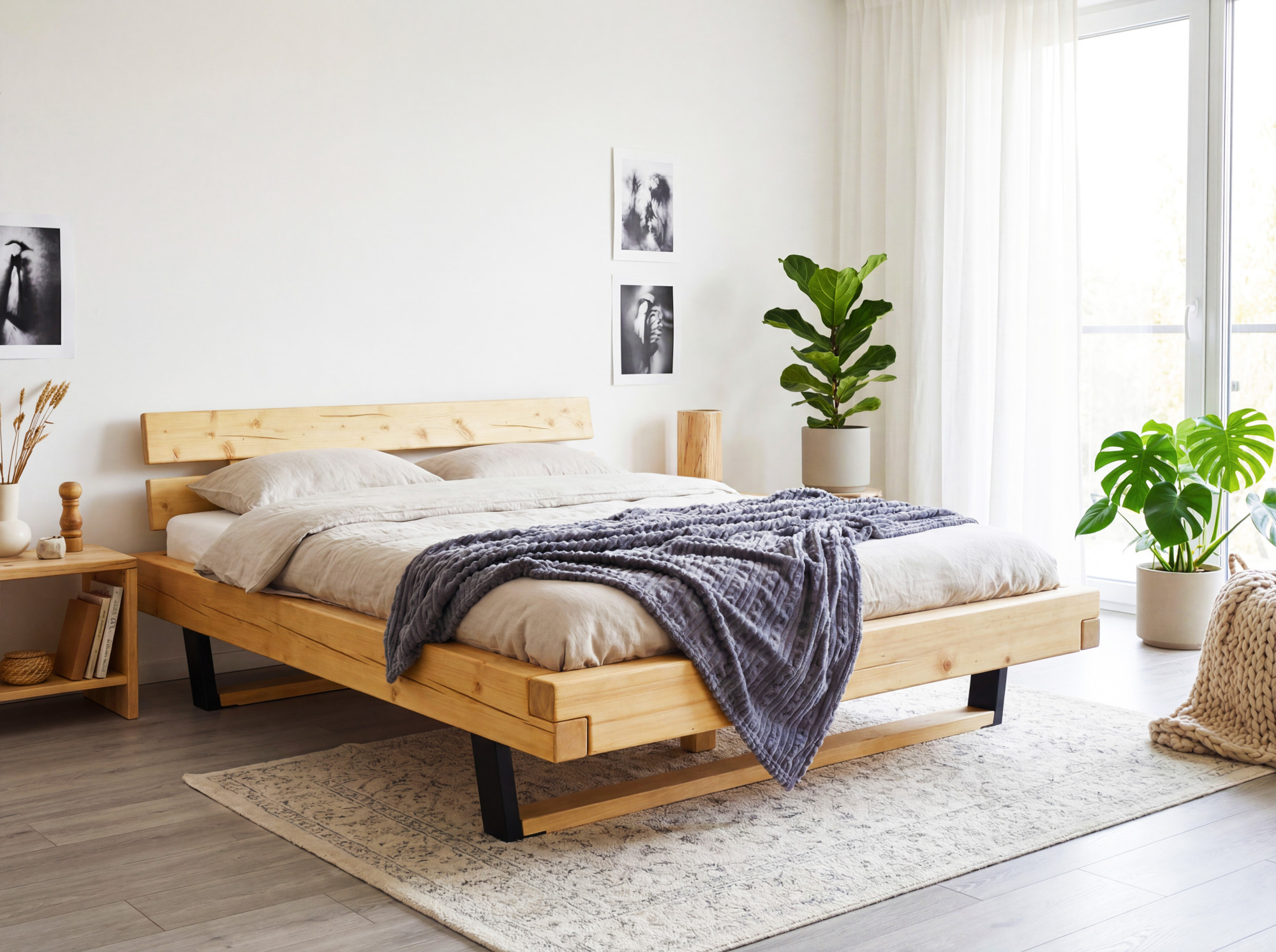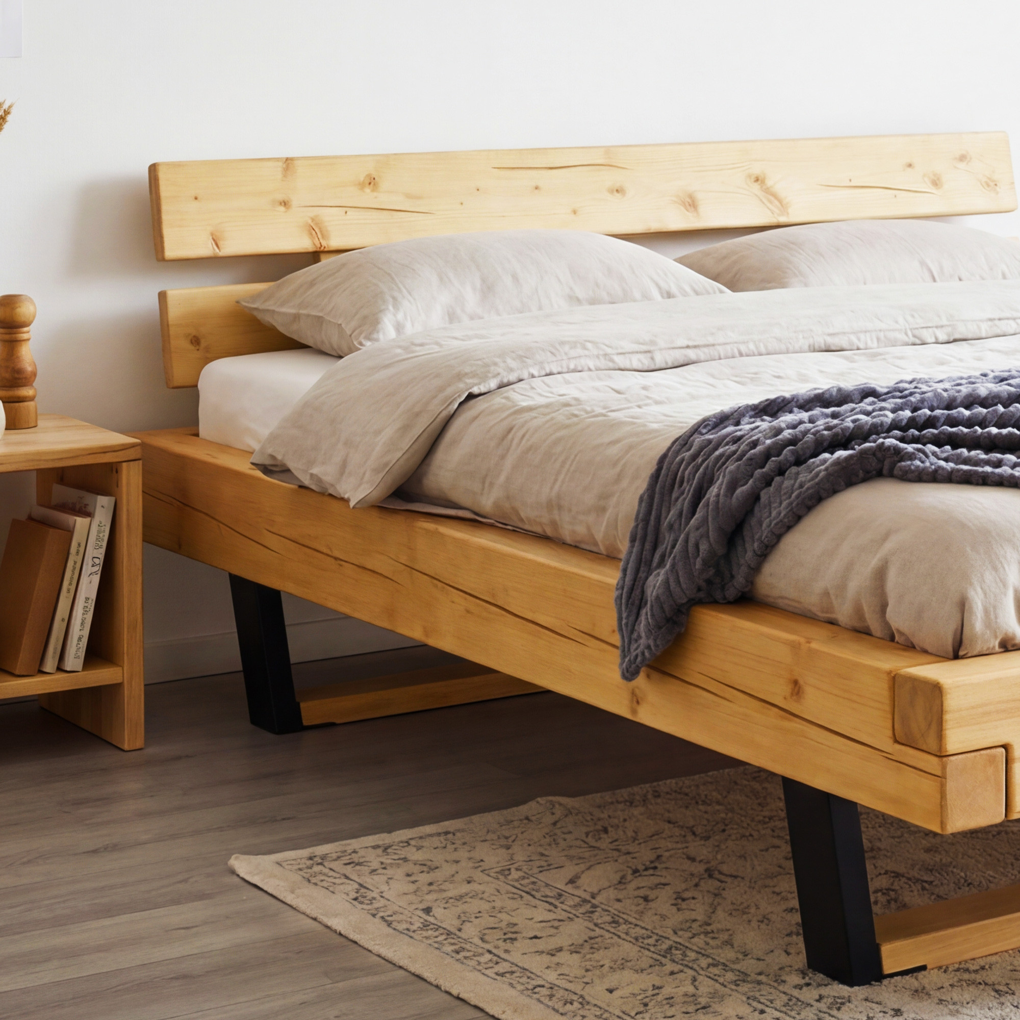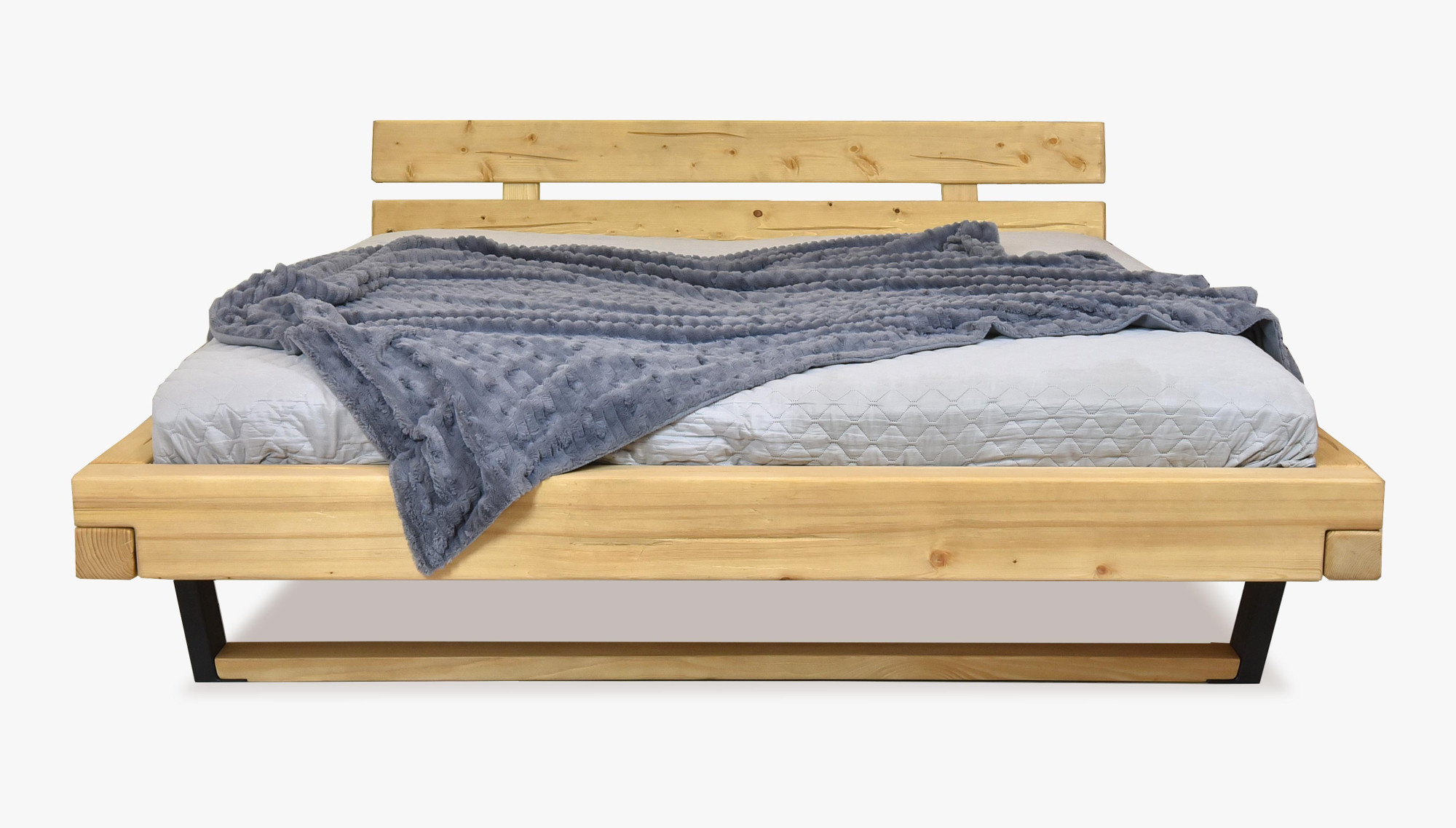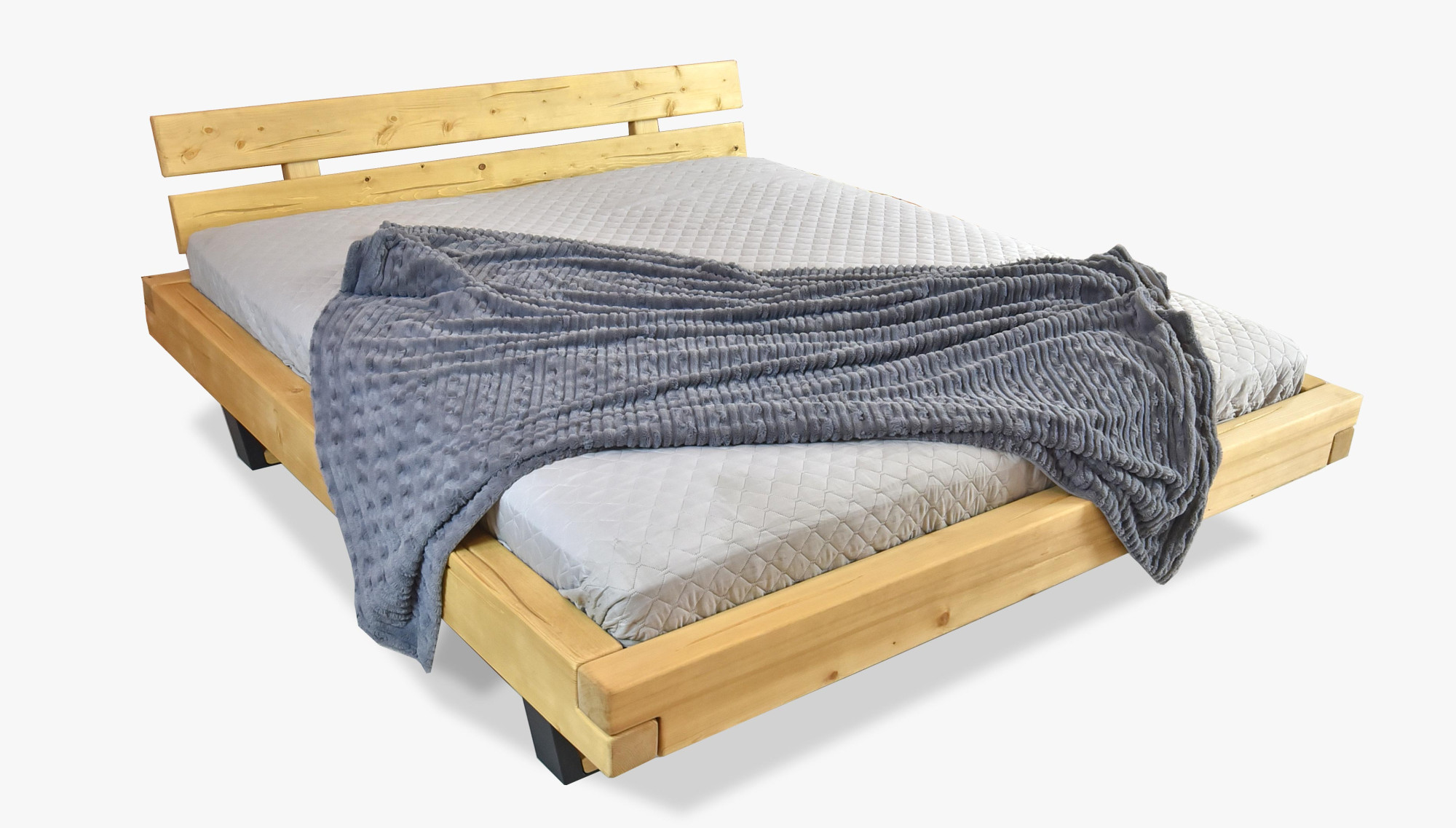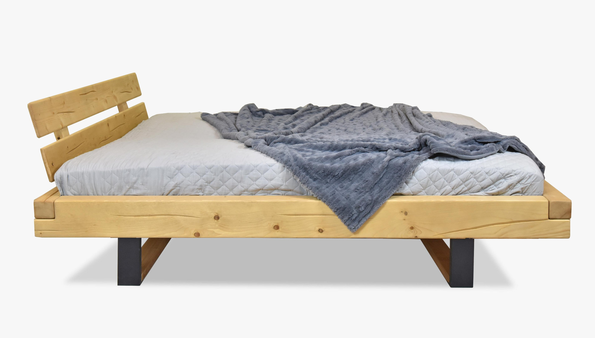 Az ágy gyártásához fenyőfát használnak, ahol minden darab egyedi, a fába mesterséges repedéseket hoznak létre, amelyek autentikus hatást keltenek. Az ágy összeszerelt állapotban, nagyon egyszerű felszereléssel kerül szállításra. Az ágy belső mérete 160 x 200, 180 x 200 cm, vagy 200 x 200, és egyetlen gyártóként masszív fa rácsot adunk ingyen az ágyhoz. Az ágy teljes külső hossza 218 cm. Az ágykeretbe bármilyen lamellás rács behelyezhető. Az ágy természetes olajjal kezelve van.