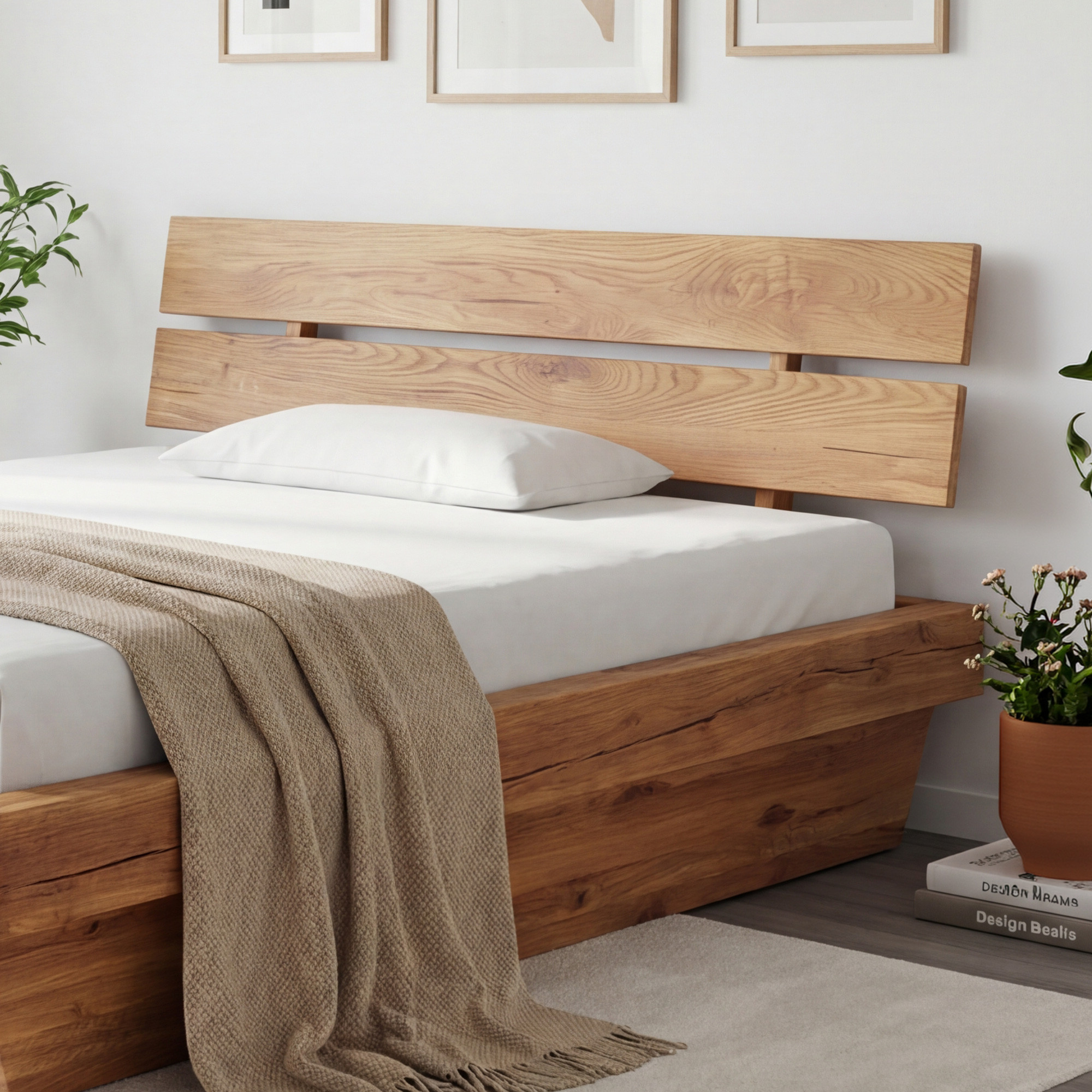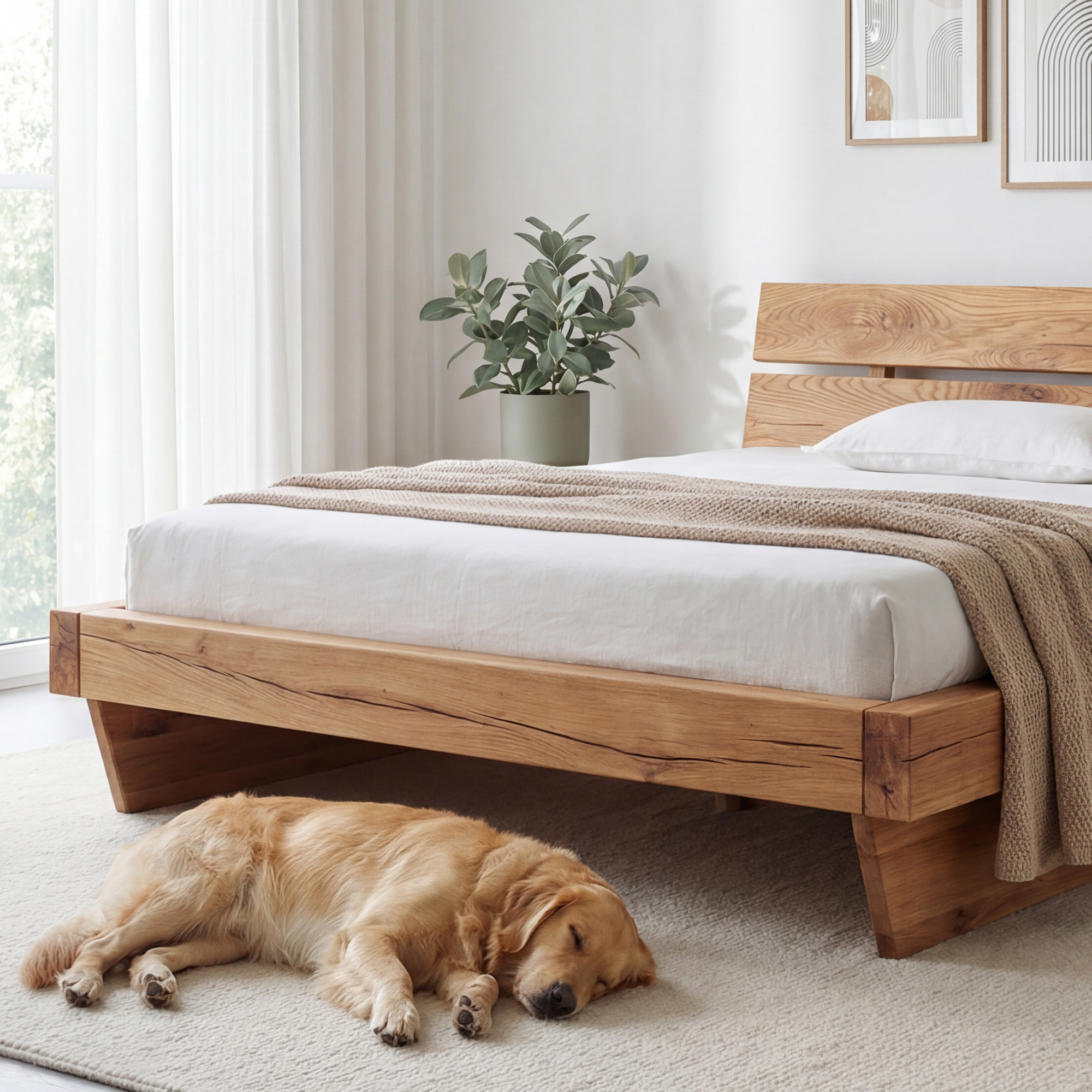 - Masszív tölgy gerenda 16 x 9 cm az ágy teherhordó alapjaként.