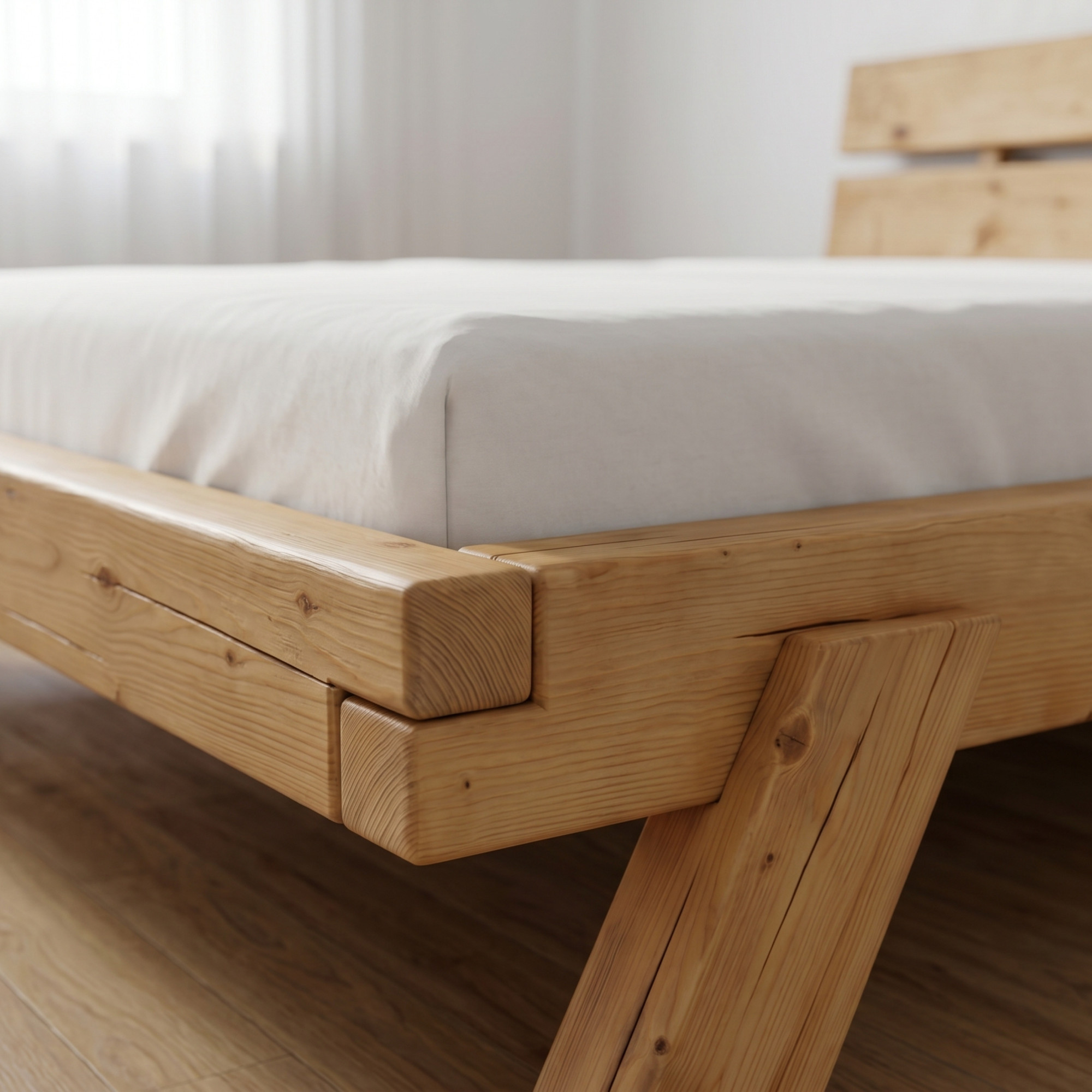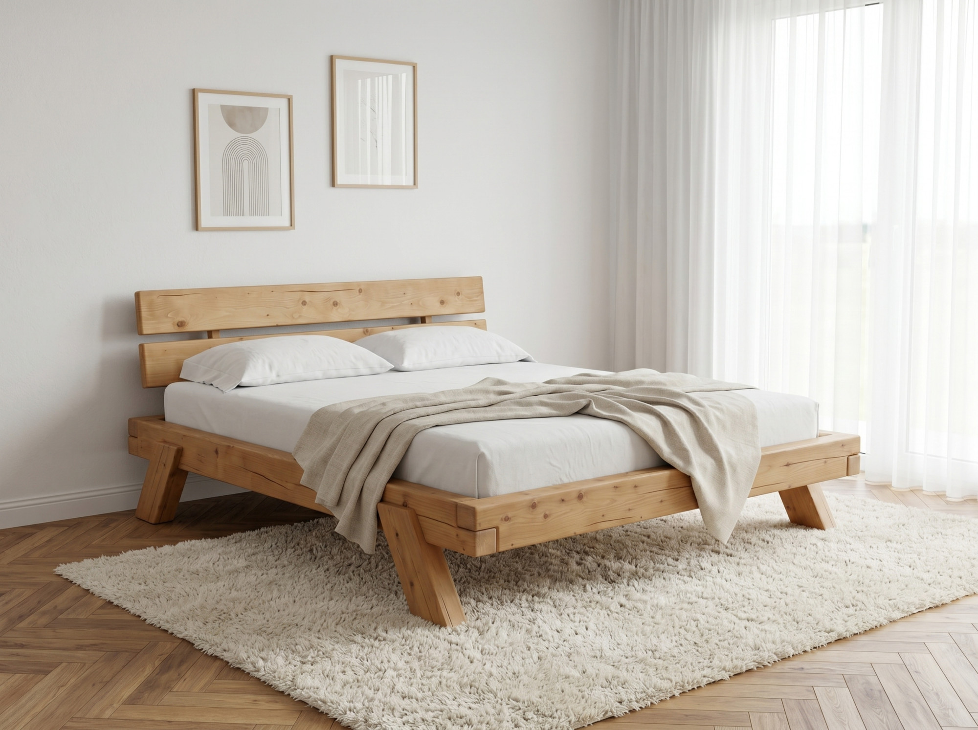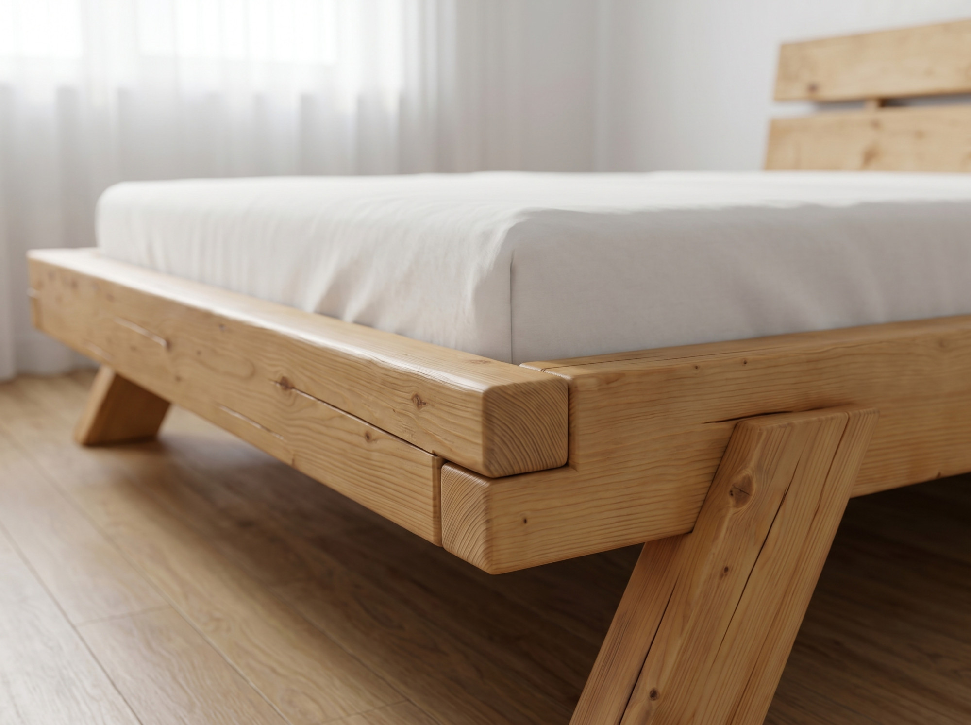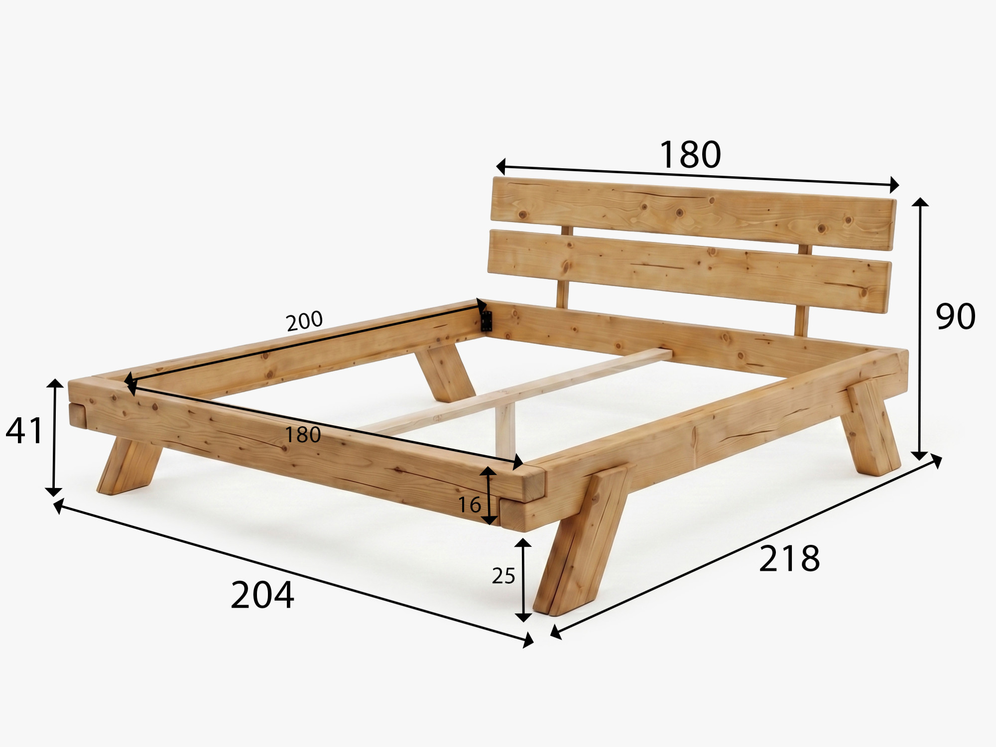 Tömör lucfenyő ágy 180 × 200 cm – robusztus faágy