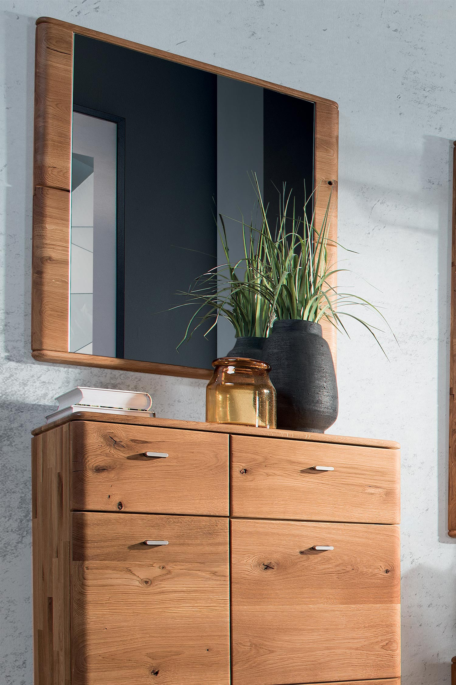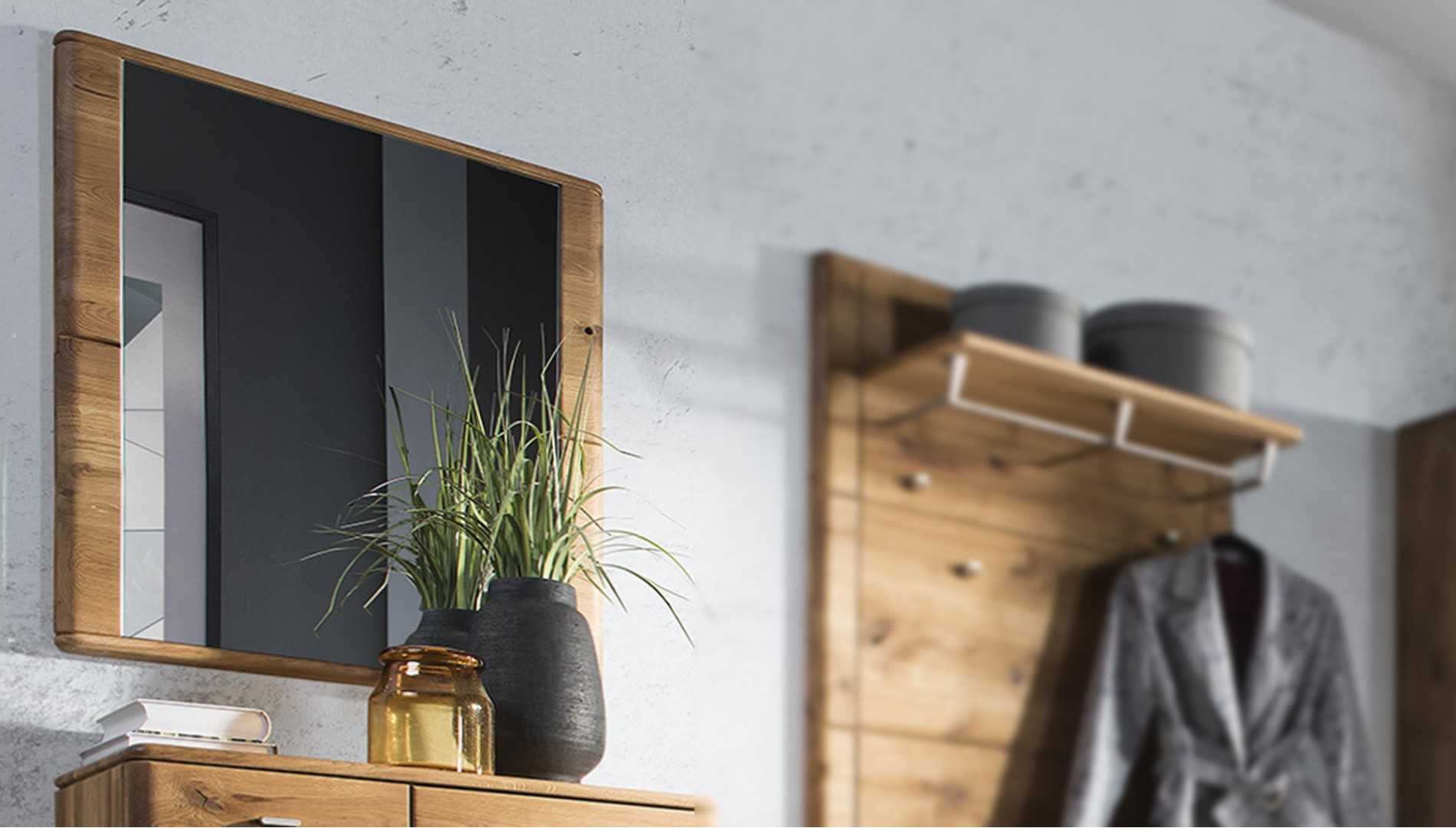 Tölgyfa keretes falra szerelhető tükör, természetes olajszín, 79x70 cm