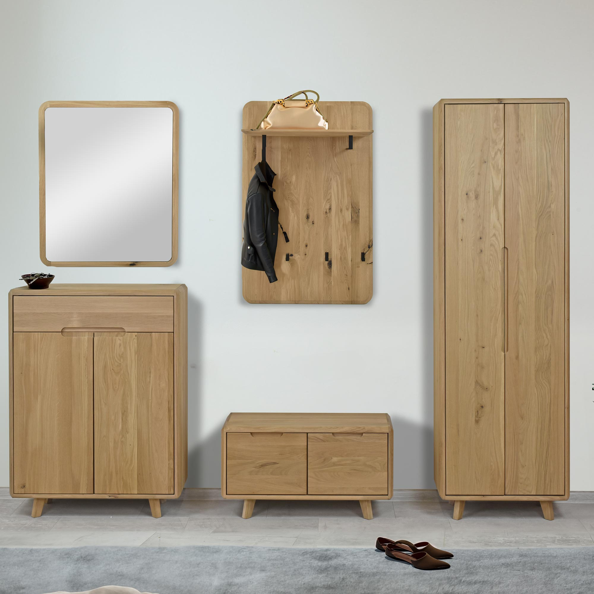 Ez a stílusos tölgytükör a Bratislava kollekcióból tökéletes kiegészítő minden előszobához vagy folyosóhoz. Skandináv dizájnban készült, fehér tölgy árnyalatban, olaj-viasz felülettel befejezve; a tükör nemcsak funkciót ad otthonának, hanem a modern elegancia érintését is. A tiszta vonalak és a minimalista megjelenés a skandináv stílus jellegzetességei, amely népszerű, mert könnyen illeszkedik különböző belső koncepciókhoz.