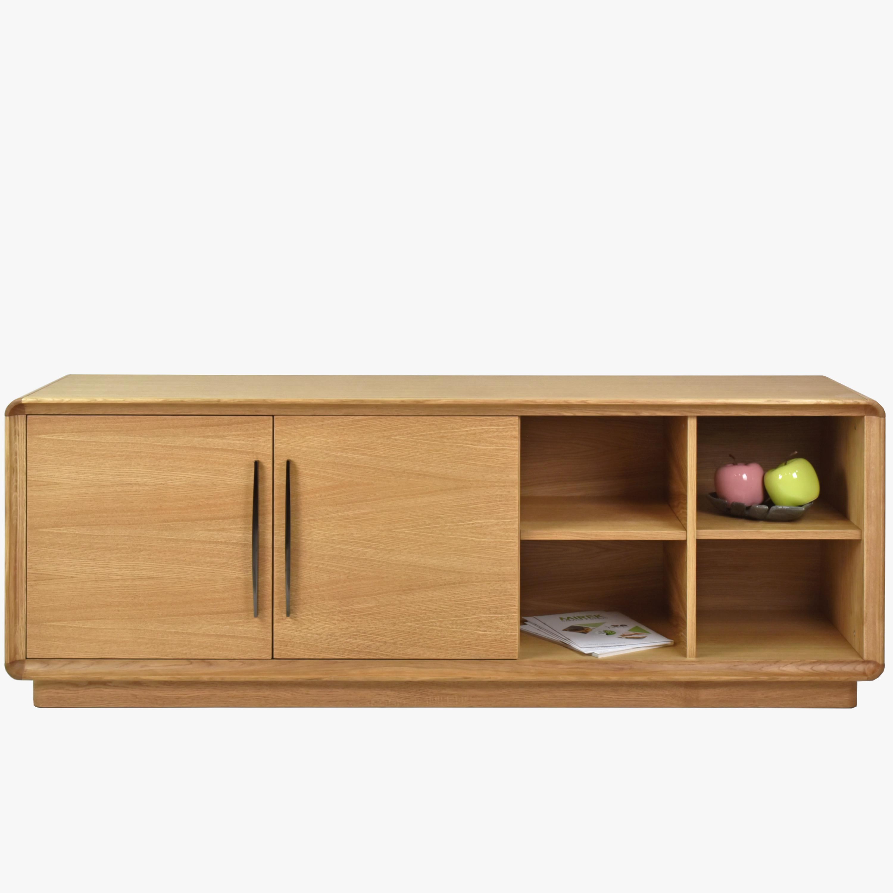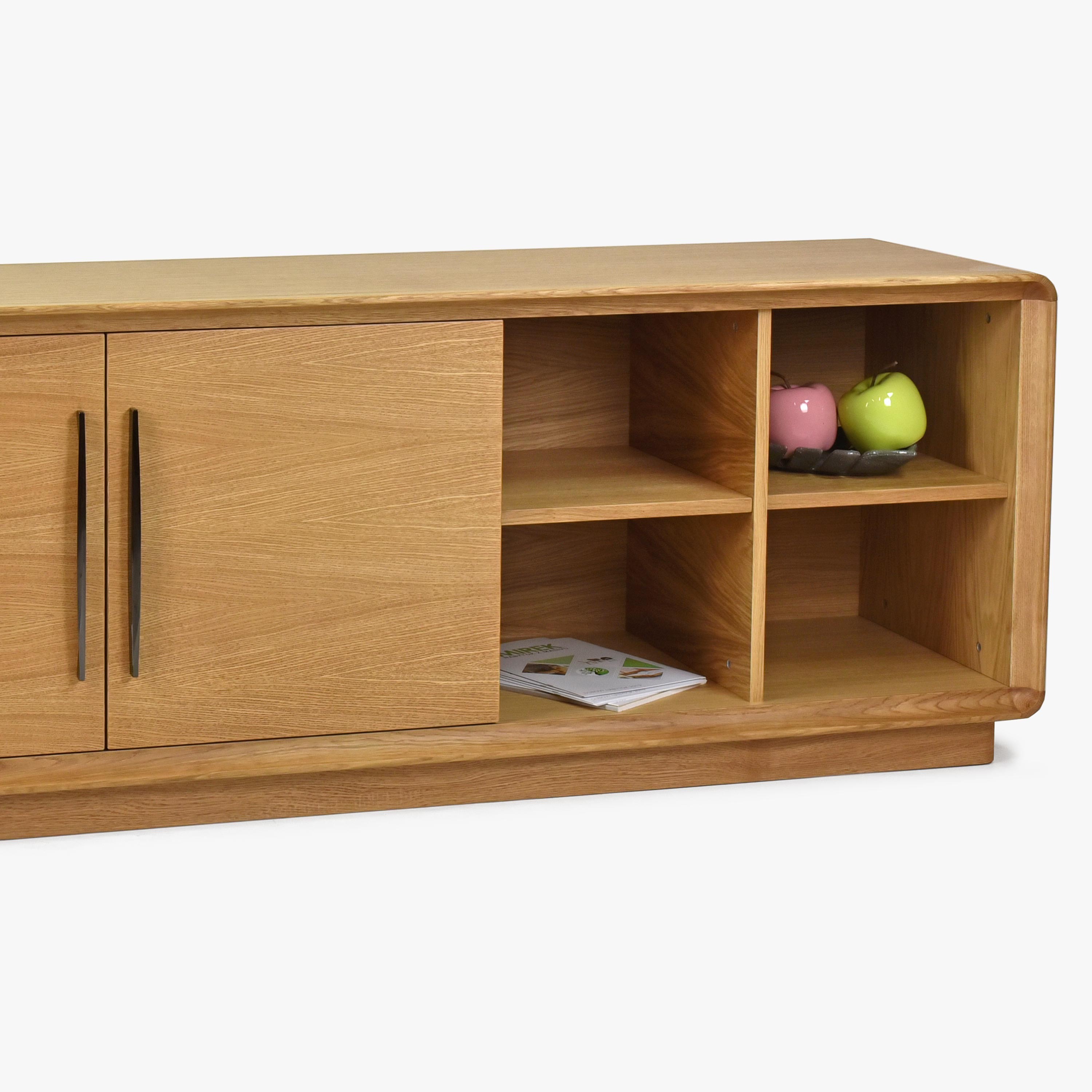 Retro tölgy TV komód, 2 ajtós, 8 tárolódobozos, 185 cm széles