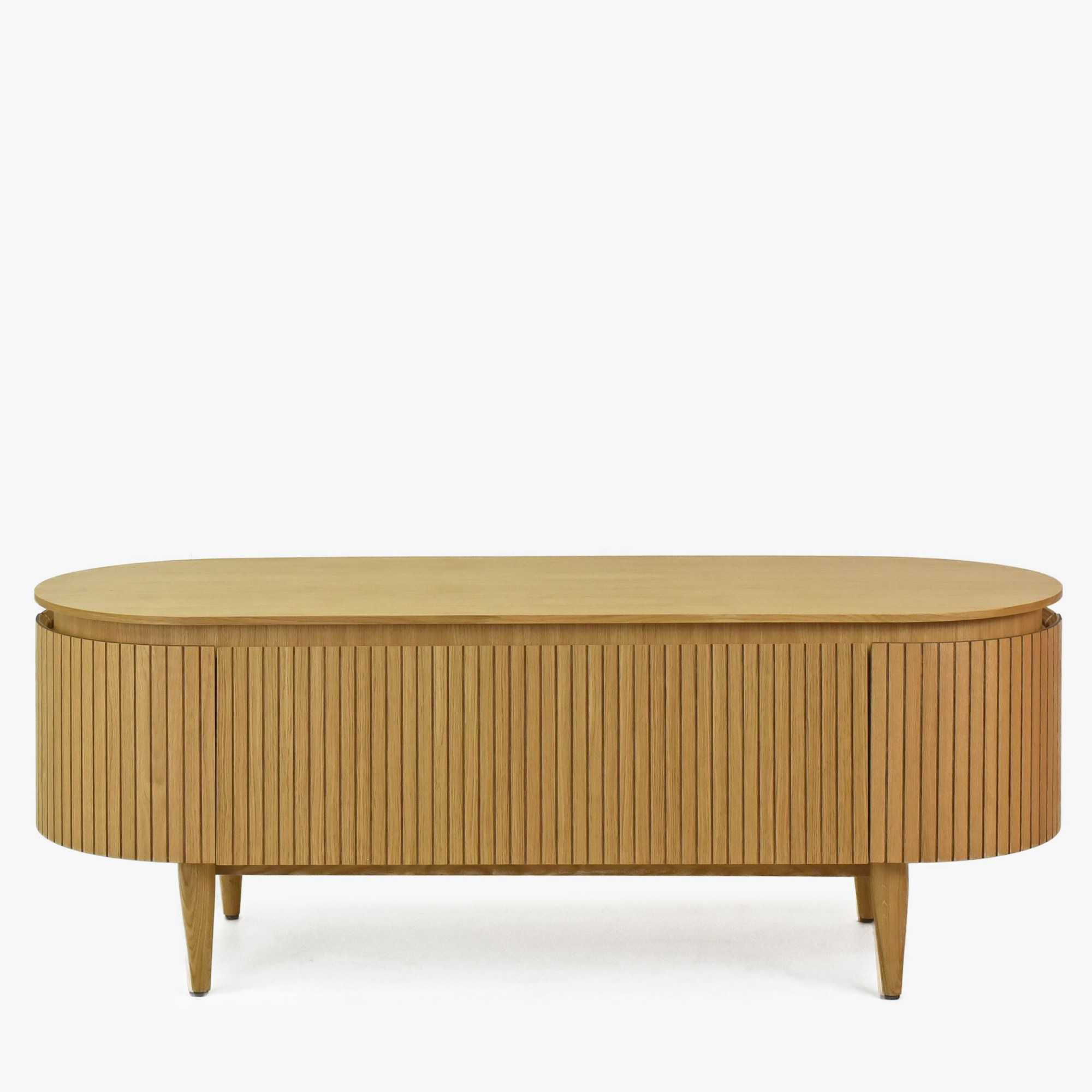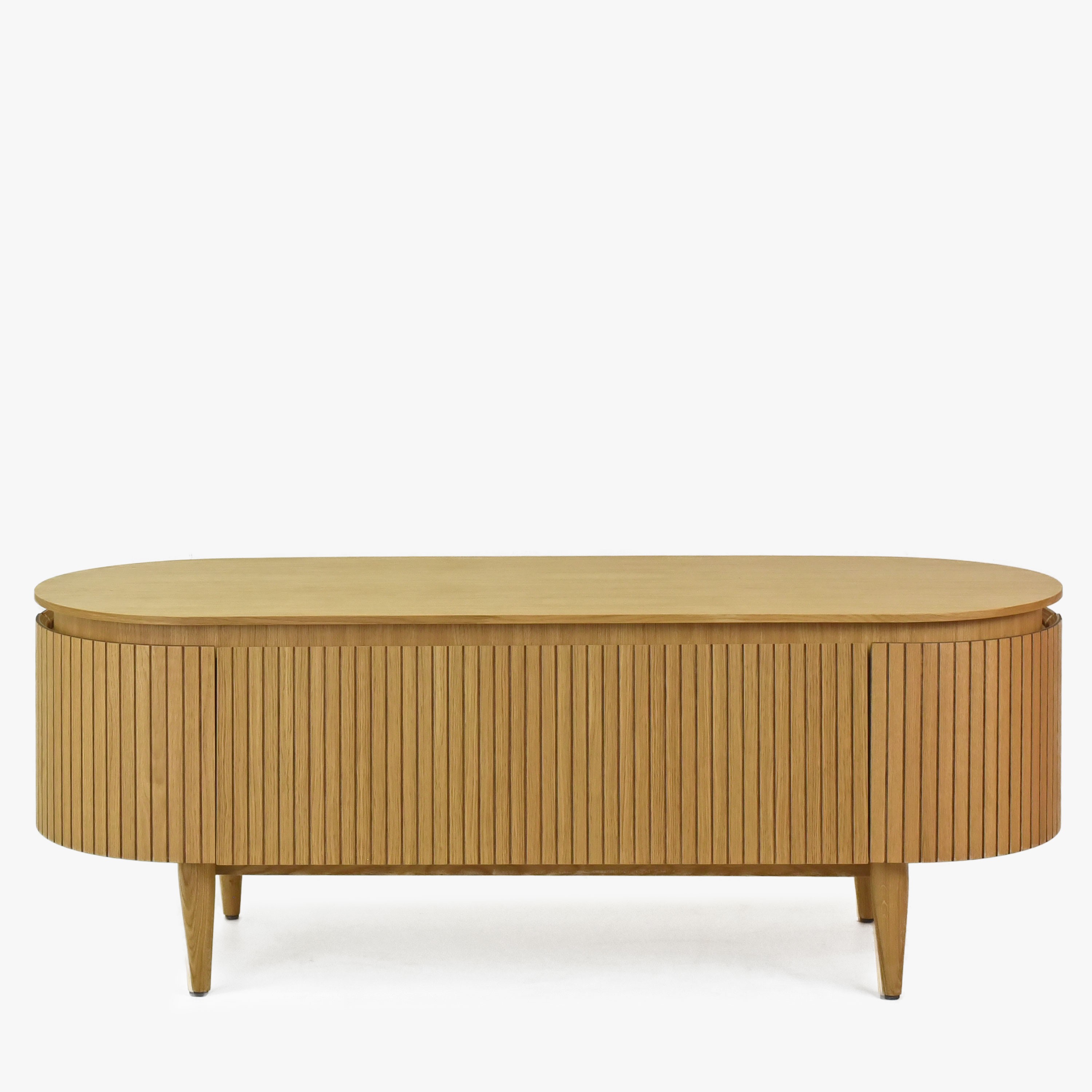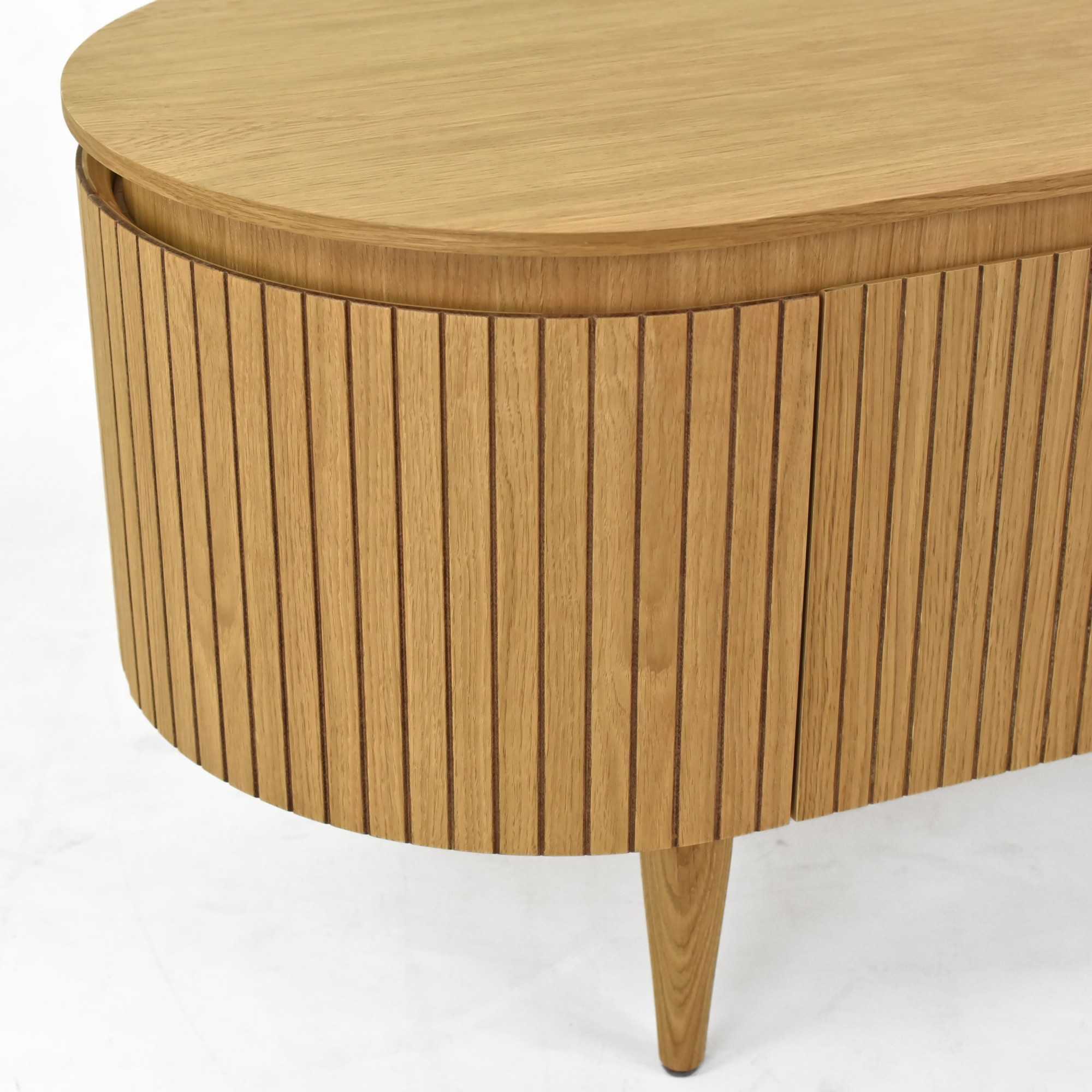 Lekerekített tölgy színű TV komód 140x50x50 cm tárolóval