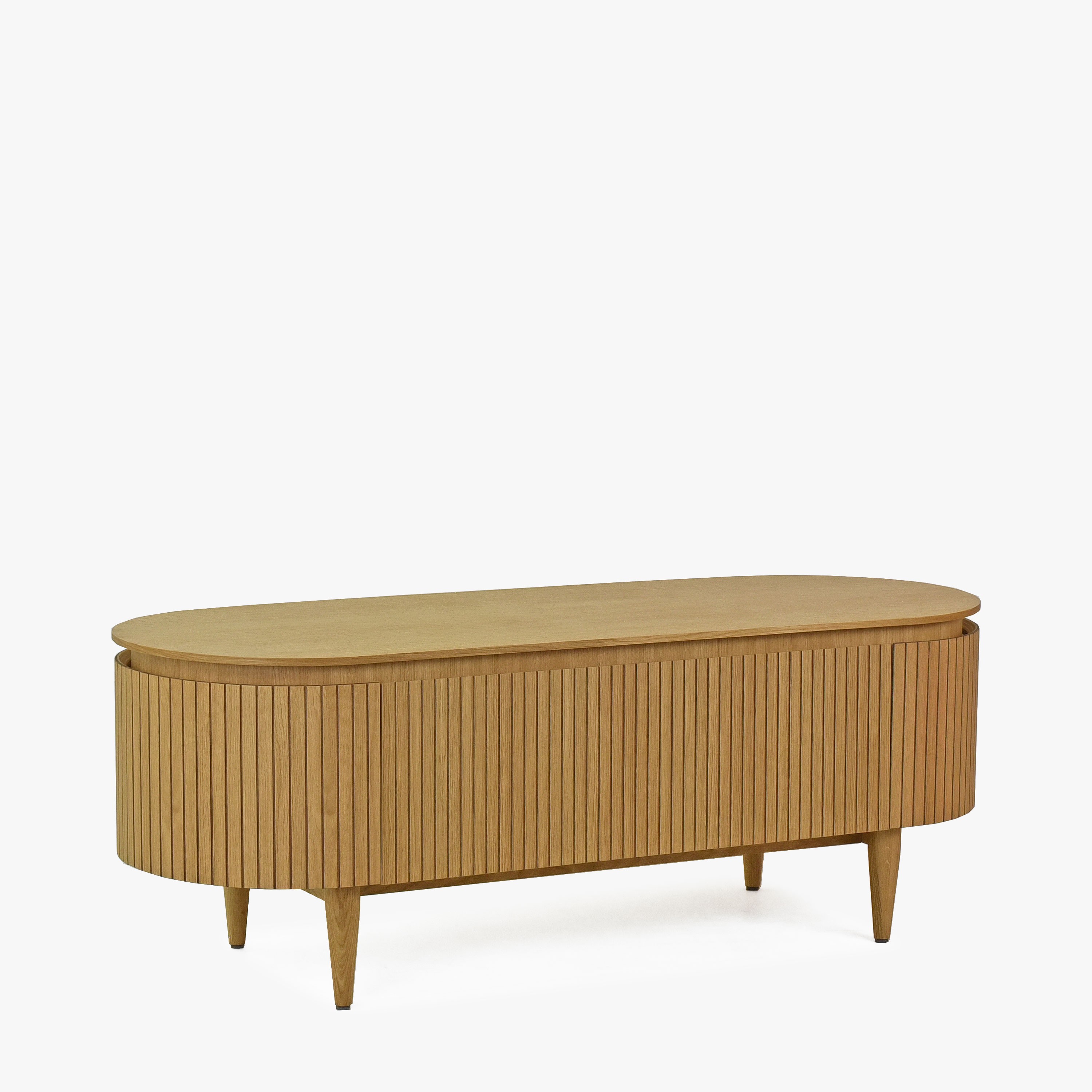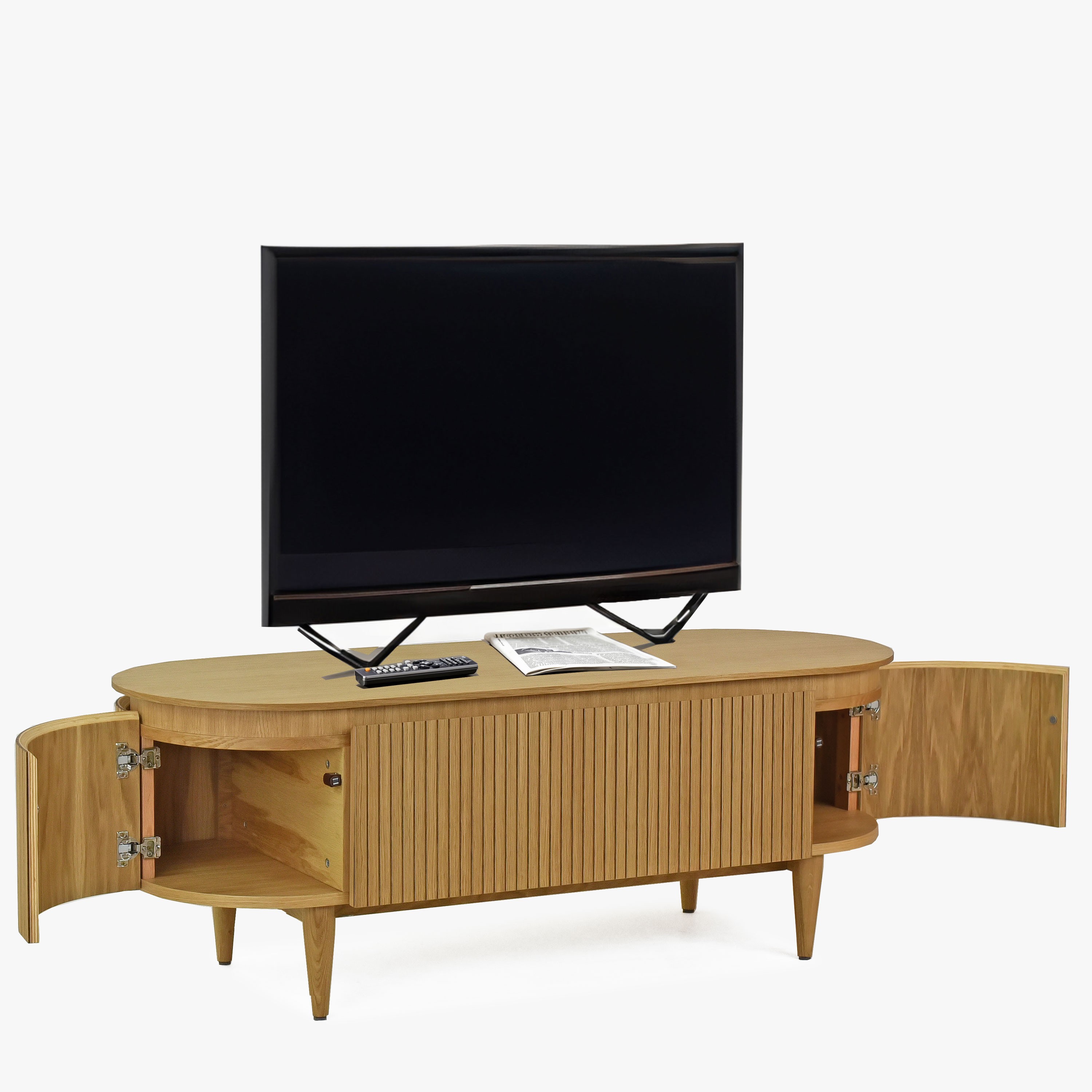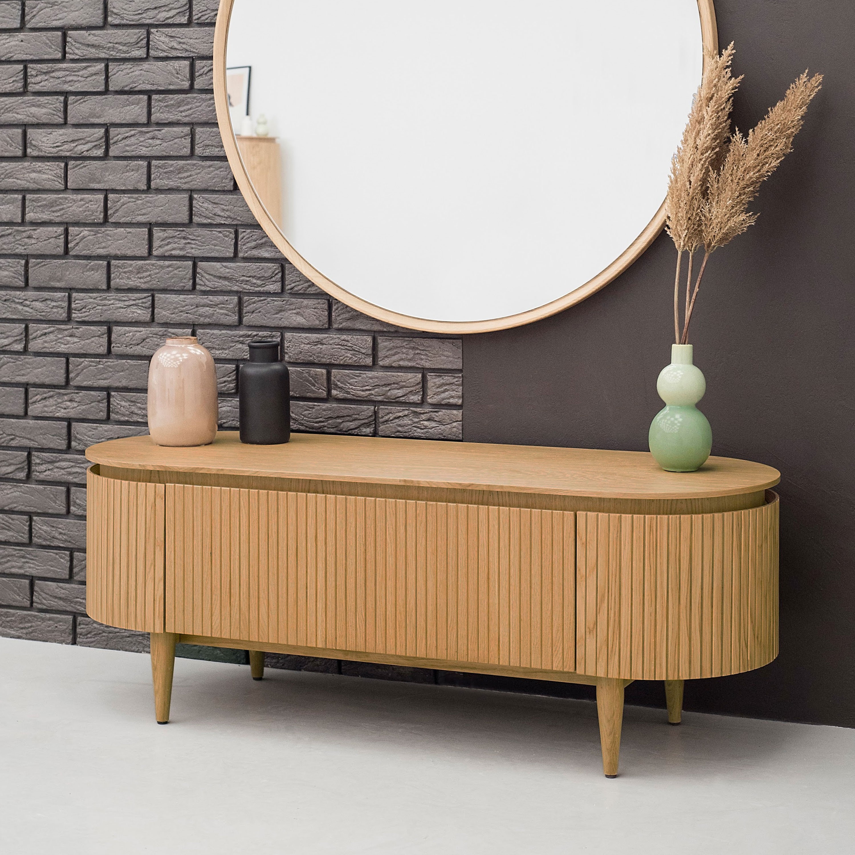 Lekerekített tölgy színű TV komód 140x50x50 cm tárolóval