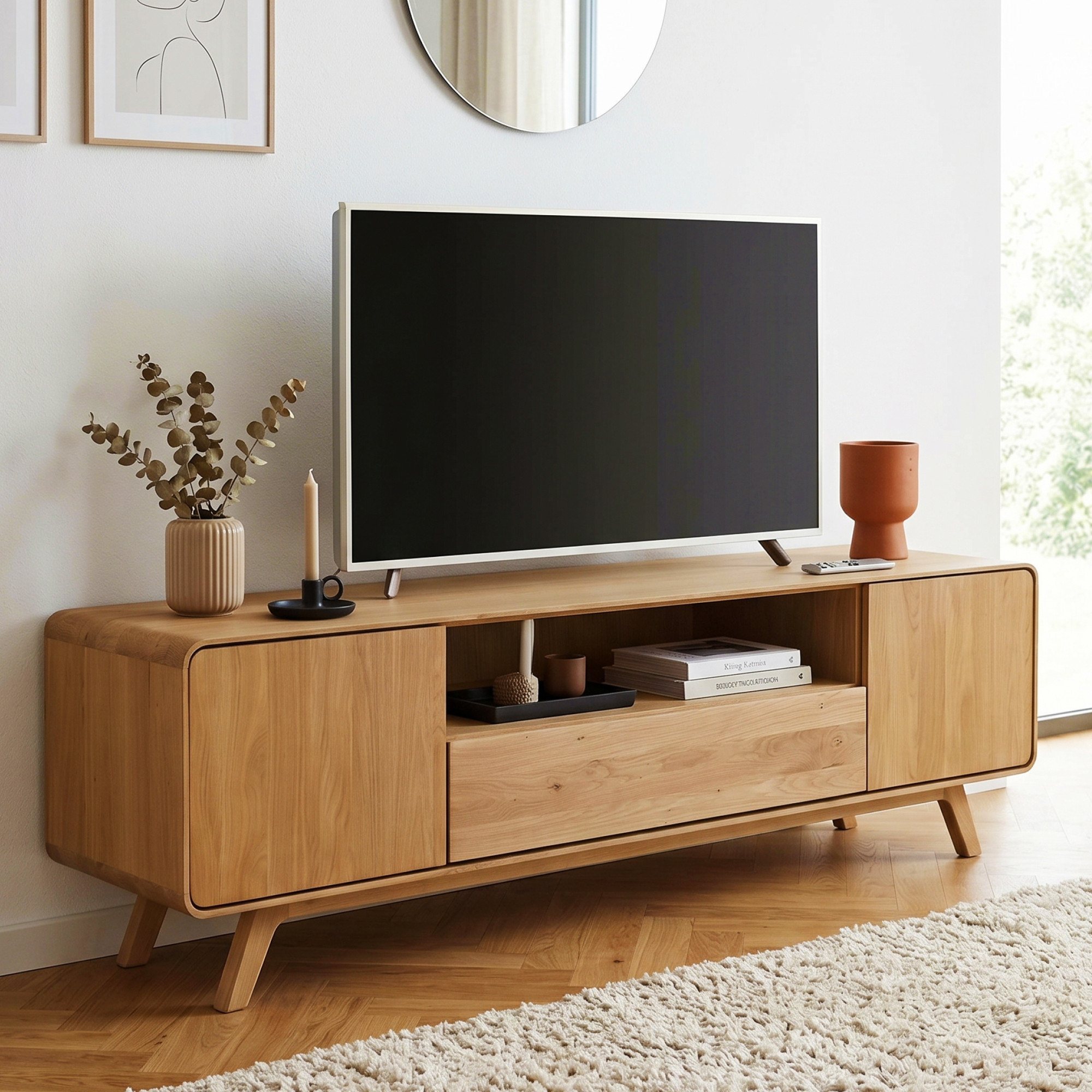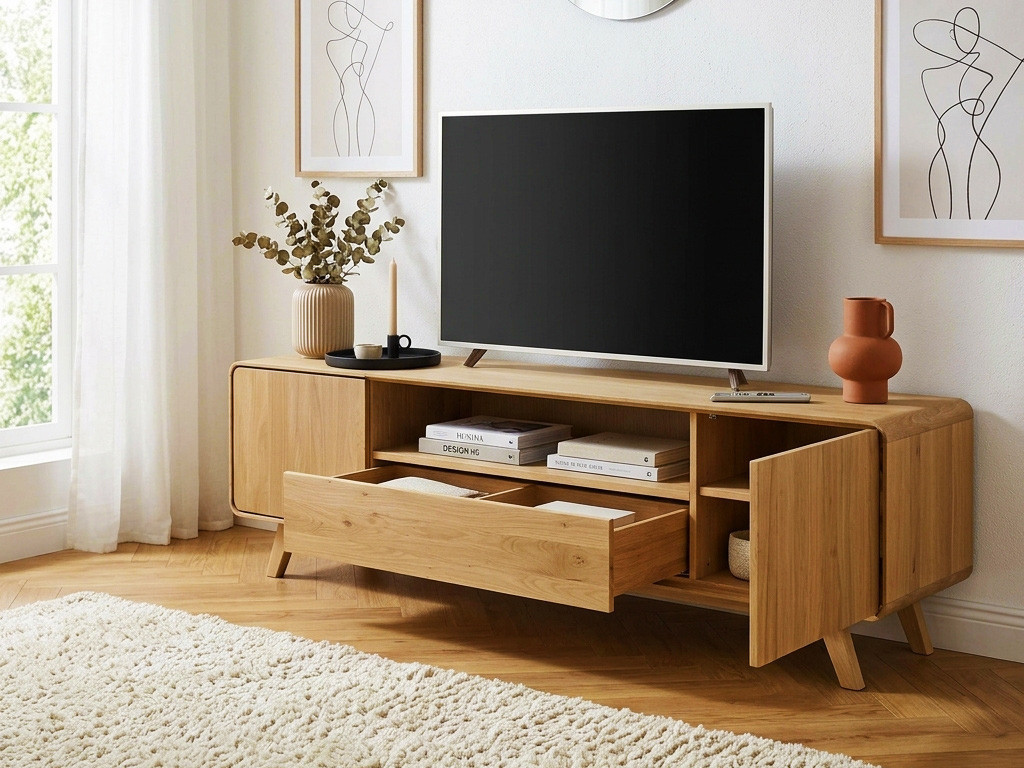 Masszív tölgy TV-komód Avalon natúr tölgy árnyalatban, lábakon
