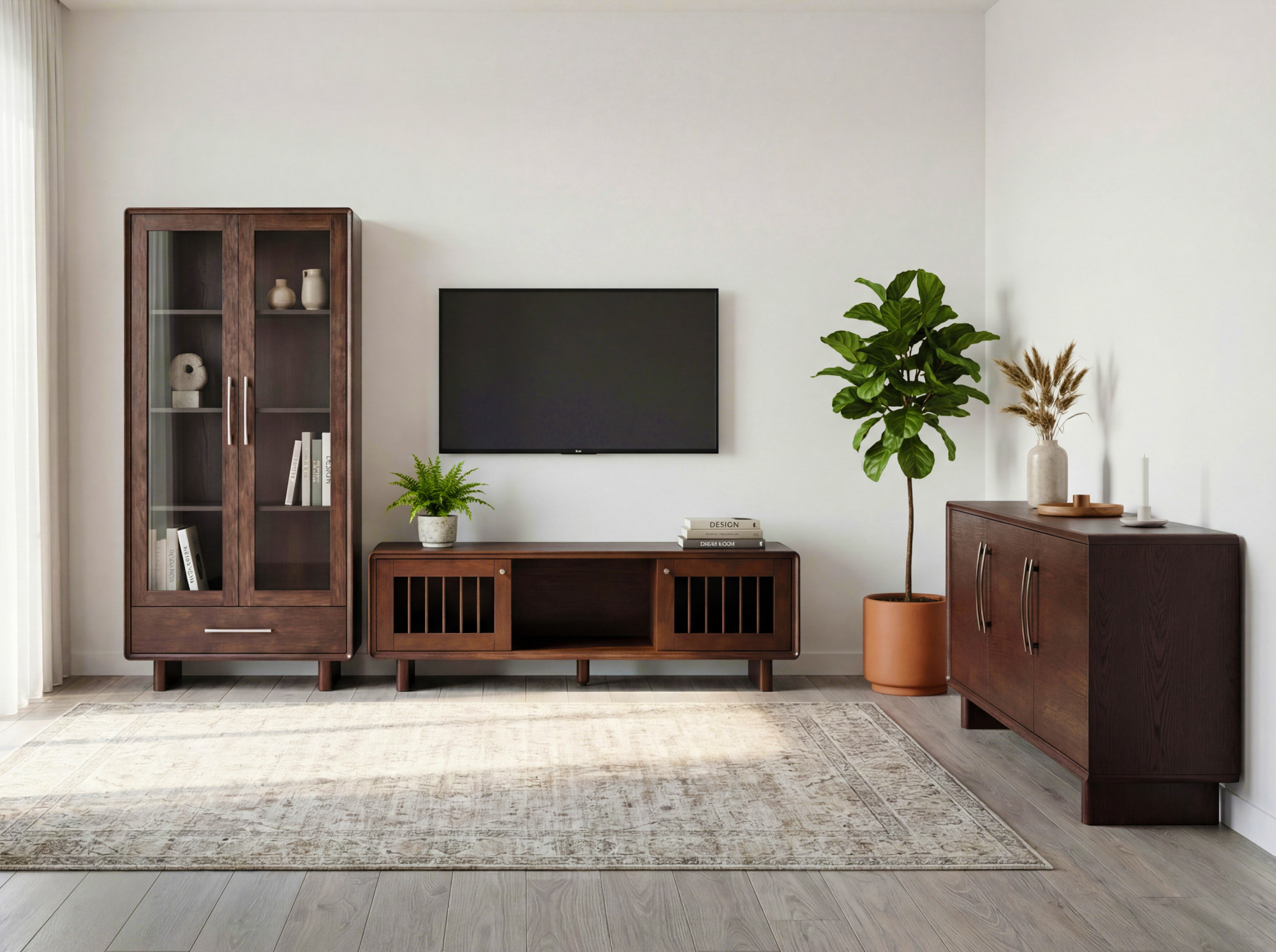 Bemutatjuk Önnek a Koper designos TV-állványt tolóajtókkal, amely a modern formatervezést a praktikus funkcionalitással tökéletesen ötvözi. Ez a tágas TV-állvány meleg dió színben elegáns megoldást kínál nappalijába. Két oldalsó tárolórészét lamellás betétes tolóajtók fedik, melyek különleges karaktert kölcsönöznek az állványnak, miközben könnyű hozzáférést biztosítanak a tárolt tárgyakhoz. A nyitott középső rész ideális set-top box, játékkonzol vagy bármilyen más elektronikai eszköz elhelyezésére. A teljes bútor prémium tölgy furnérból készült, masszív tölgyfa élekkel, ami kiemelkedő szilárdságot és hosszú élettartamot garantál.