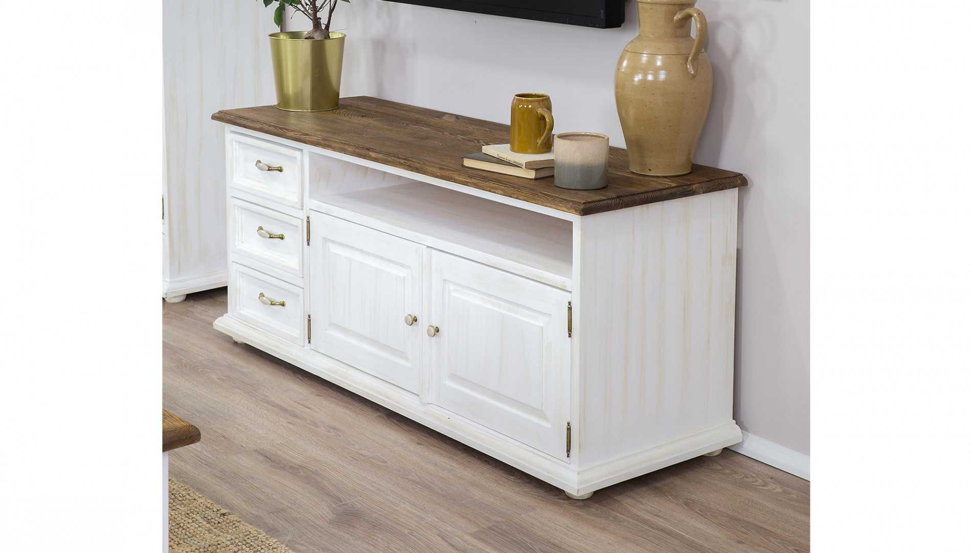 Tömörfa provence-i stílusú TV komód két fiókkal és ajtóval