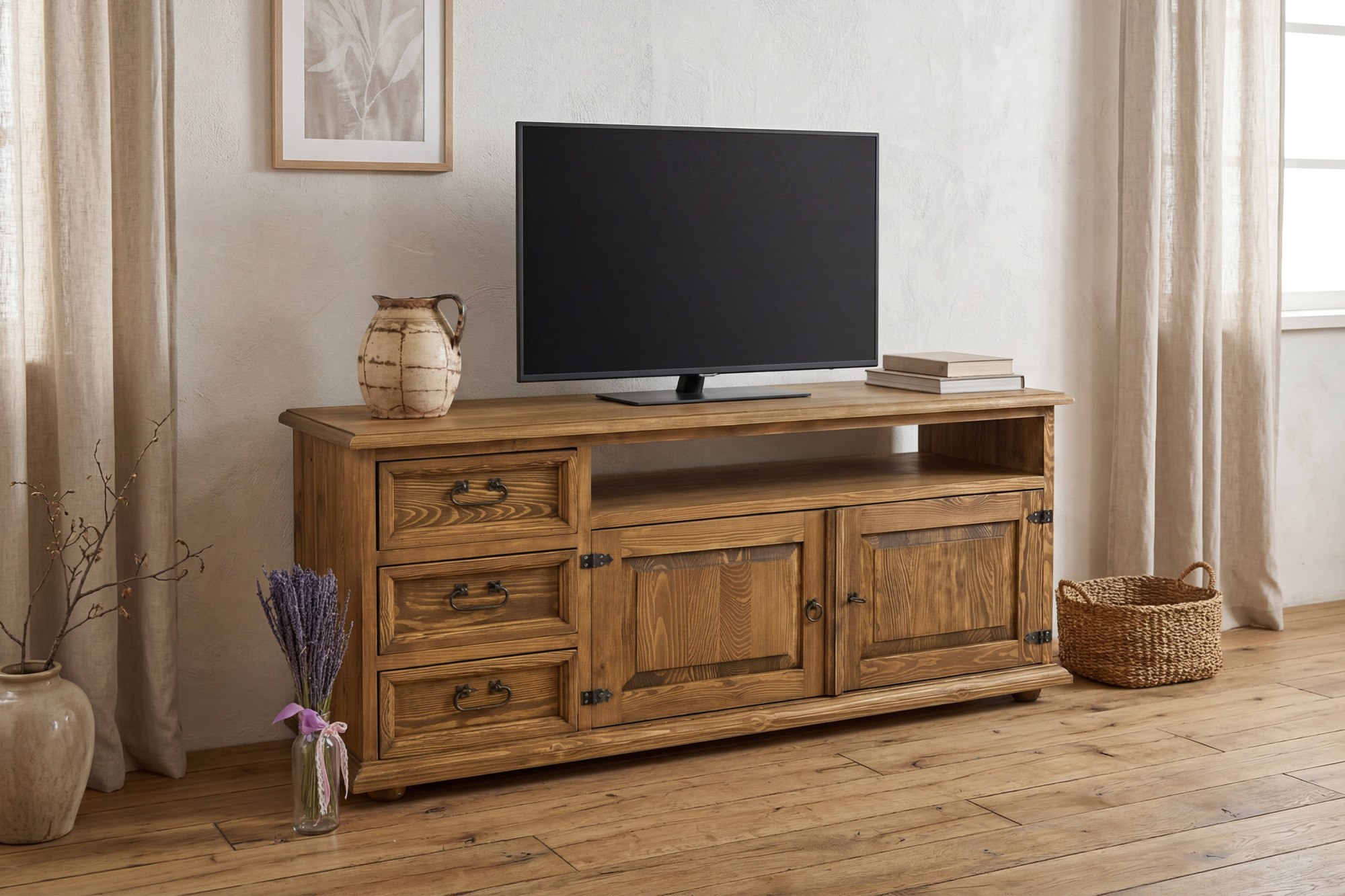 - Felhasználás: TV-komód nappaliba, nyaralóba vagy stílusos vidéki enteriőrbe