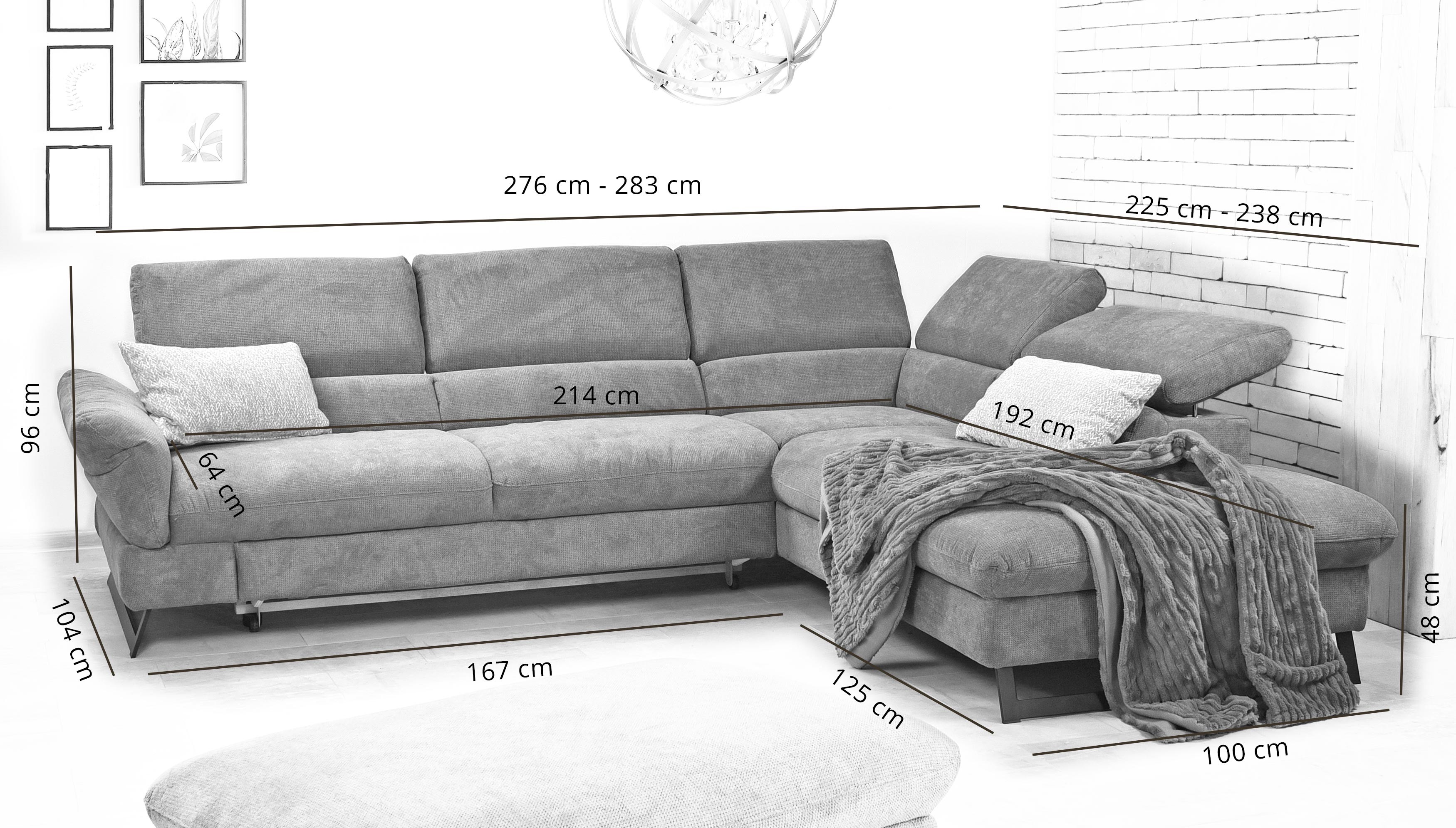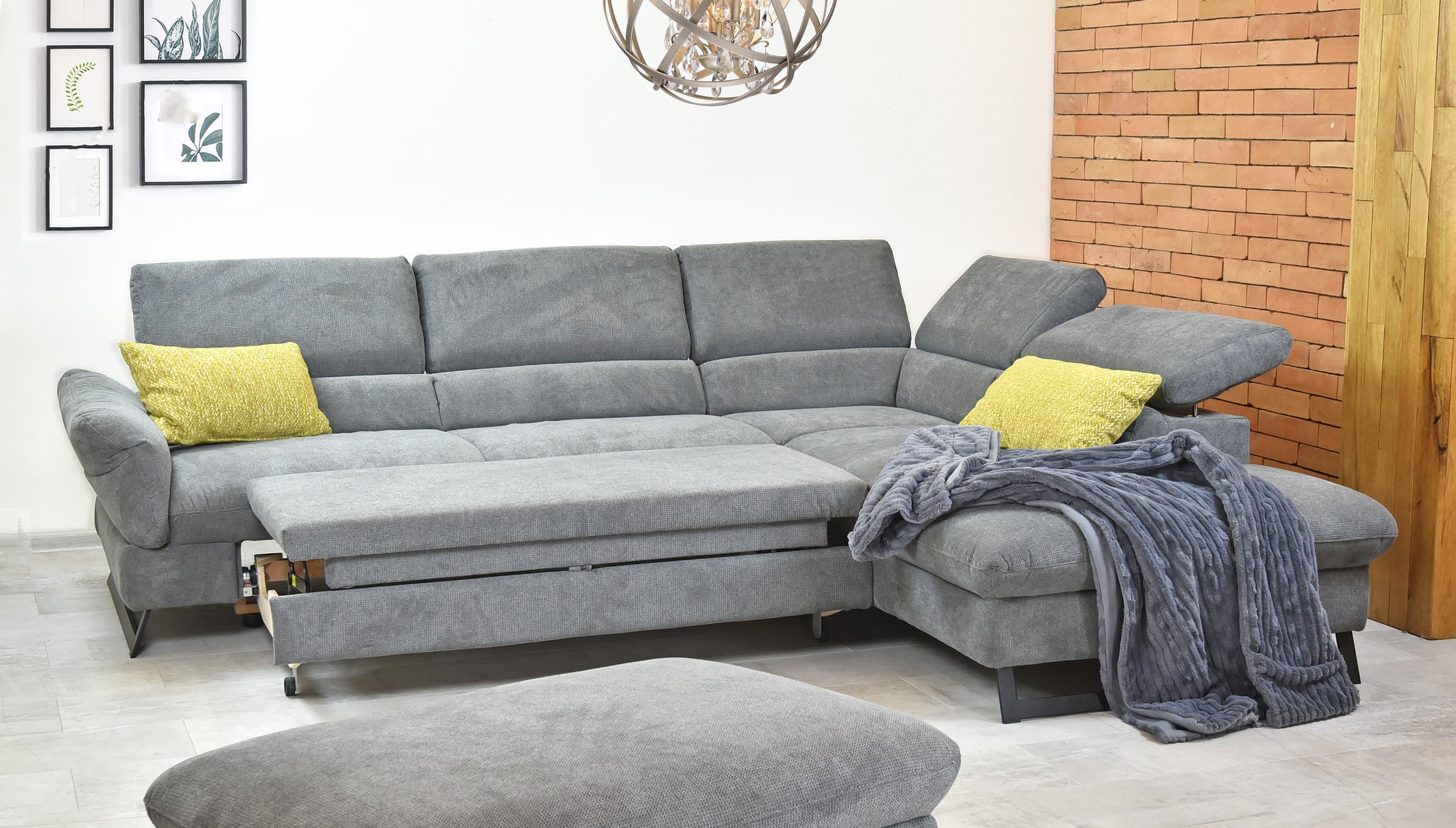 Ágyazható sarokkanapé, szürke lábakkal - haiti