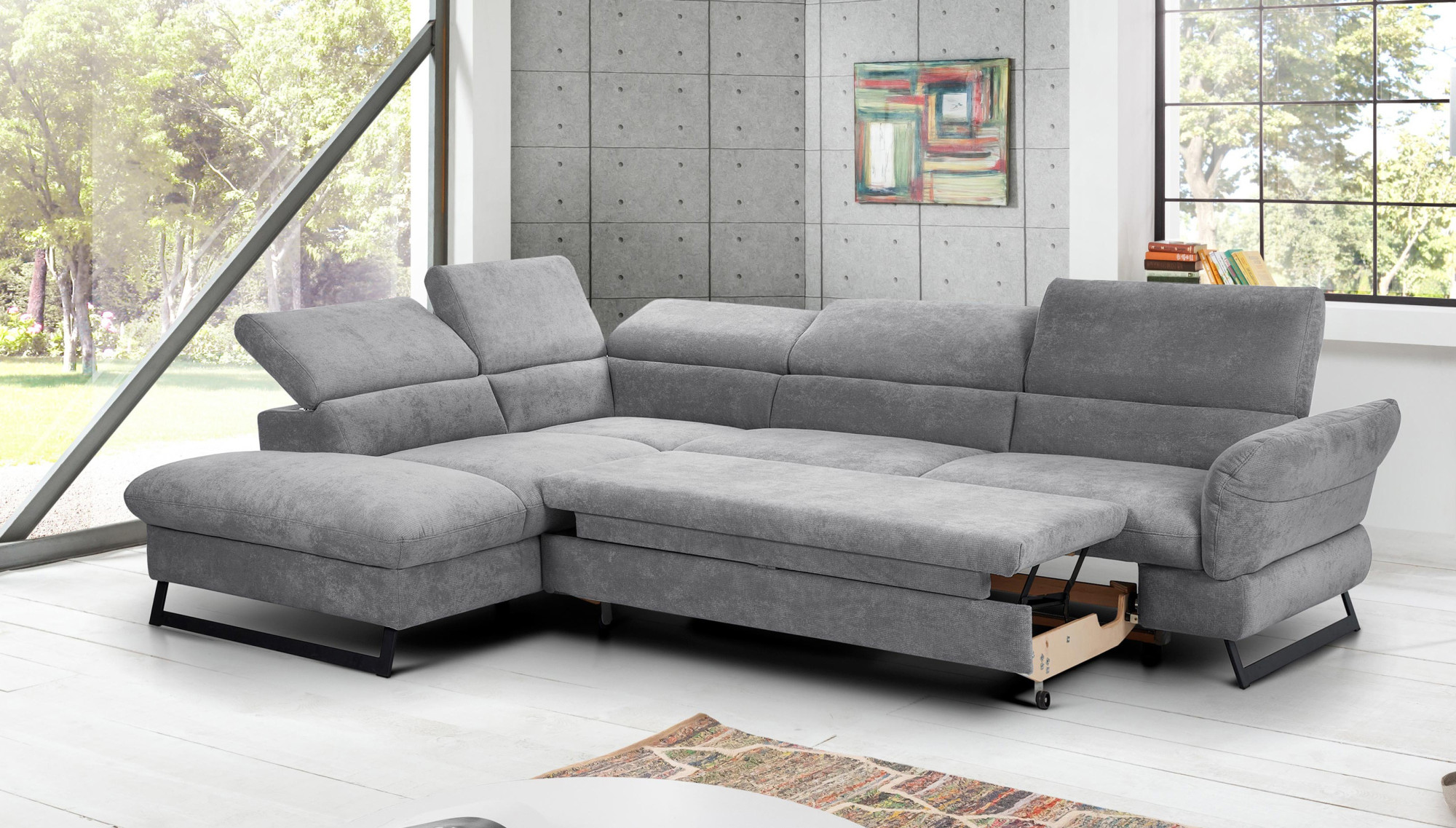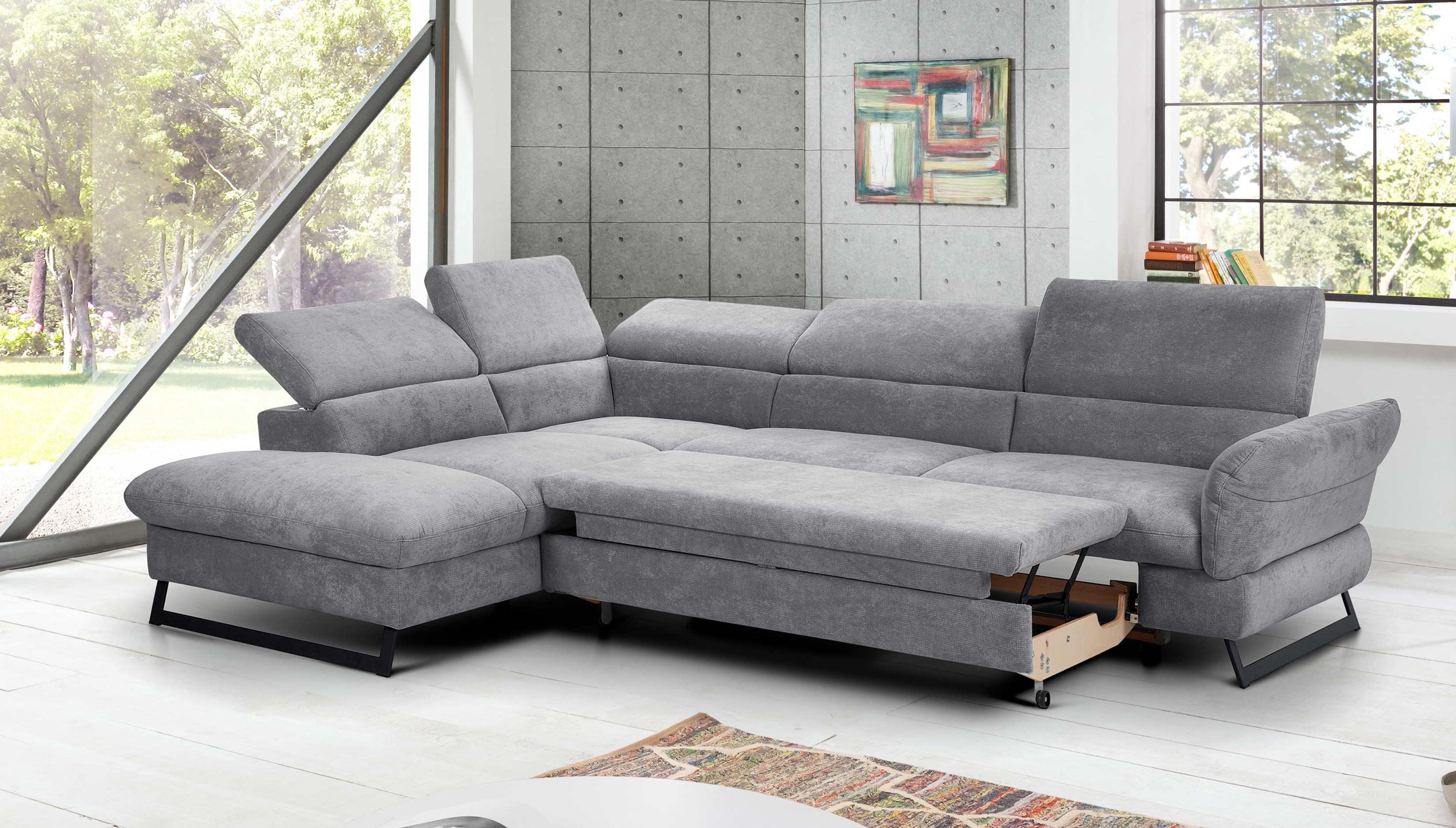 Sarokkanapé kihúzható, szürke lábakon - haiti