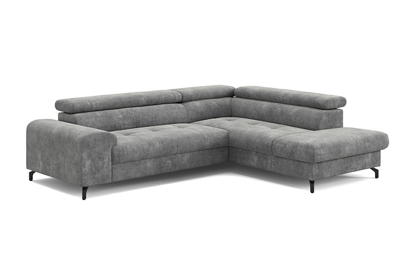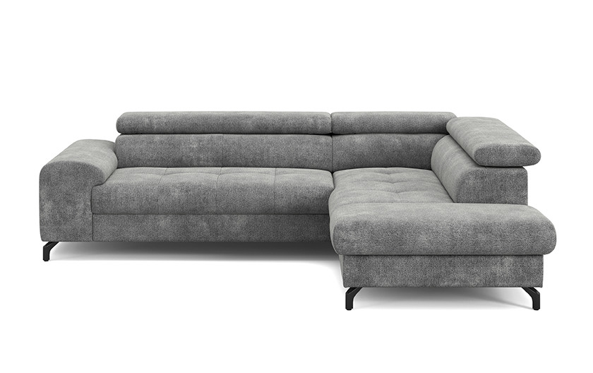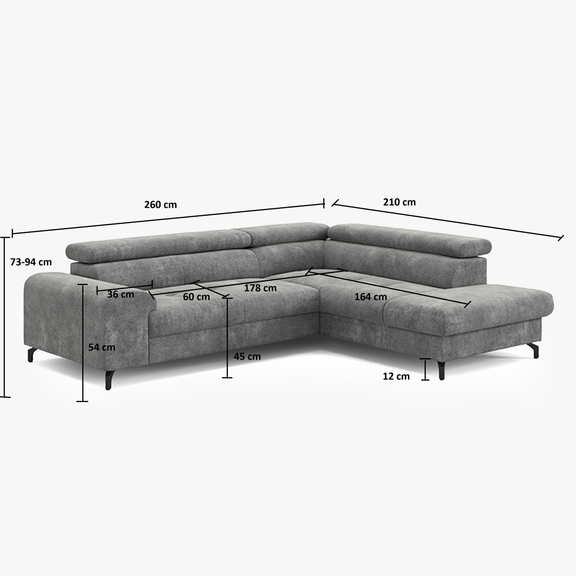 Sarokkanapé Aura otthonába olyan kombinációt hoz, amelyet ritkán látni: a dizájn, a kényelem és a praktikusság találkozását. Első pillantásra a modern megjelenése és az elegáns fém lábak vonzzák a tekintetet, míg a gyakorlatban a funkcionalitása nyűgöz le – könnyen átalakítható kényelmes ággyá, és kihasználhatja a tágas tárolódobozt. A kiváló minőségű PUR hab és a hullámos rugózás hosszú távú kényelmet és stabilitást biztosít. Az állítható fejtámláknak köszönhetően a pihenést pontosan az Ön igényeihez igazíthatja. A kanapé ideális választás azoknak, akik luxus megjelenést, tartósságot és a tér maximális kihasználását keresik.