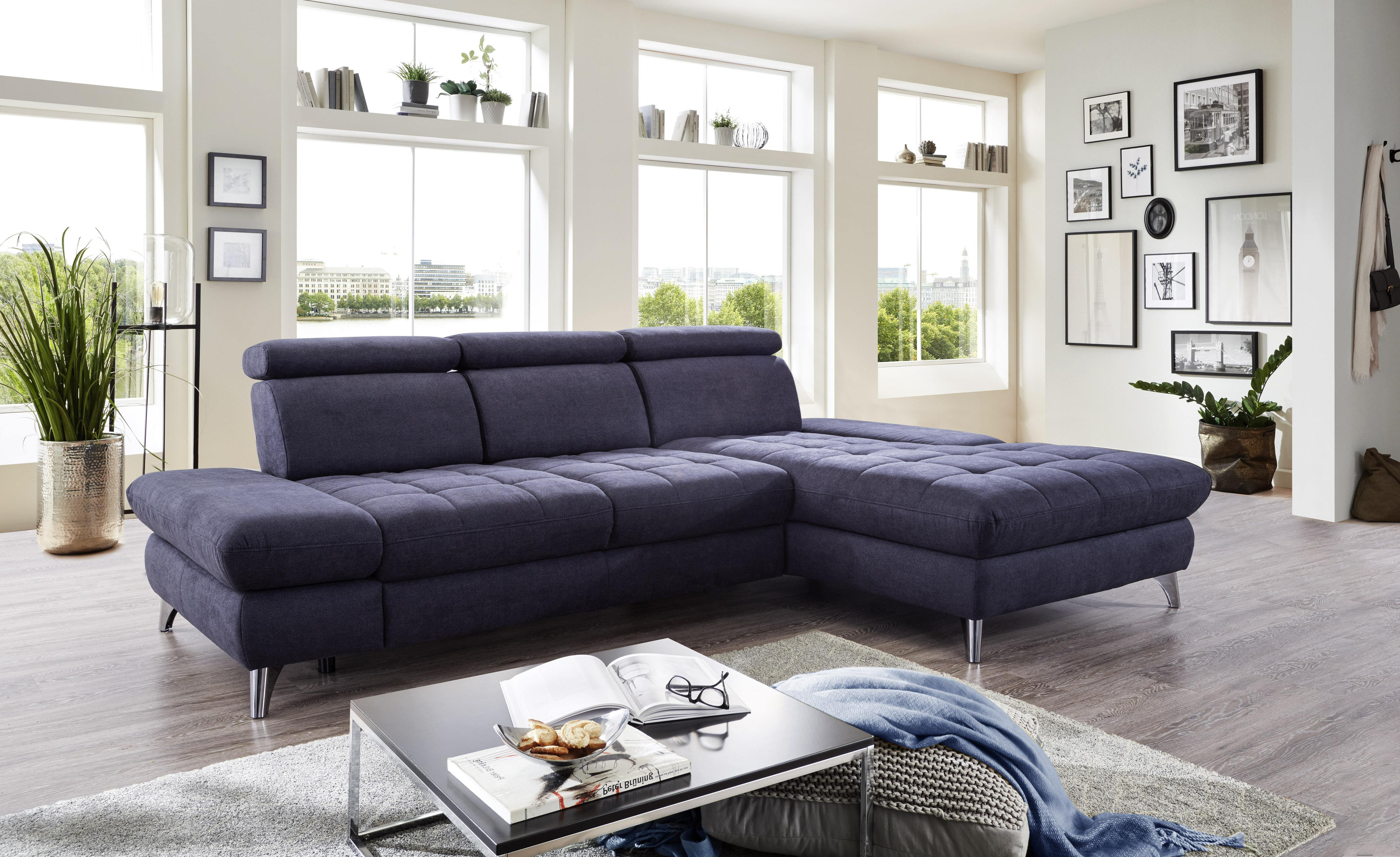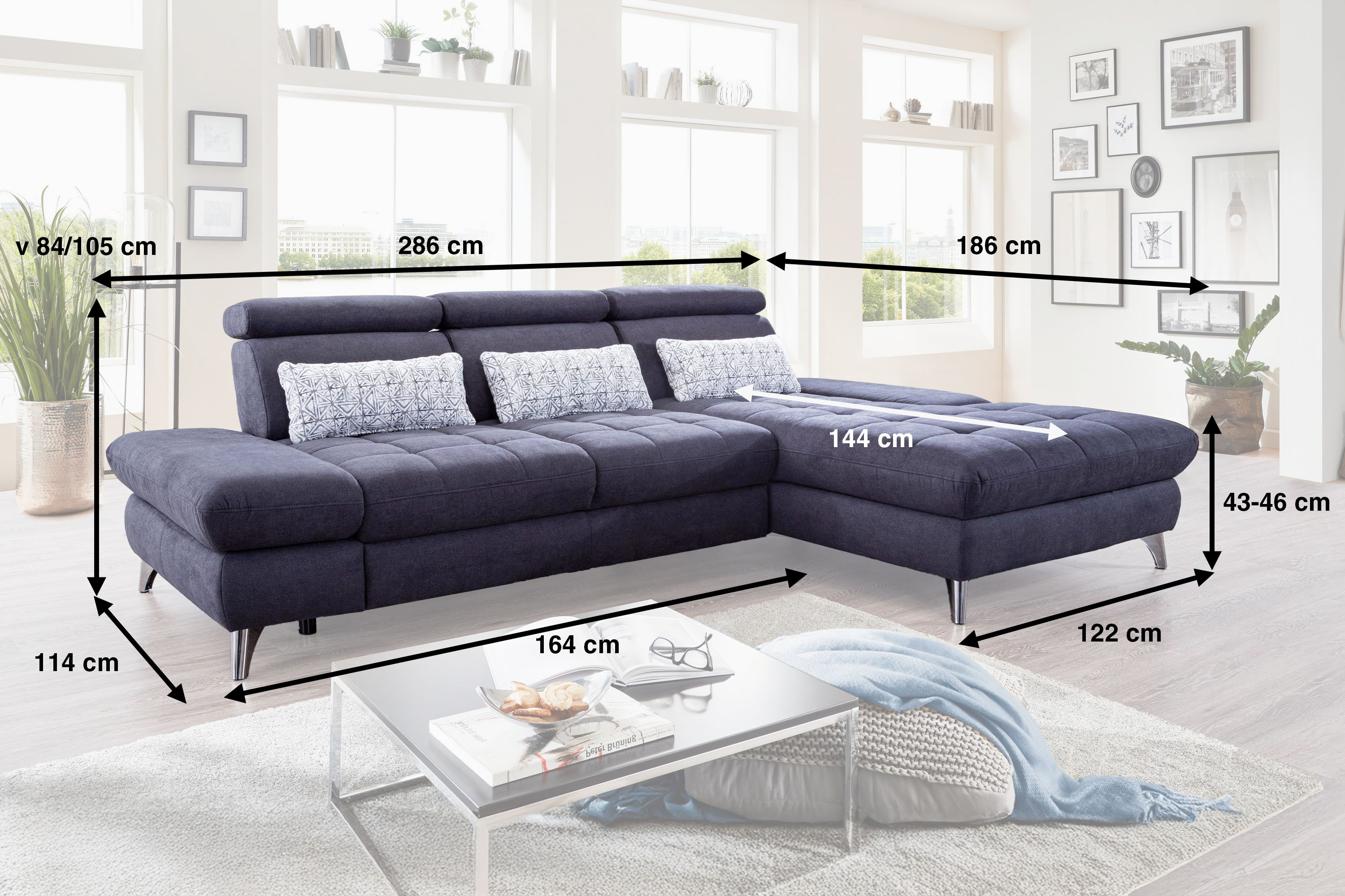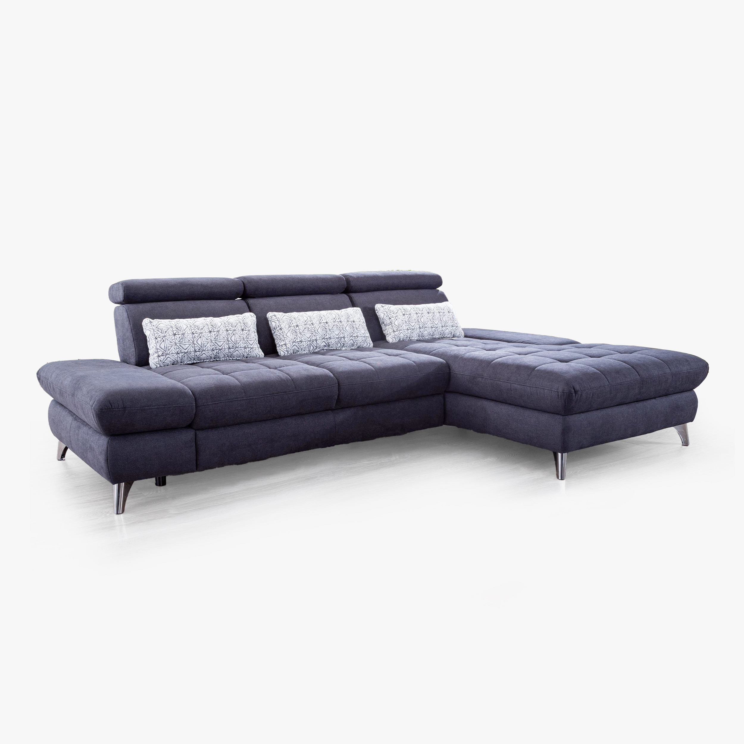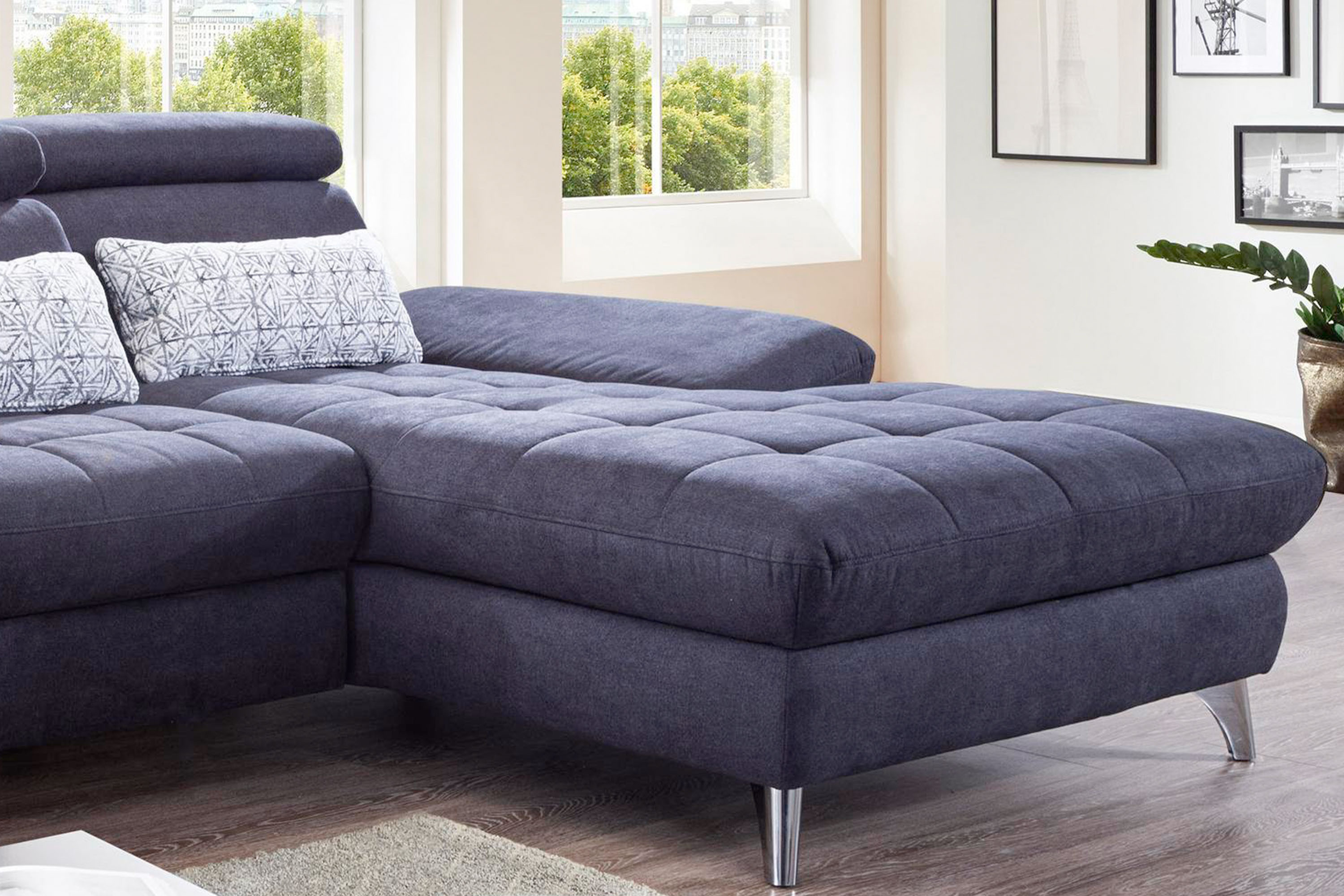 A Carolina L alakú ülőgarnitúra ideális kombinációja a modern designnak, a magas ülési kényelemnek és a kiváló minőségű kidolgozásnak. Ez a modell úgy lett tervezve, hogy megfeleljen a legmagasabb elvárásoknak is, miközben megőrzi a kedvező árat. A képen a kanapé Miranda dunkelgrau szövetből készült, lábai pedig Metall chromofarbig árnyalatúak.
