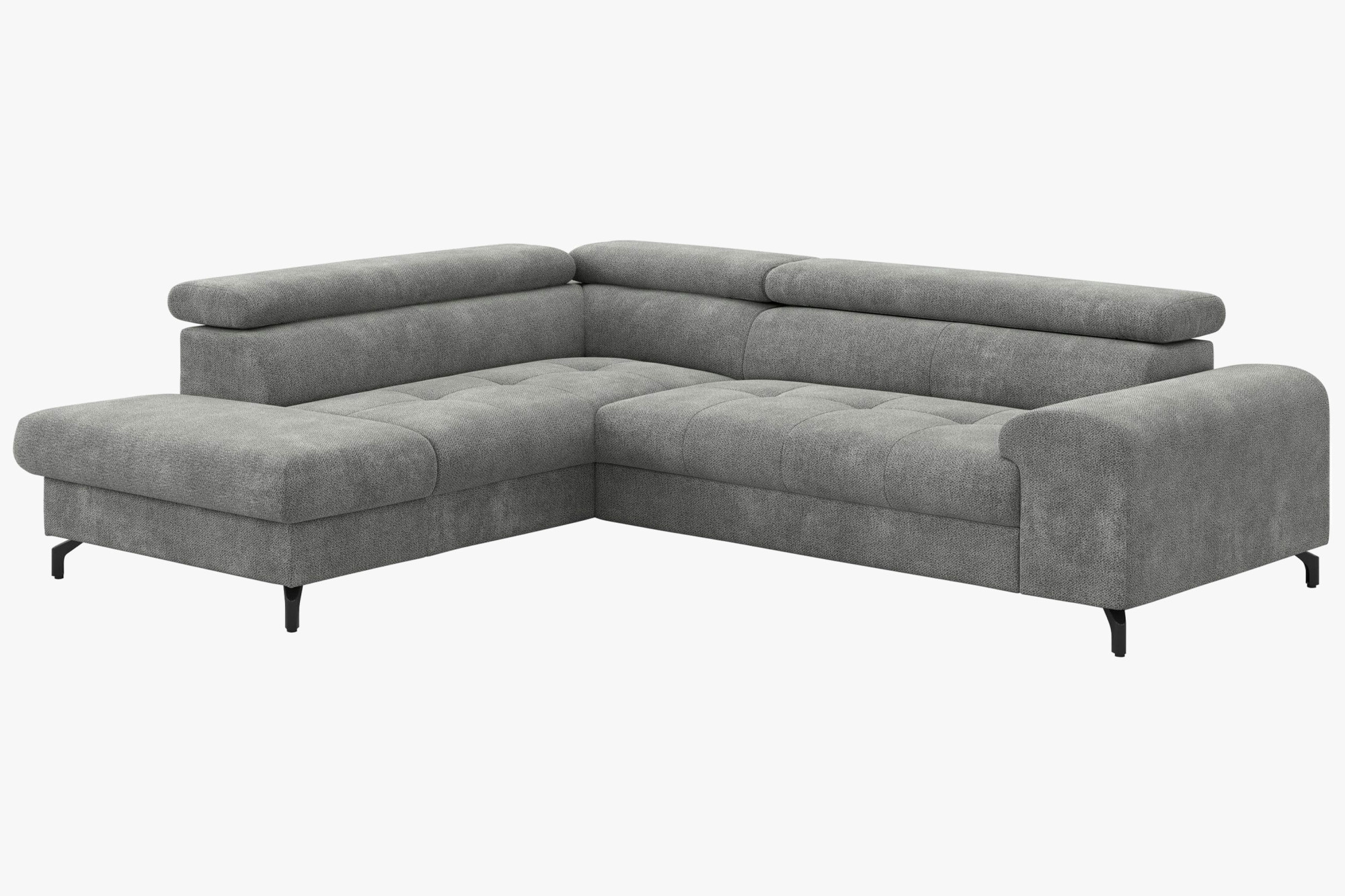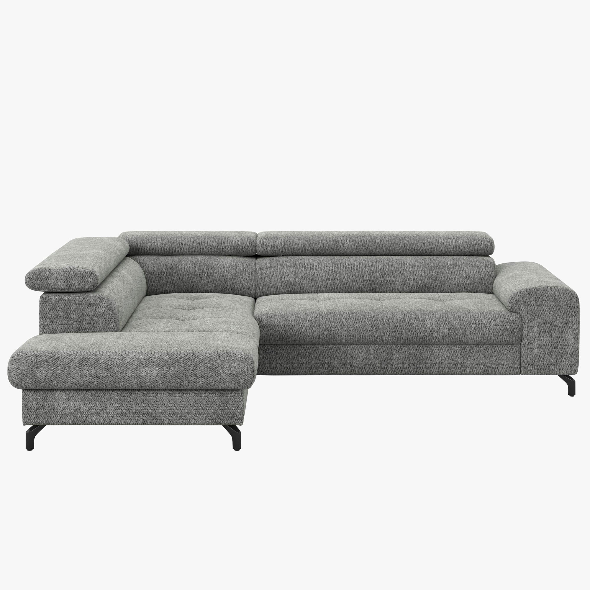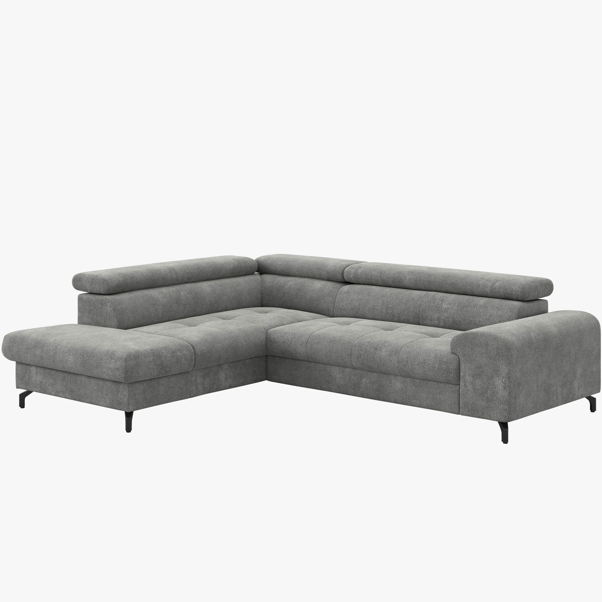 Ez a L-alakú sarokkanapé 260 cm szélességgel rendelkezik, és egyénileg állítható fejtámasszal van felszerelve, amely optimális támaszt és maximális pihenést nyújt. A fekete acél keretből készült ipari stílusú fém lábak extravagáns megjelenést kölcsönöznek a kanapénak, és stabilitást biztosítanak. A kanapé minőségi, finom és puha szerkezetű anyaggal van kárpitozva, miközben a maximális teherbírás egy ülőhelyen 120 kg. A PUR habbetét hosszú élettartamot és kényelmes ülést garantál. Az otthoni nézetből nézve az otomán jobbra tájolt. Minden darab gondosan kézzel készített, ami magas minőségű kidolgozást biztosít. Ezzel a sarokkanapéval soha többé nem lesz gondja az ülőhelyek hiányával!