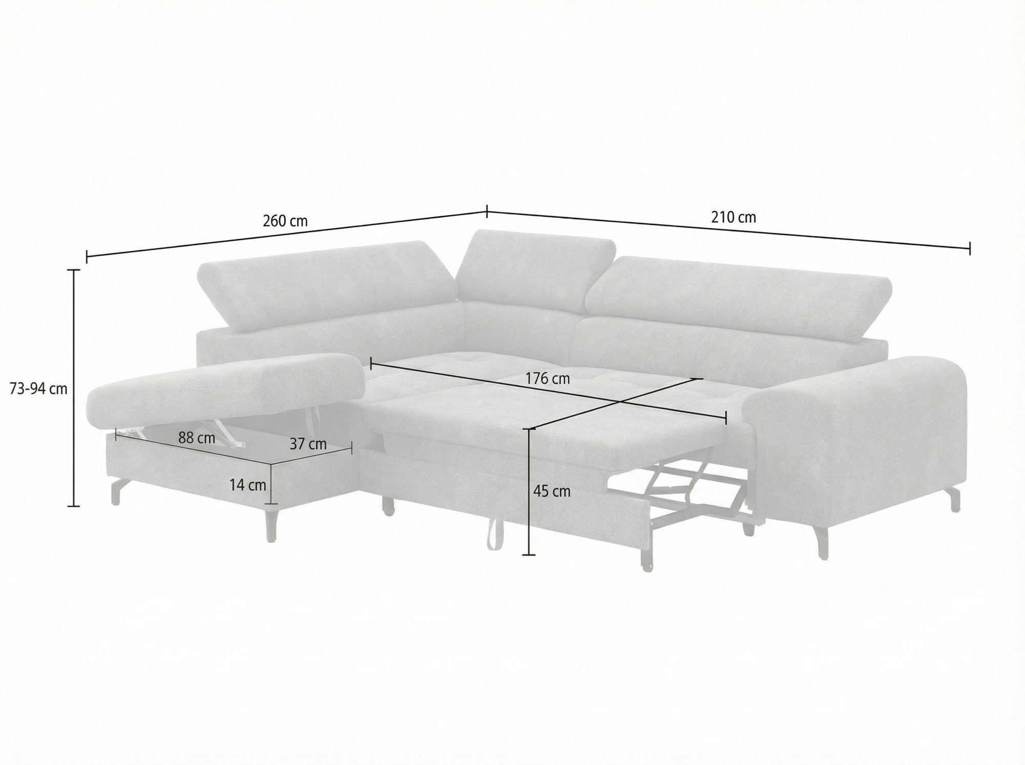 - Multifunkcionális kihúzható mechanizmus – alakítsa kényelmes vendégággyá vagy használja ki az XXL ülőfelületet