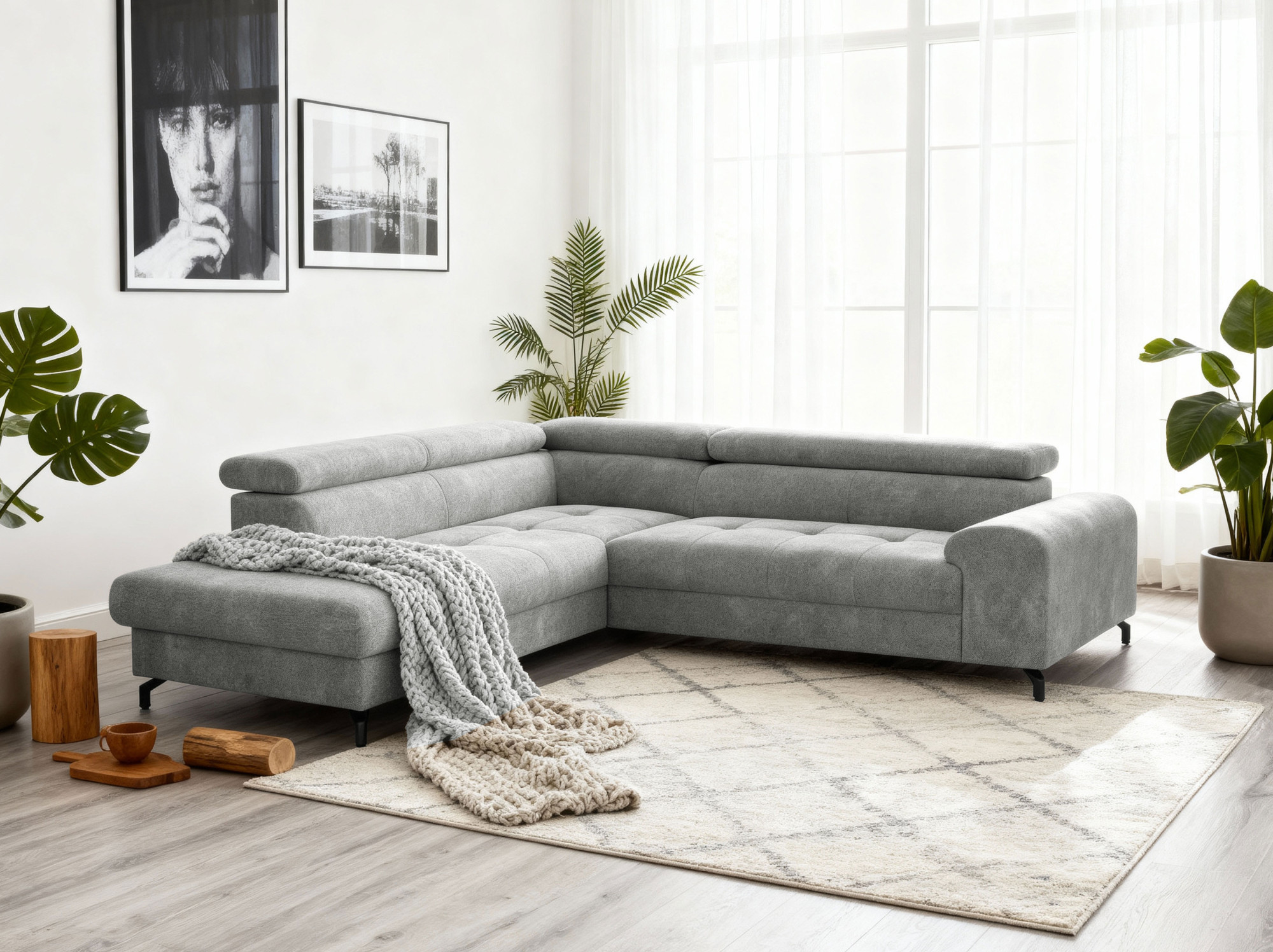 Keres praktikus és stílusos megoldást nappalijába? Ez a sarokkanapé ággyá alakítható funkcióval ideális választás azok számára, akik a komfortot, funkcionalitást és modern dizájnt szeretnék ötvözni. A praktikus kihúzható mechanizmus segítségével pillanatok alatt kényelmes vendégággyá alakíthatja a kanapét, vagy XXL ülőfelületet kap a filmnézéshez való pihenéshez. A beépített tárolóhely az ülőfelület alatt elegendő helyet kínál takarók, párnák vagy egyéb szükséges tárgyak elhelyezésére, ami különösen kisebb terek számára tökéletes megoldás. A kanapé minőségi hullámos merevítéssel készült, amely hosszú távon biztosítja a rugalmasságot és a kényelmet ülés közben.