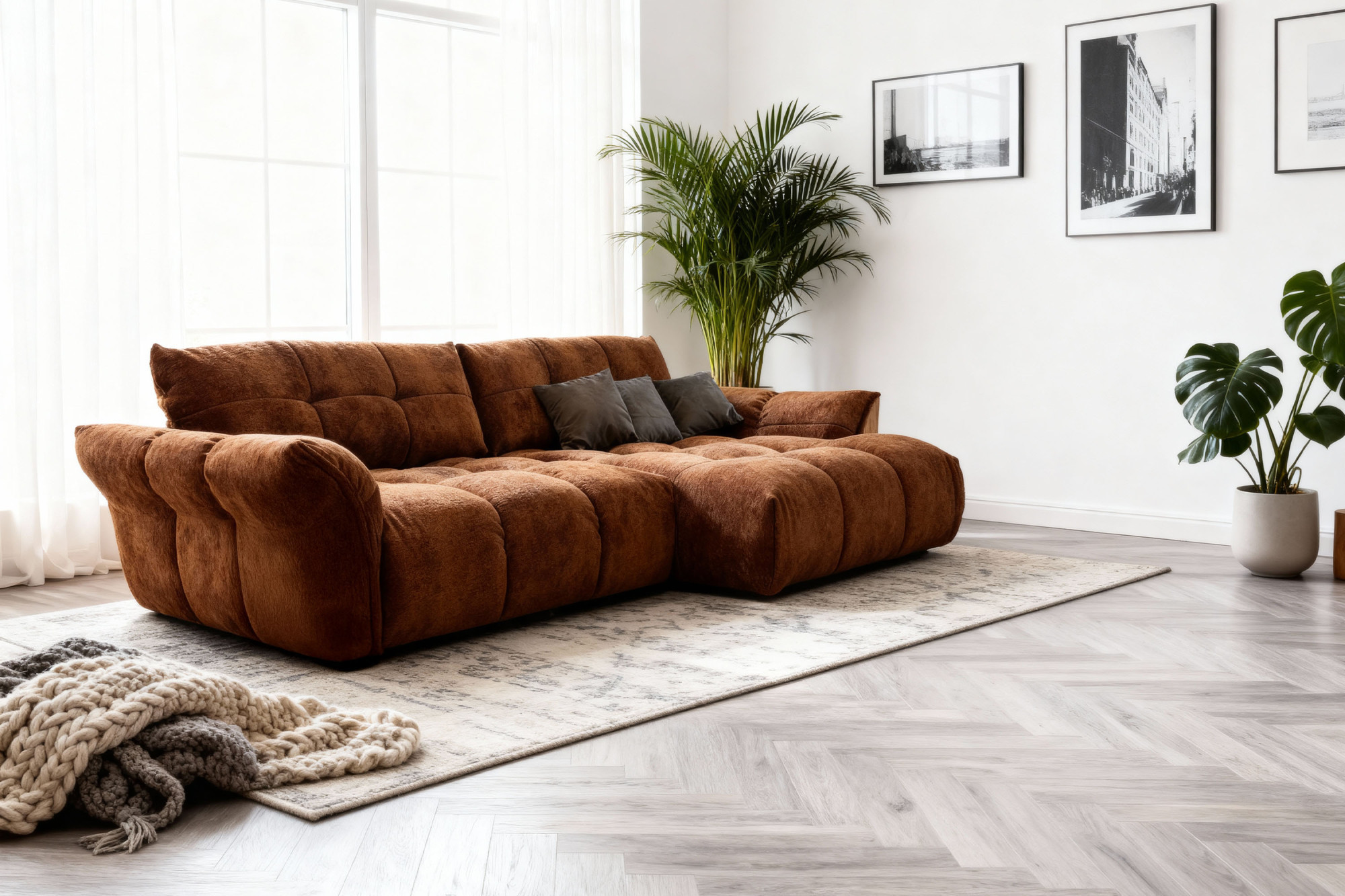 Modern sarokkanapé keményfa vázzal, mindennapi alváshoz alkalmas