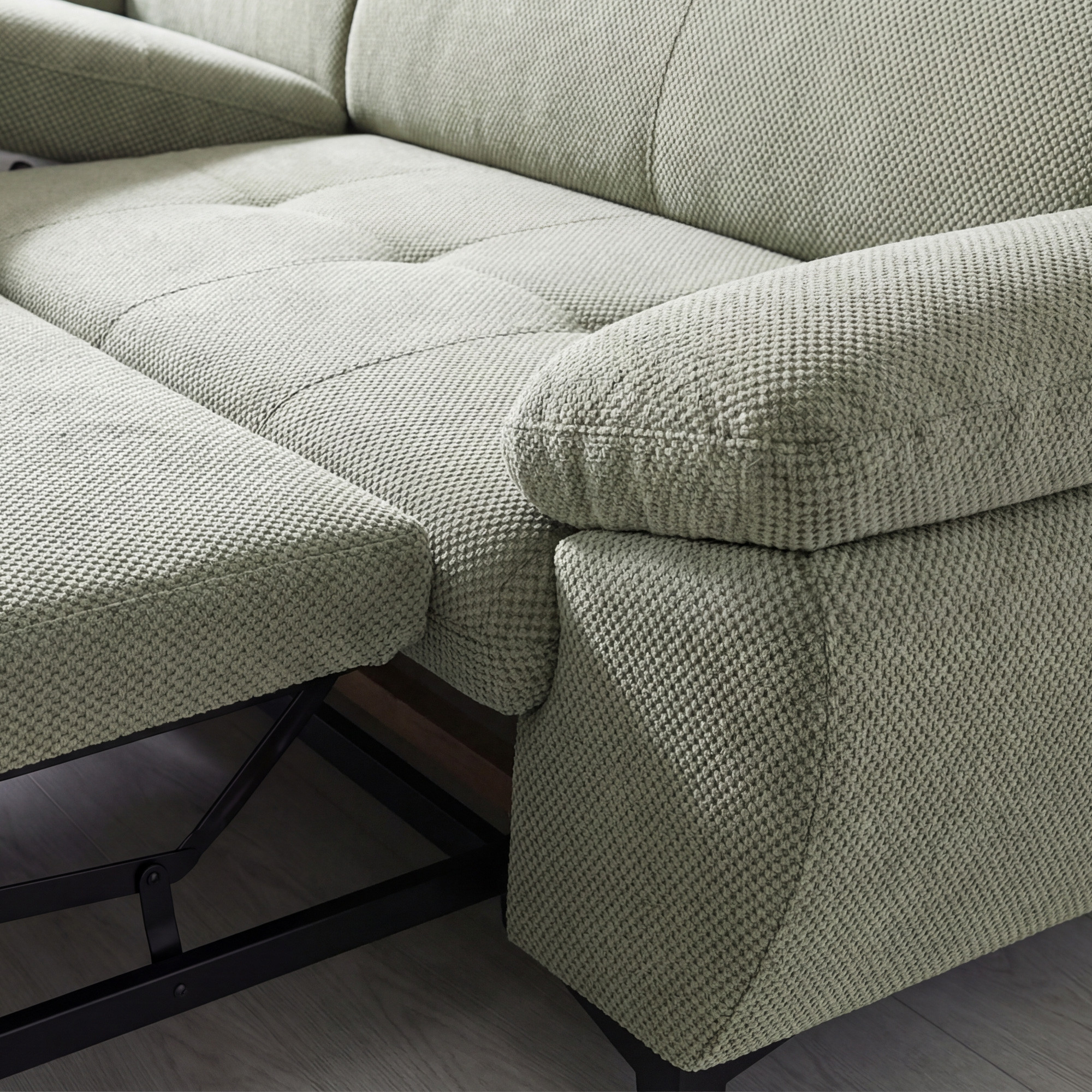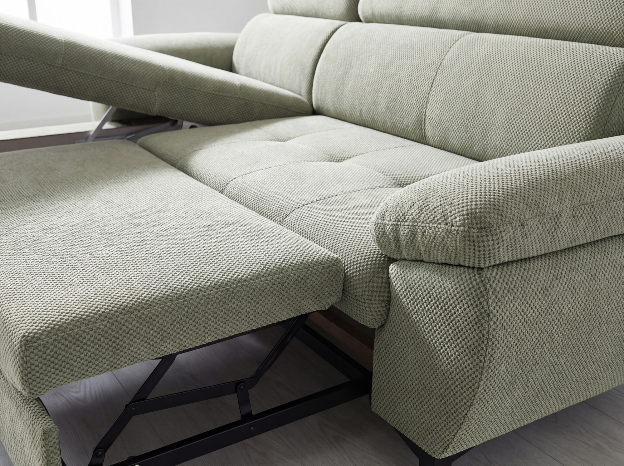 Az ülőgarnitúra része az is, hogy rendelkezik alkalmankénti fekvőfunkcióval, amit értékelni fognak a vendégek érkezésekor vagy ha gyorsan kényelmes pihenőhelyet kell létrehozni. A még nagyobb kényelem érdekében az ülőfelület különböző sűrűségű habszivacsból és acél hullámrugókból áll, ami biztosítja a puhaság és a stabil támasz egyensúlyát. A magasabb fém lábak miatt a kanapé alatti takarítás nem igényel külön erőfeszítést, ráadásul az egész könnyed és légies hatást kelt.