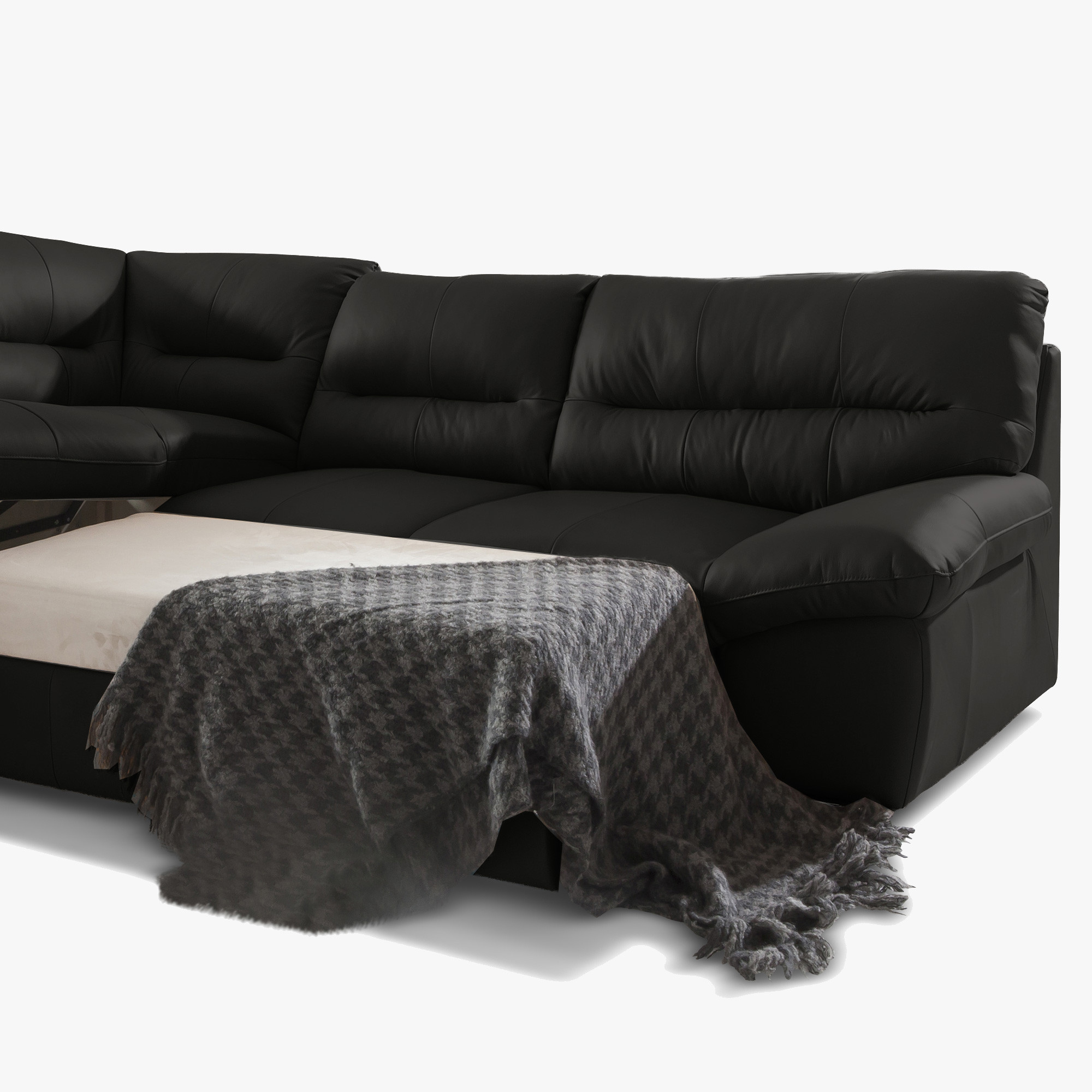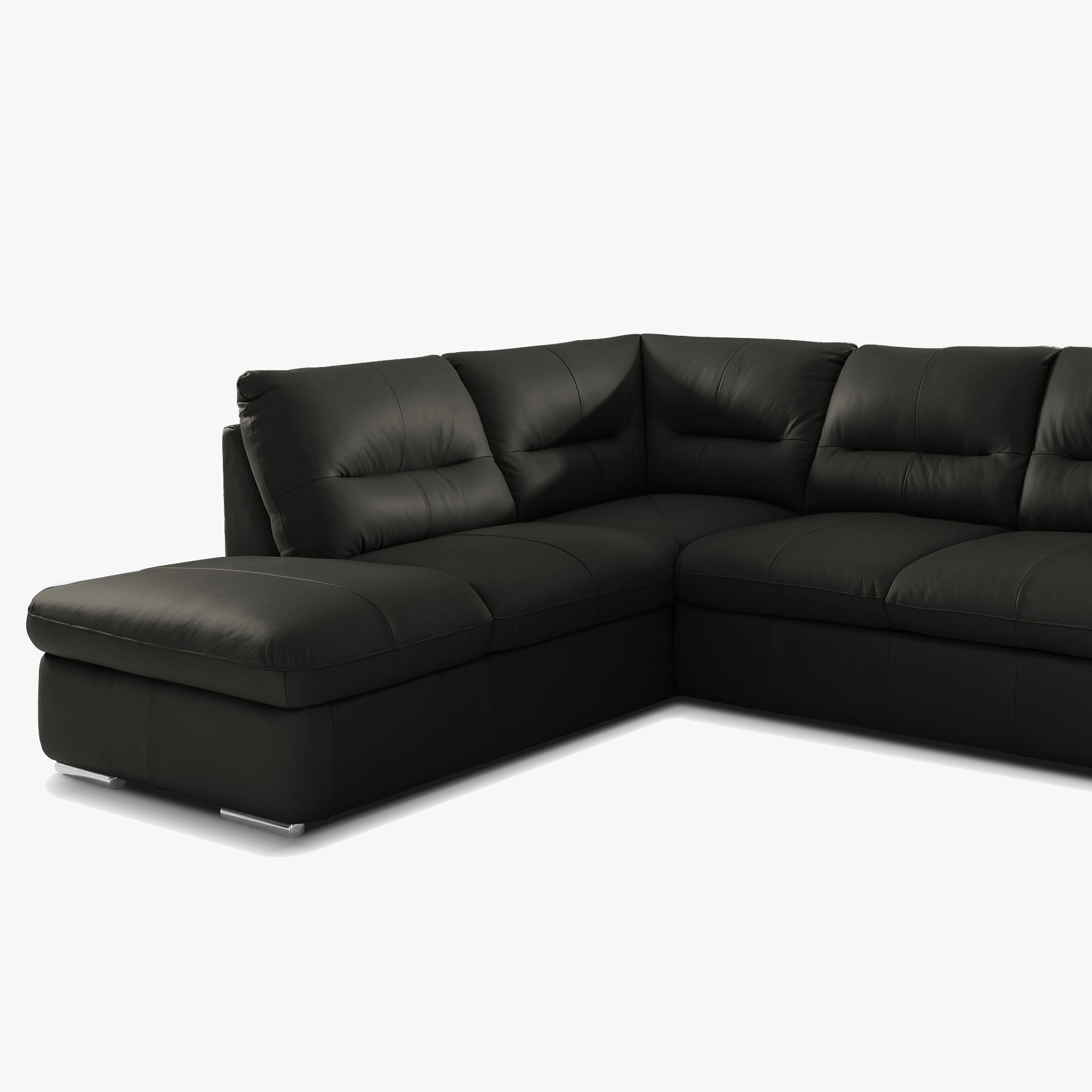 Valódi bőr fekete sarokkanapé jobb sarok ülőgarnitúra prémium