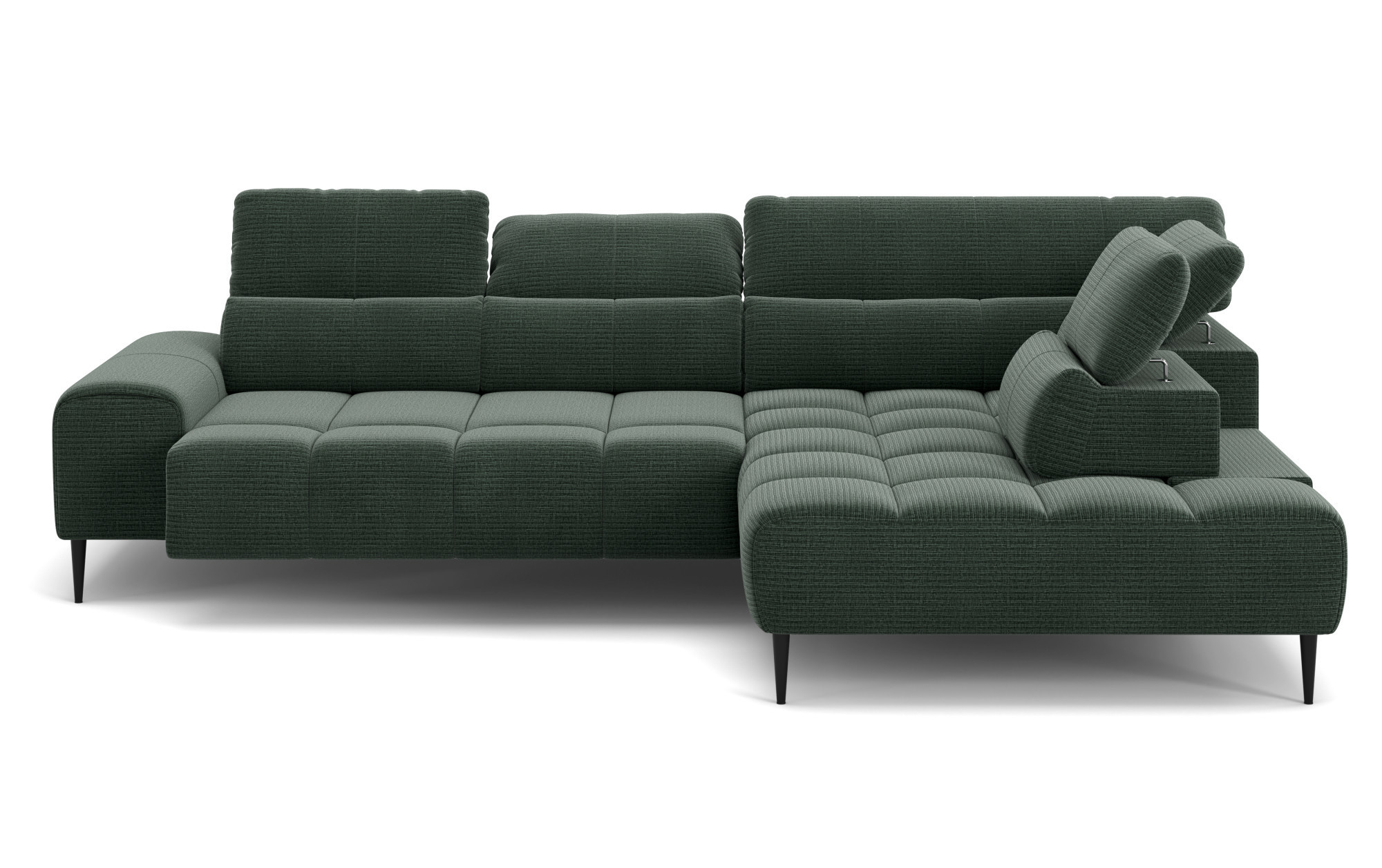 A THEO modell prémium funkciókat kínál, mint például állítható fejtámaszok, állítható háttámlák és motoros ülőfelület kinyúlás, melyek segítségével könnyedén testre szabhatja a pihenéshez és a mindennapi üléshez megfelelő pozíciót. Az ülésmélység változtatható 62–87 cm között, az ülésmagasság pedig 47 cm. Az elegáns megjelenést 17 cm magas fekete fém lábak emelik ki. Az ülőgarnitúra nem tartalmaz PVC-t vagy műbőrt, és a kényelmet, funkcionalitást valamint a letisztult dizájnt helyezi előtérbe, amely modern belső terekbe illik.