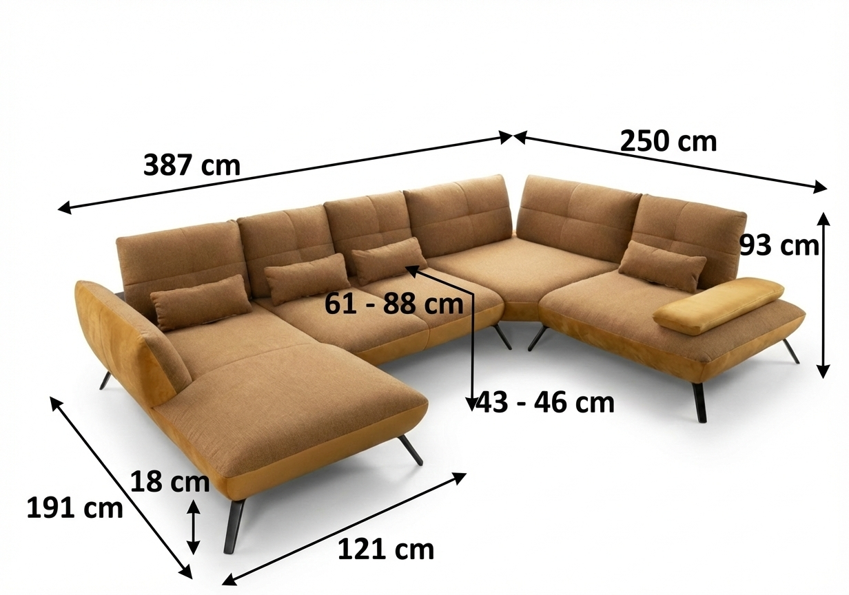 A garnitúra állítható háttámlákkal és nagy ágyéktámasz párnákkal rendelkezik, amelyek az ár részét képezik, és növelik az ülés és pihenés komfortját. A trapéz sarok alapfelszereltségként fix háttámasszal rendelkezik. A jobb oldali kartámasz szintén fix, felár ellenében állítható változat is választható.