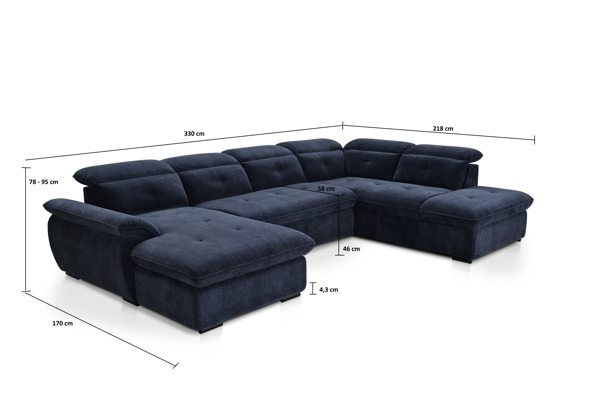 A nagy U-alakú ZOOM ülőgarnitúra ideális választás modern otthonok számára, amelyek maximális kényelmet, teret és praktikusságot keresnek elérhető áron. Nagyméretű kivitelének köszönhetően bőséges helyet biztosít az egész családnak, közös pillanatokhoz barátokkal és mindennapi pihenéshez. Elegáns, modern design, puha kárpitozás és precíz kidolgozás teszi a nappali meghatározó elemévé.