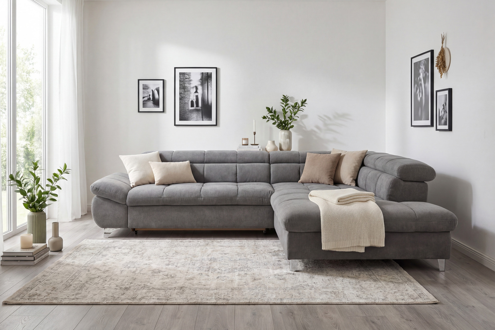 Bemutatjuk Önnek elegáns szürke-barna színű, luxus sarok ülőgarnitúrát, amely tökéletesen ötvözi a modern dizájnt, kényelmet és a praktikus funkciókat. Ez az elegáns kanapé ideális választás bármely nappaliba, ahol a pihenés és a funkcionalitás kombinációját keresik. A tömör fa és fenyő masszív szerkezetének és a minőségi kárpitozó anyagok kombinációjának köszönhetően olyan bútort kap, amely évekig kitart. A kárpitozás különböző sűrűségű habszivacsból készült, amely tökéletes egyensúlyt biztosít a puhaság és a szilárd támasz között a testének.