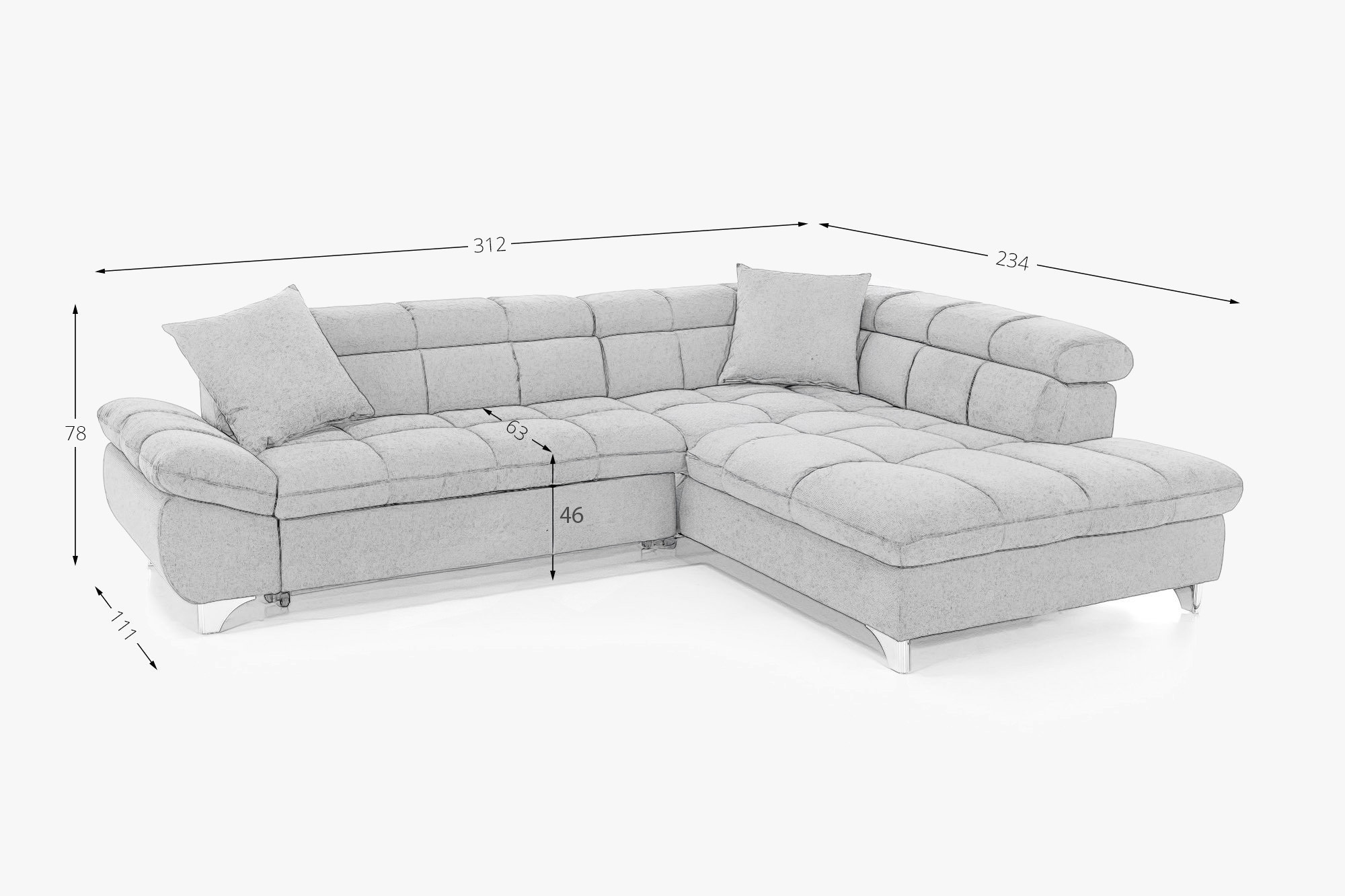 Sarok ülőgarnitúra alvásfunkcióval – jobb oldali sarok