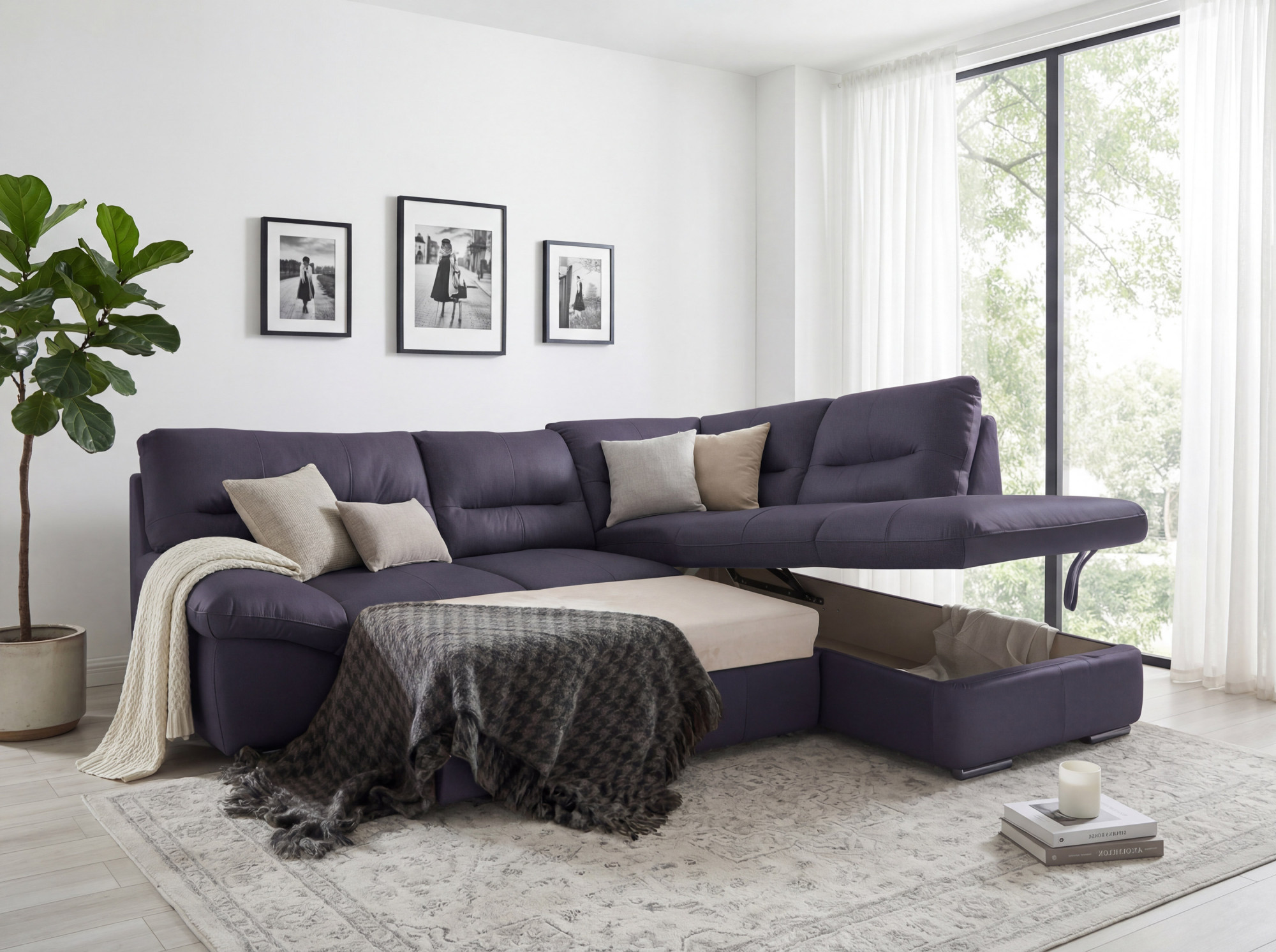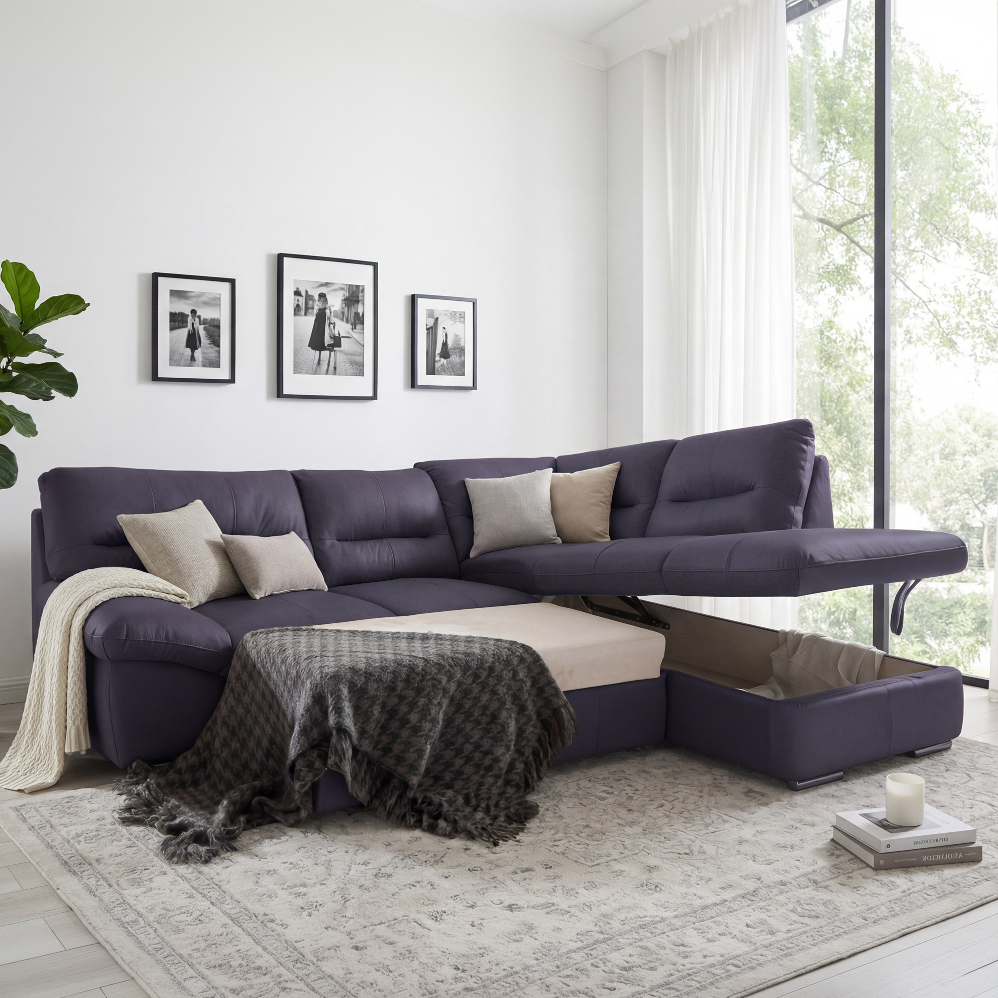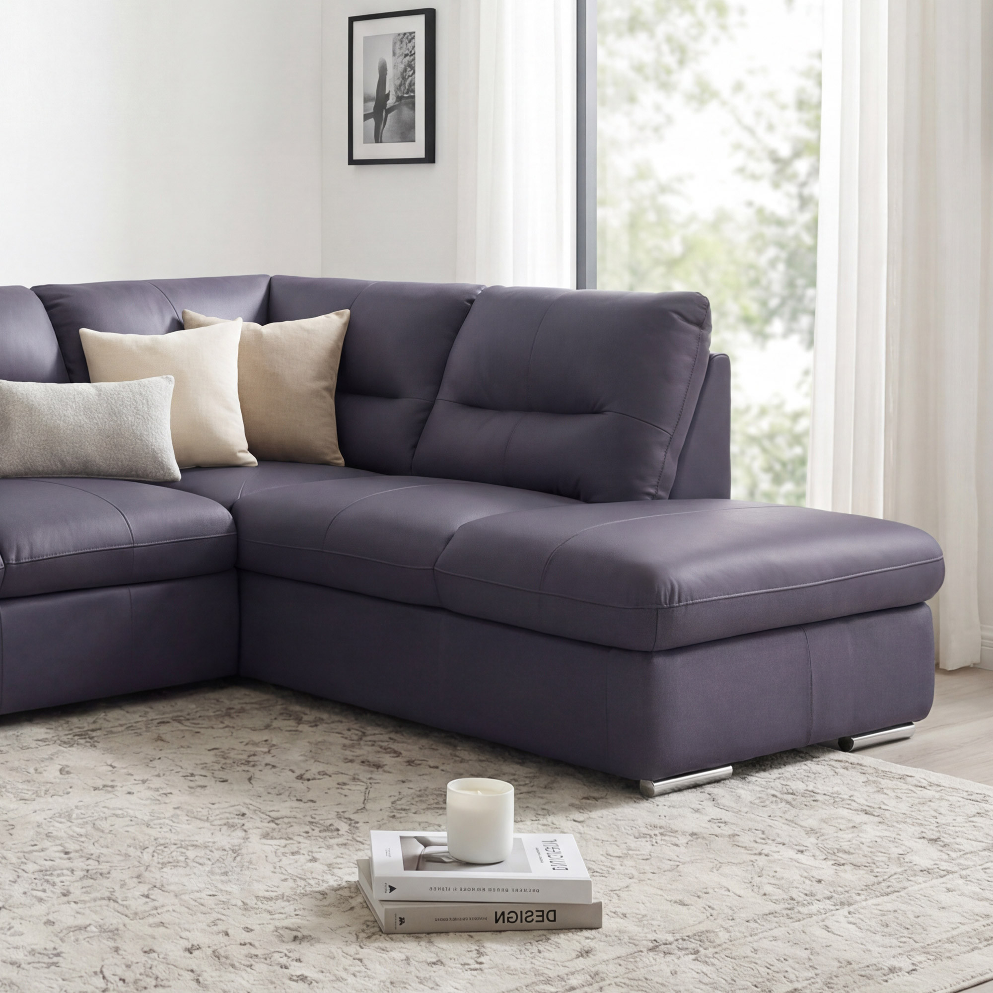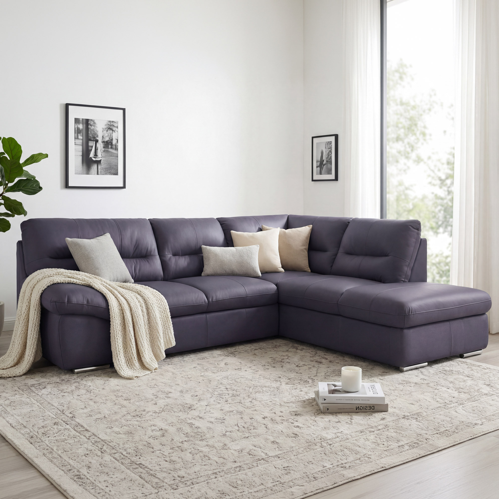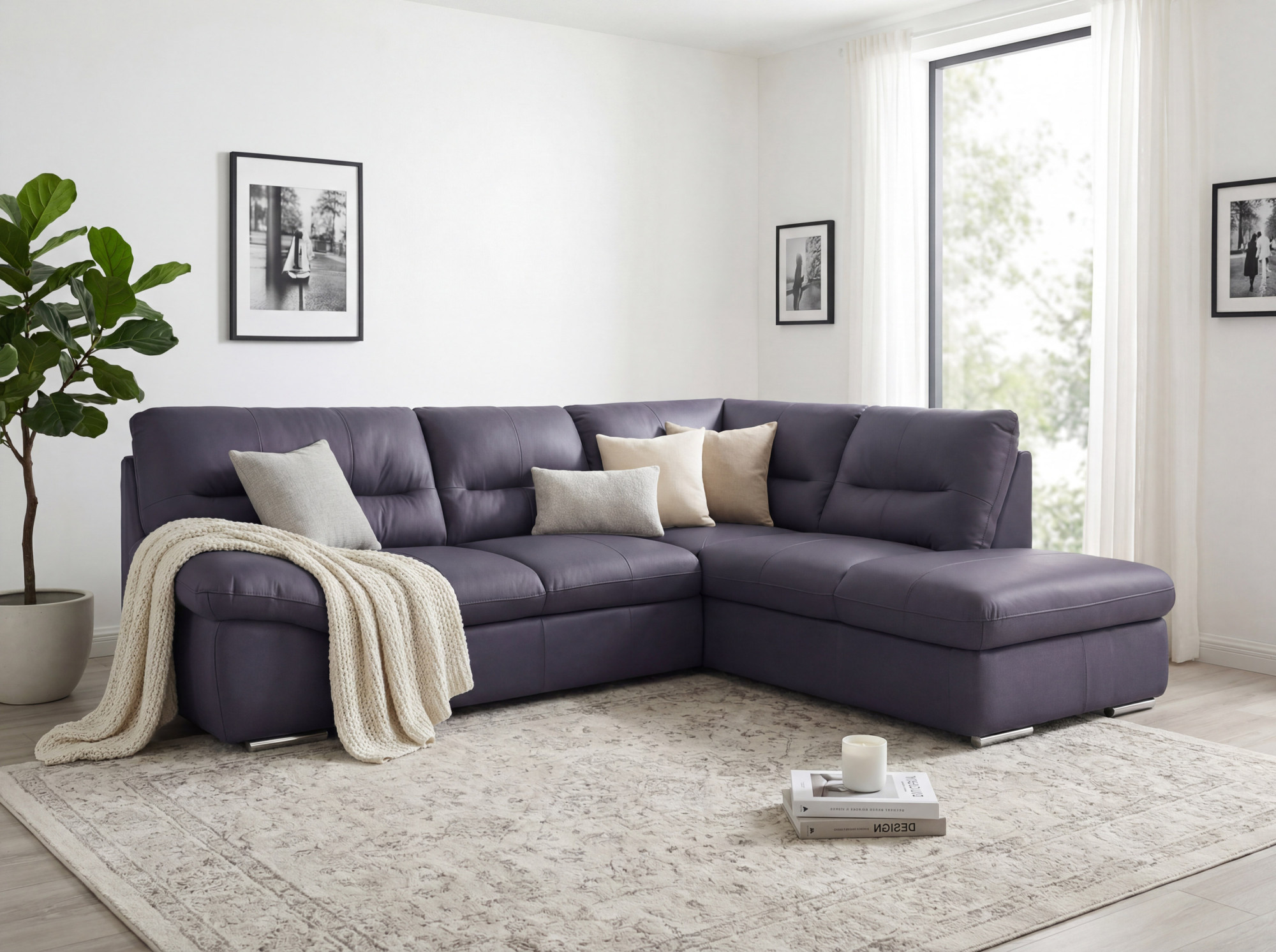Sarok ülőgarnitúra – valódi bőr navy szín a William modell kiváló választás azoknak, akik értékelik a luxust, a kényelmet és a praktikus funkciókat. Elegáns navy színű kialakítása gyönyörűen kiegészít bármilyen belső teret, és egyben otthonos hangulatot teremt családi és társasági összejövetelekhez. Az ülőfelületet minőségi bőr borítja, 0,9–1,1 mm vastagságban, amely kellemesen húsos tapintású és ellenáll a mindennapi igénybevételnek. Az átgondolt sarokkialakításnak (jobb oldali kivitel) köszönhetően nemcsak elegendő ülőhelyet kap, hanem könnyű hozzáférést is a sarokrész alatti nagy tárolóhelyhez. A kanapé kinyitásához praktikus mechanizmus szolgál, amely alkalmi fekhelyet biztosít 183 x 123 cm méretben.