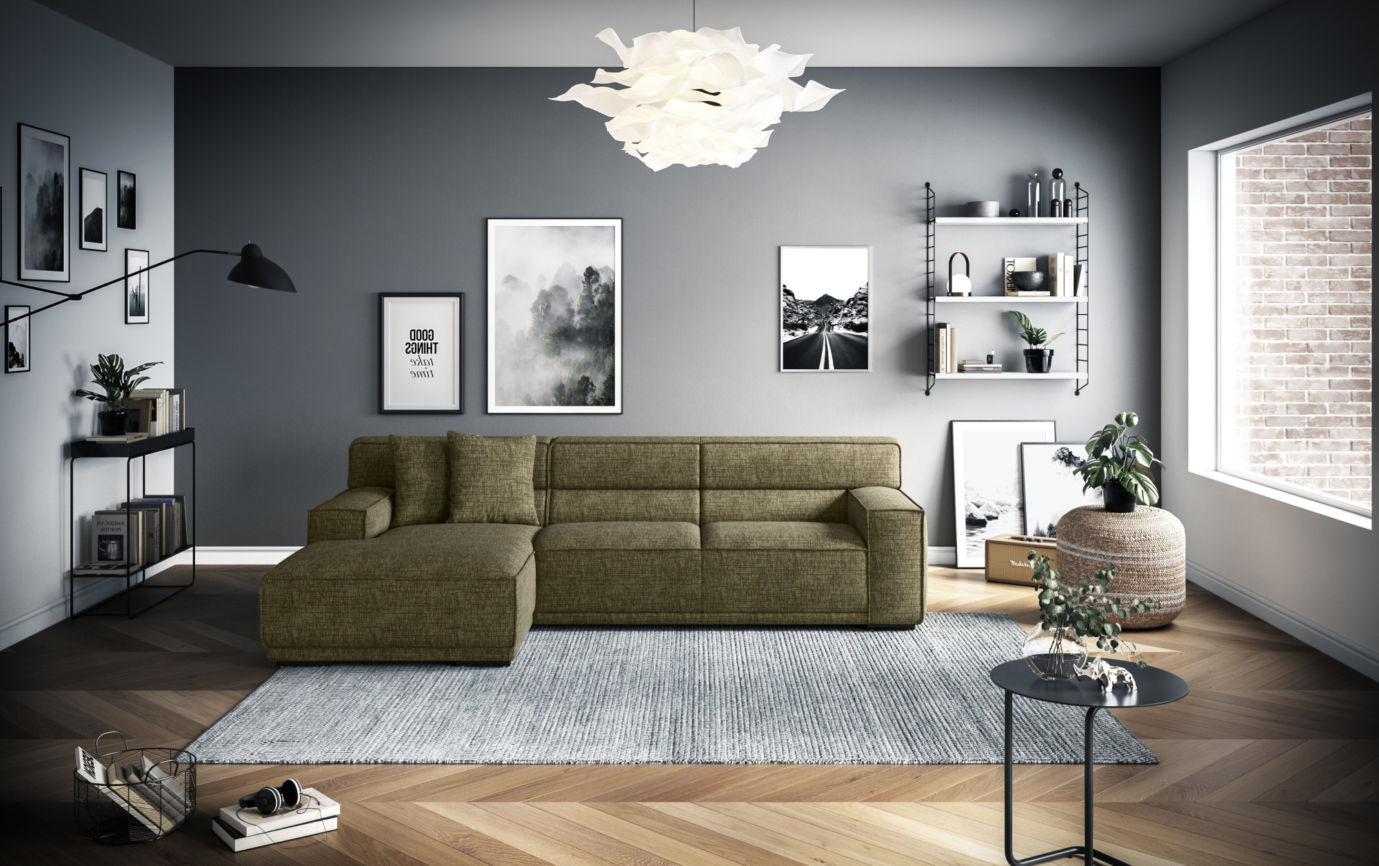 Sarok ülőgarnitúra KUBO – modern sarokkanapé hosszú fotellel a maximális kényelemért