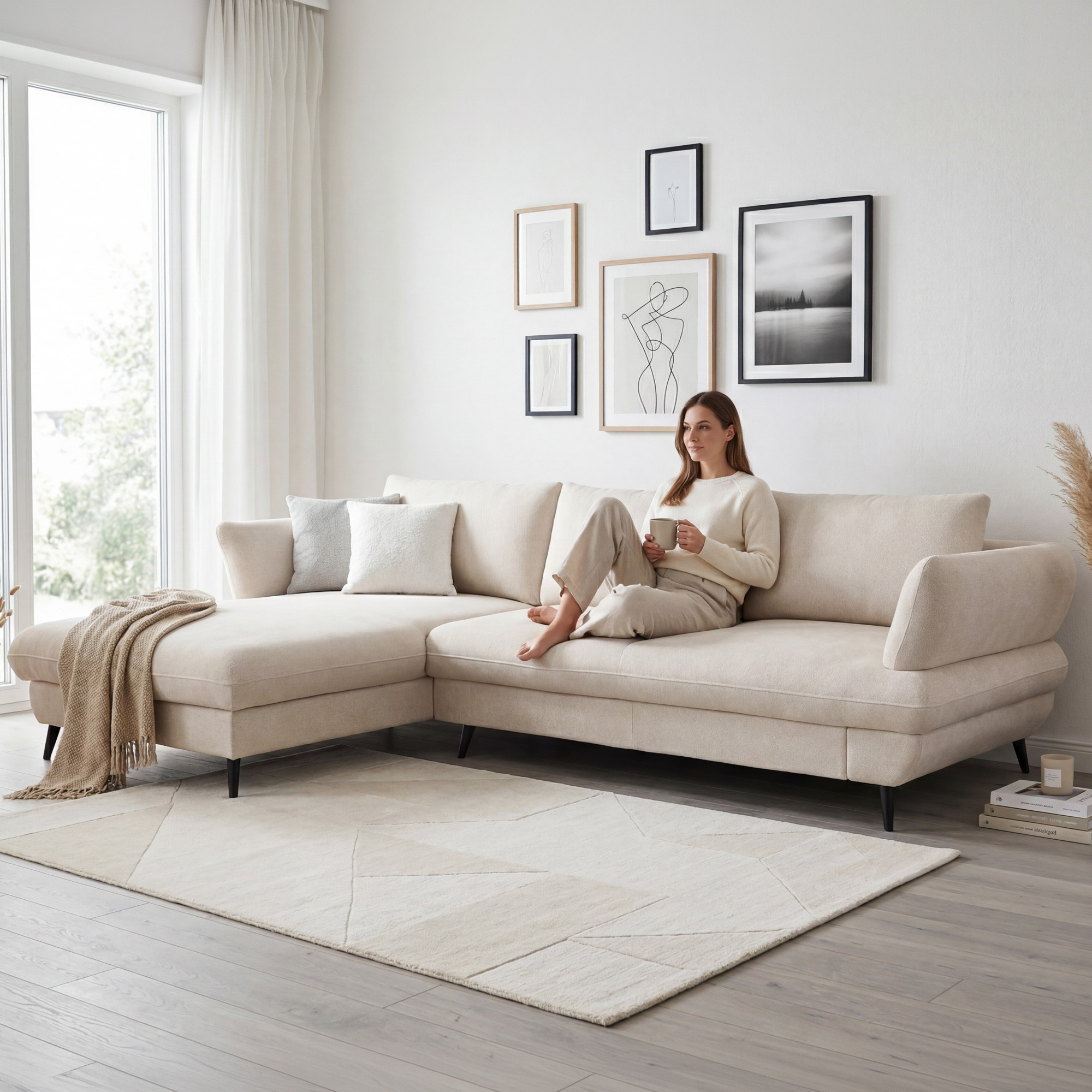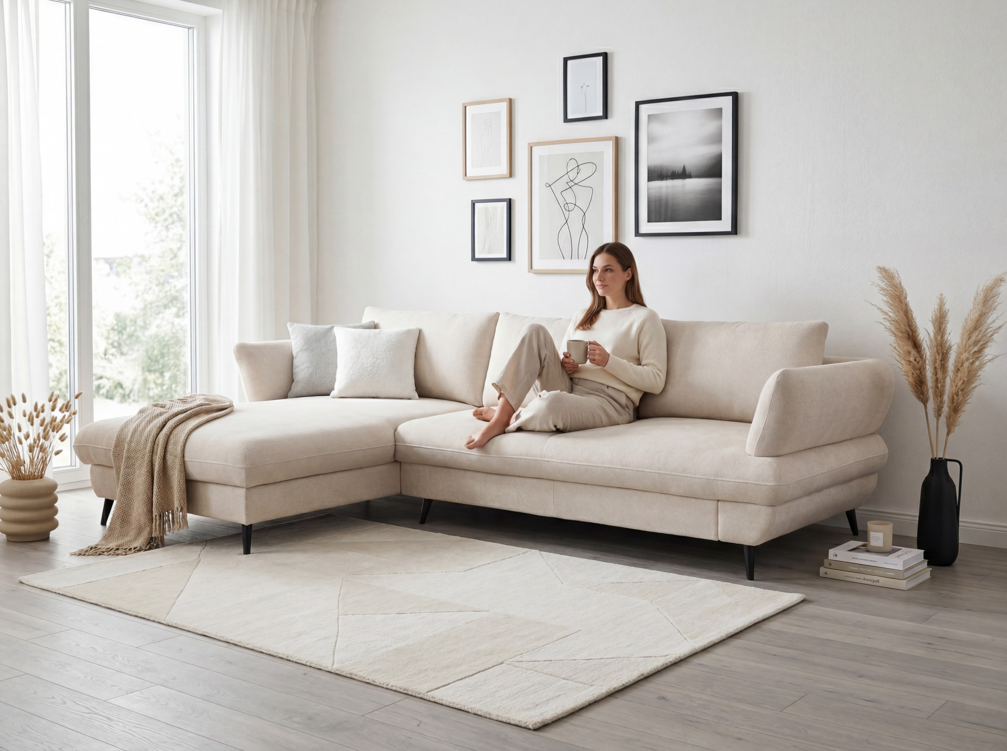 A BALOU 2.5F-REC/BK kanapé az első pillantásra megragad modern, lekerekített vonalaival és időtlen megjelenésével, amely kiválóan illeszkedik a kortárs belső térbe. Puha, kényelmes üléseket értékelni fogja mindennapi pihenéshez, mind hosszabb családi összejövetelekhez. A képen New York Beige szövetű változat látható; átgondolt szerkezetének köszönhetően a kanapé elegánsnak és stabilnak hat. Ha könnyed megjelenésű, de a háztartás napi használatát bíró sarokkanapét keres a nappaliba, a BALOU remek választás.