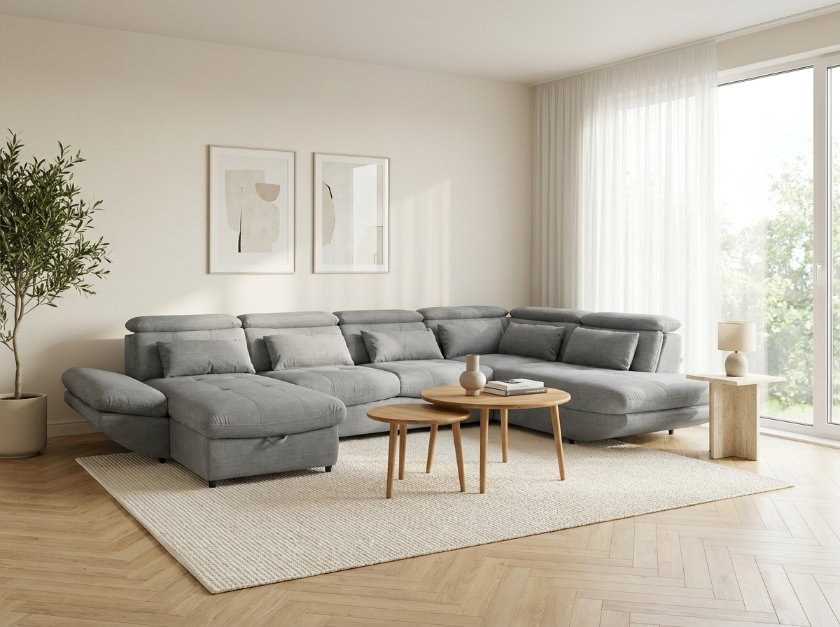 U alakú kanapé fekvőfunkcióval és tárolóhellyel – bestseller kedvező áron