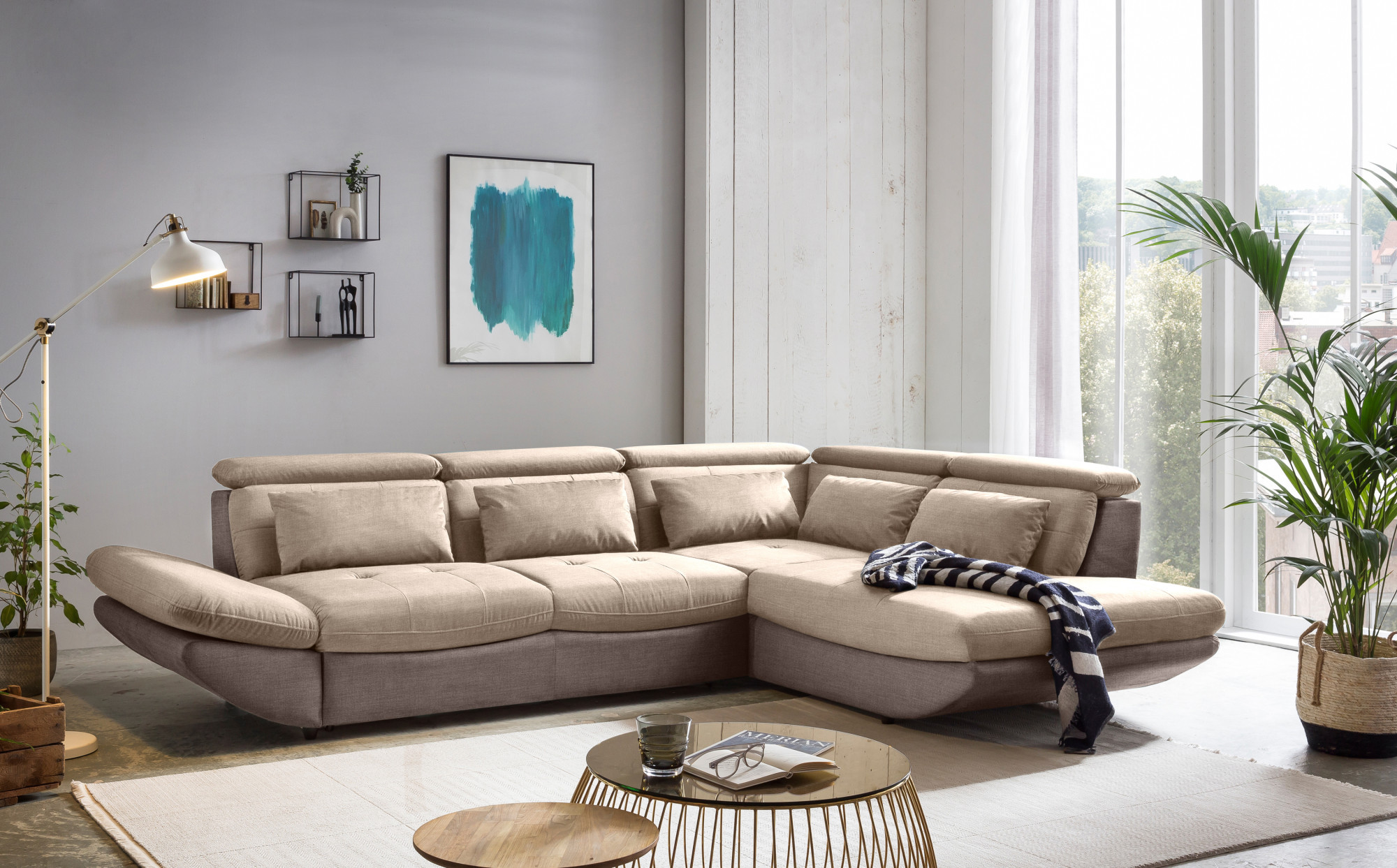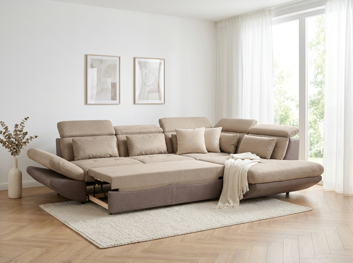 Modern sarok ülőgarnitúra Park fekvőfunkcióval és tárolóhellyel