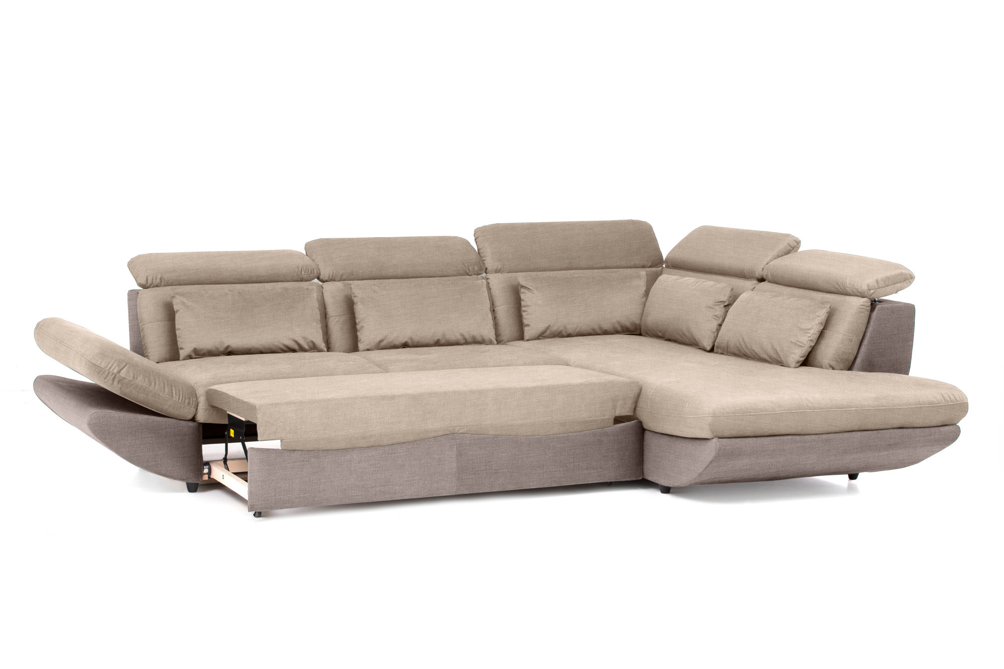 A ülőgarnitúra szerkezete masszív fa és fenyő kombinációjából áll, kiegészítve formaldehidmentes környezetbarát forgácslappal, ami hozzájárul az egészségesebb otthoni környezethez. A háttámasz elasztikus hevederekkel van felszerelve az optimális hát támasztás érdekében. Kinyitva 220 × 136 cm méretű fekvőfelület keletkezik, ami ideális alkalmi alváshoz. Az ülésmagasság 43 cm és az ülésmélység 60 cm kényelmes ülést biztosít. Nagy előny továbbá a széles anyag- és két színárnyalat kombinációjának lehetősége, így könnyen elkészítheti az ülőgarnitúrát pontosan az elképzeléseinek megfelelően.