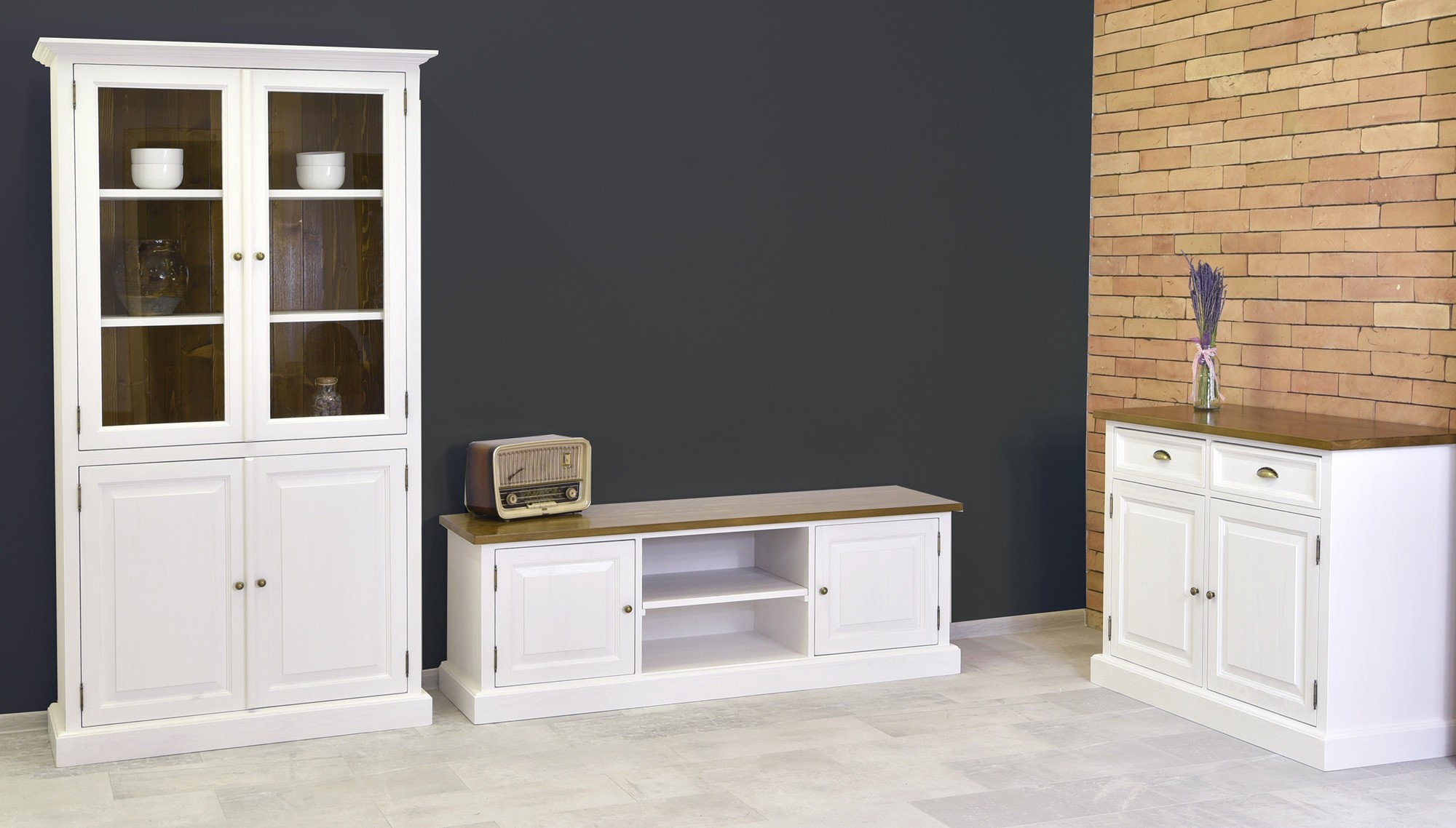 A Provence kollekció bútora úgy lett tervezve, hogy magas elvárásoknak feleljen meg funkcionalitás és esztétika terén. A felületkezelés környezetbarát és kíméletes – a barna részeket minőségi lakk védi, míg a fehér felületek viaszoltak és egy finom lakkfilm fedi őket, ami kiemeli a fenyőfa természetes erezetét. A vitrin rusztikus jellegét kiegészítik a kézzel kovácsolt fogantyúk, amelyek felületkezeltek és nem eresztik a színt. Természetesen rendelkezik FSC tanúsítvánnyal, amely igazolja az anyag felelős eredetét. A vitrin teljesen összeszerelve érkezik, így azonnal használatba veheti.