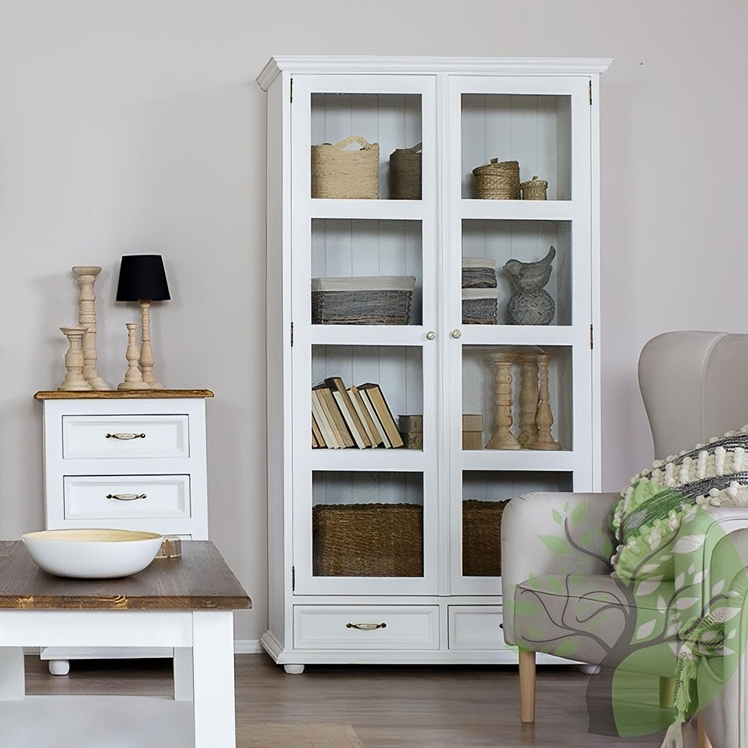 Kétszárnyú Provence vitrin - fa  - 1