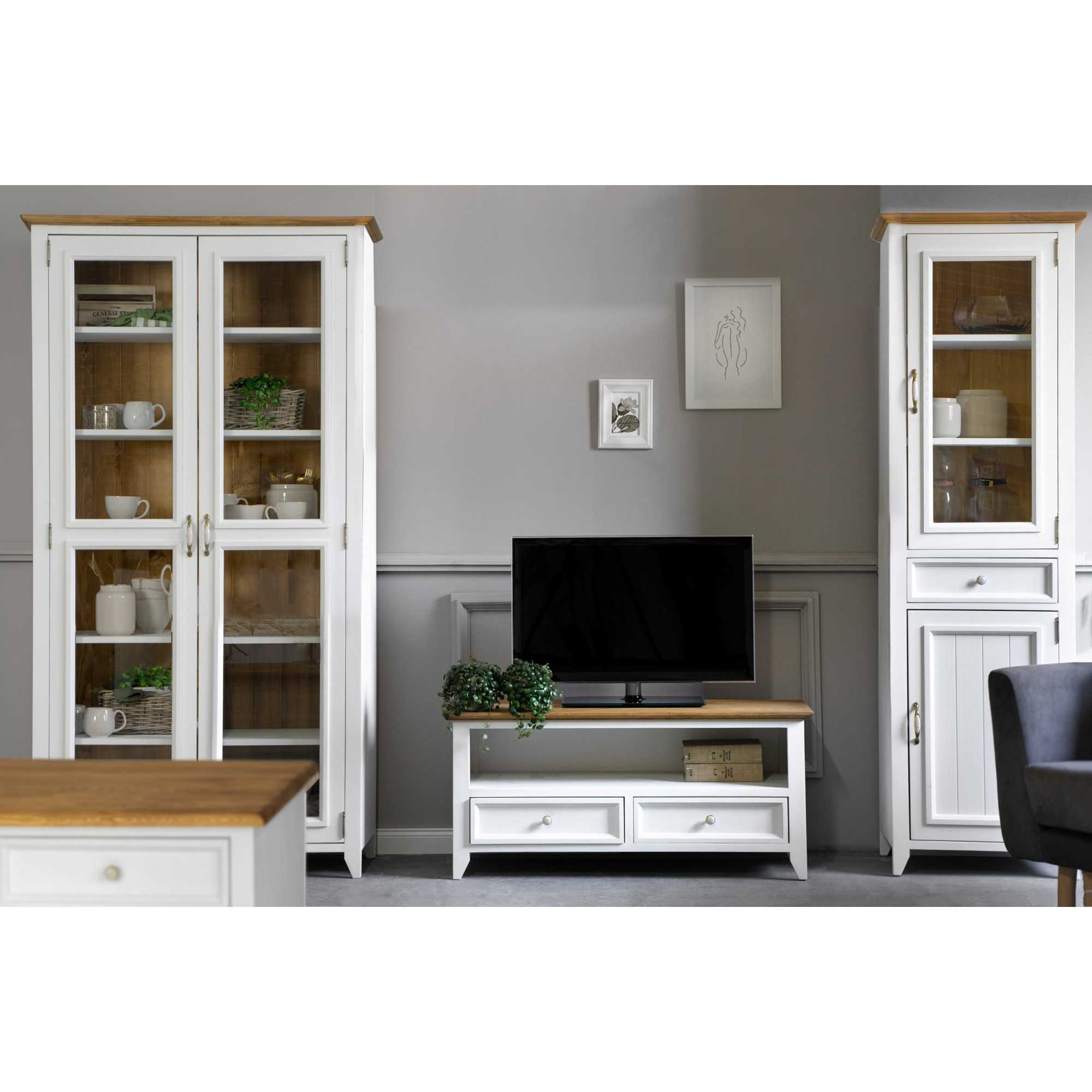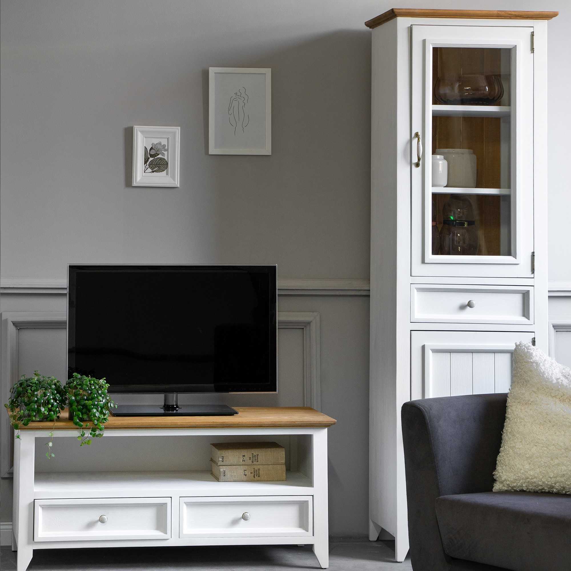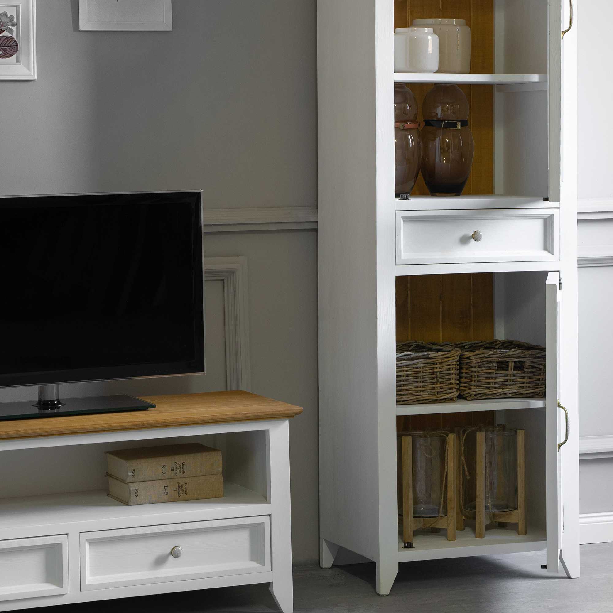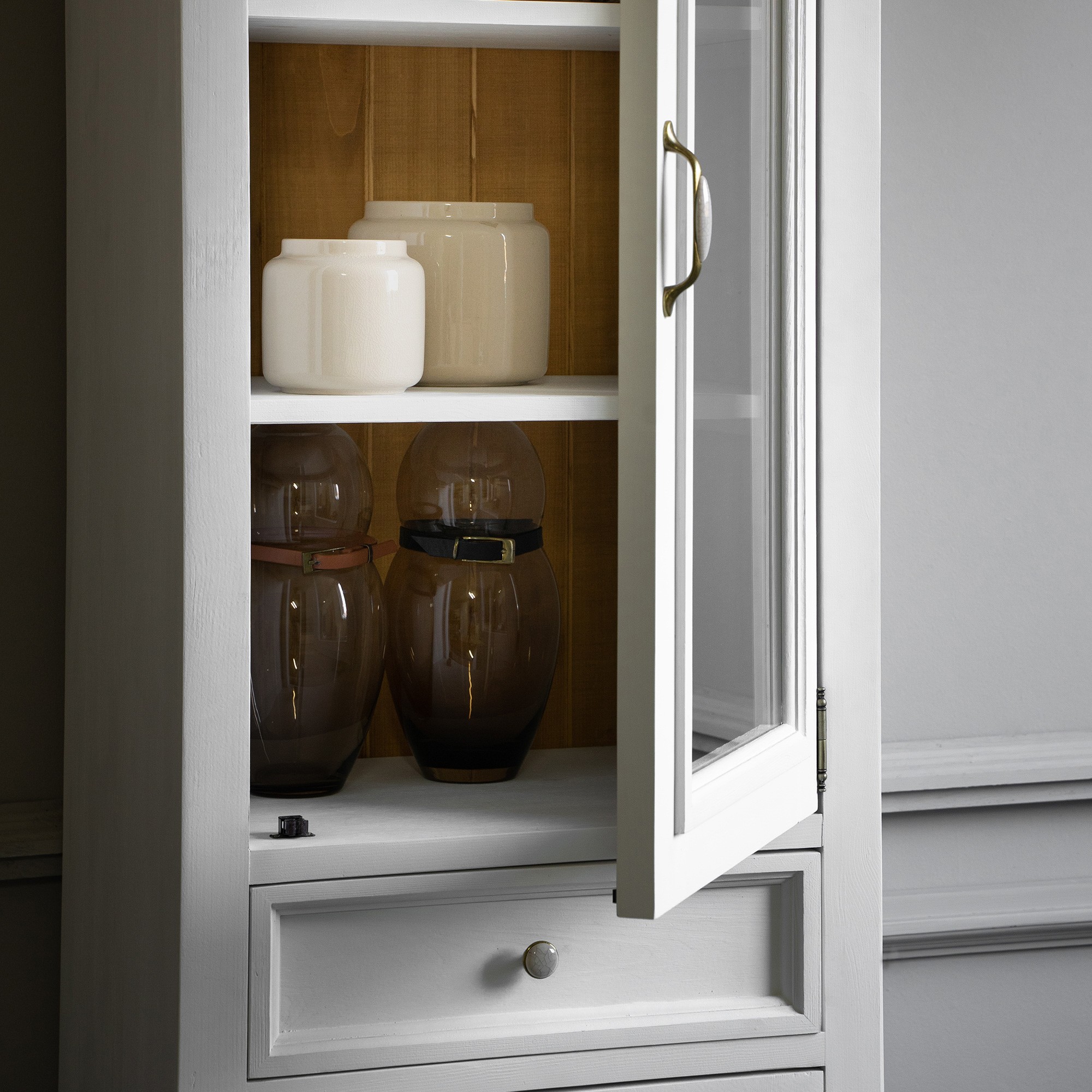 Vonzó megjelenés, természetes anyag és a francia életstílus. Ezek a tulajdonságok jellemzik a Lille kollekció fehér vitrinjét. A vitrin étkezőbe vagy akár dolgozószobába is alkalmas, az ajtó üvegezett és tömör részből áll. Minden belső részben további polc található további tárolóhely céljából. A középső részben fiók található. Képzelje el a friss péksütemény illatát, ahogy betölti étkezőjét, melyet a Lille kollekció bútorai rendeztek be, és szívja magába a vidéki hangulat energiáját minden nap. Bővítse belső terét ezzel az vonzó darabbal, és élje át naponta a természetes bútor erejét. A természetes termék ökológiája és a gyönyörű dizájn harmóniája azok a tulajdonságok, amelyeket ötvöztünk a LILLE tálalószekrény gyártásánál.
