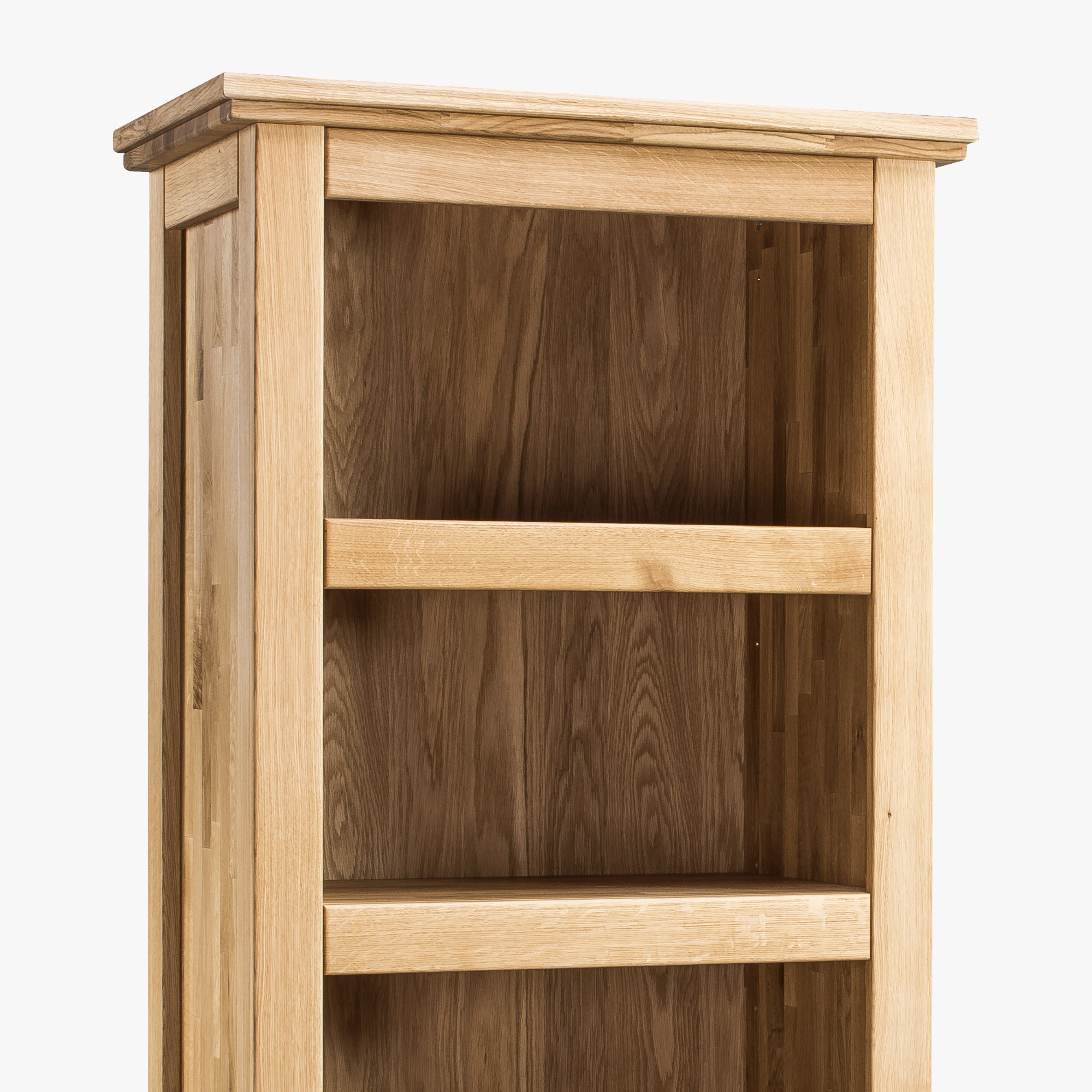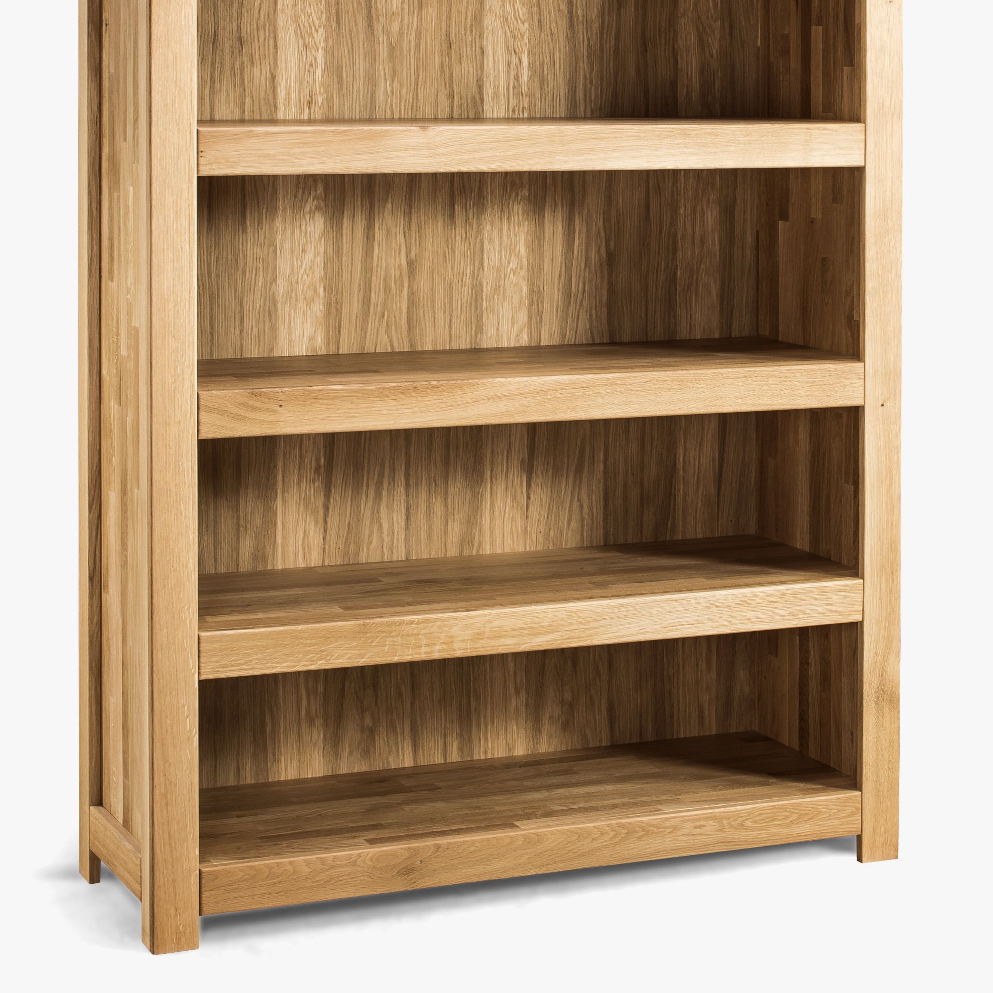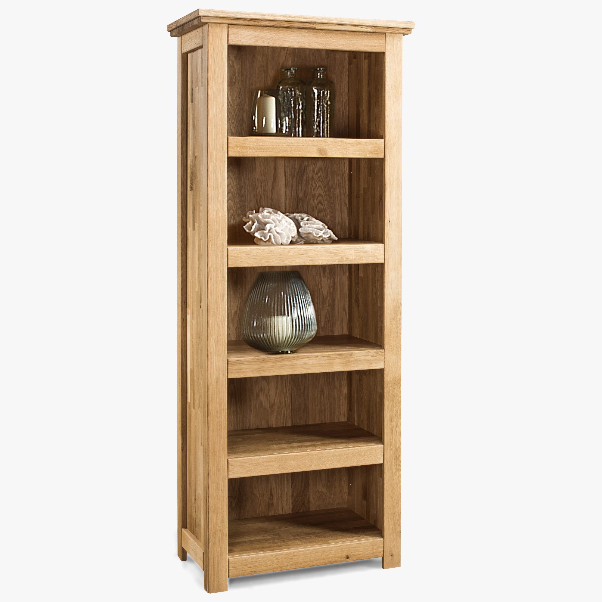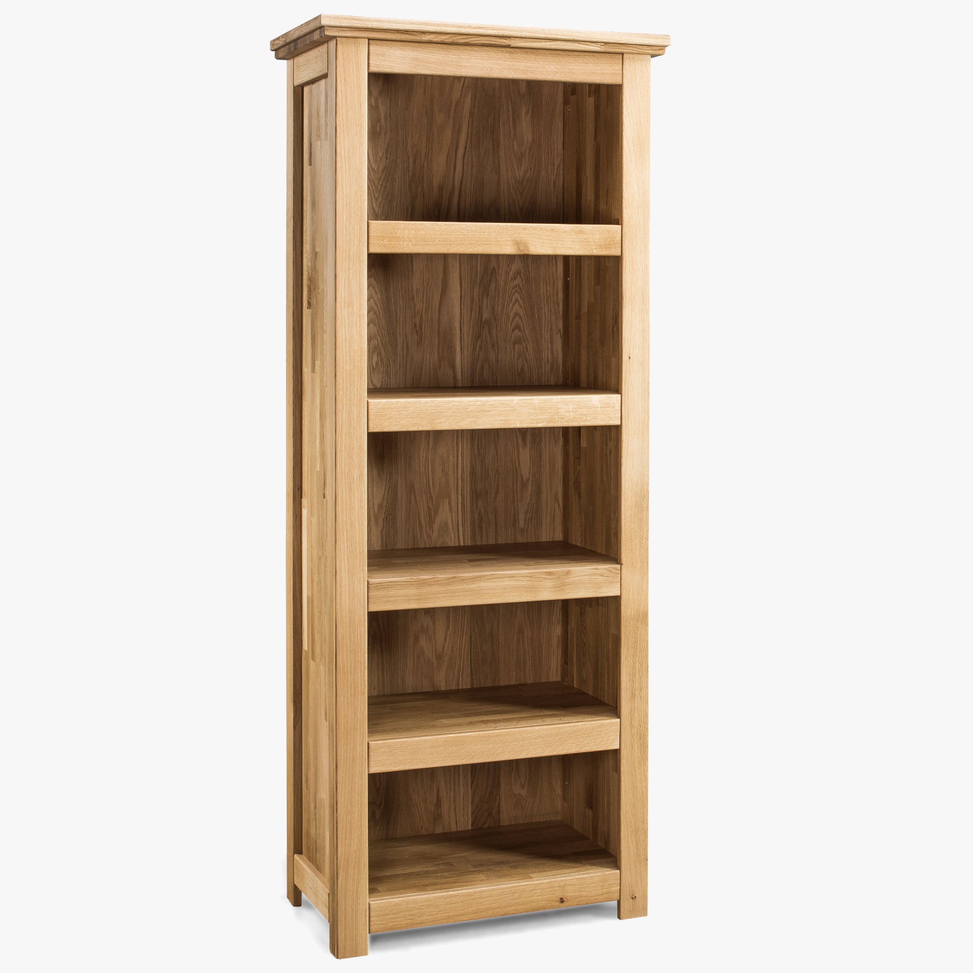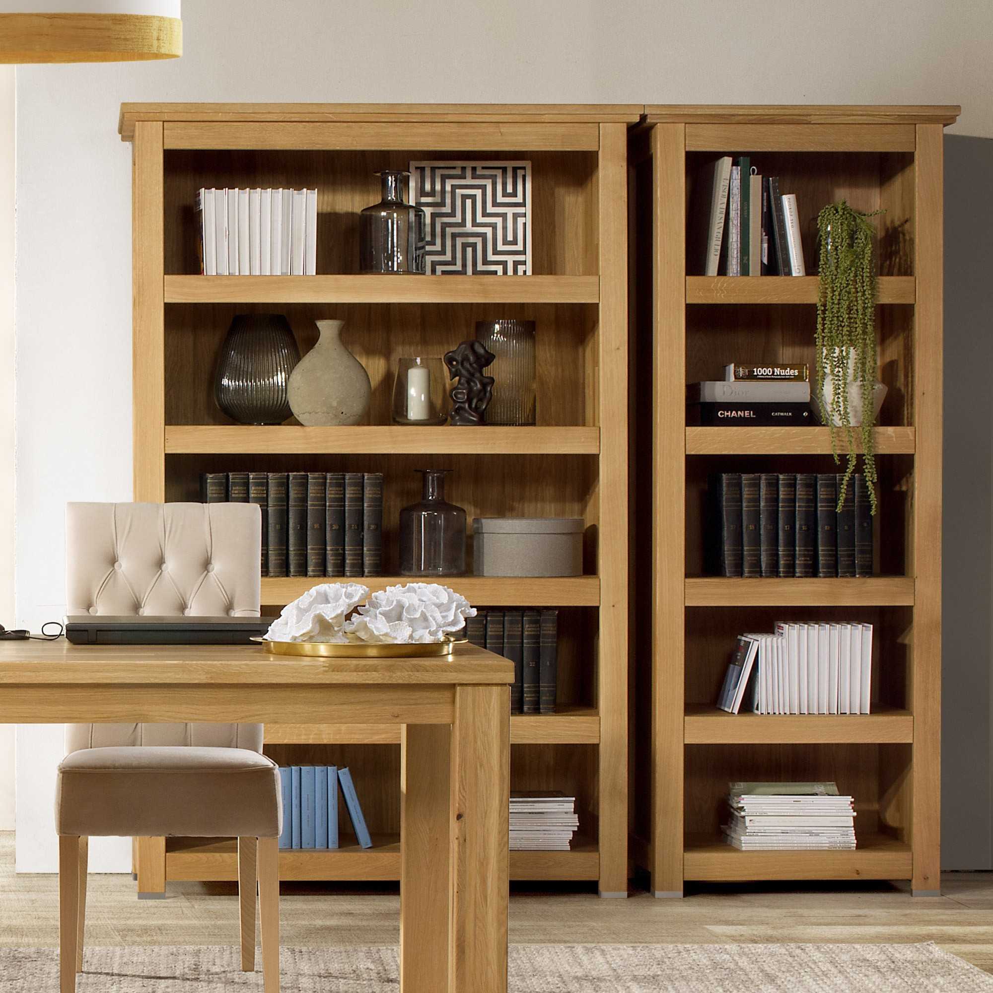 Tömör tölgyfa könyvespolc 4 polccal, természetes fa, 204 cm magas
